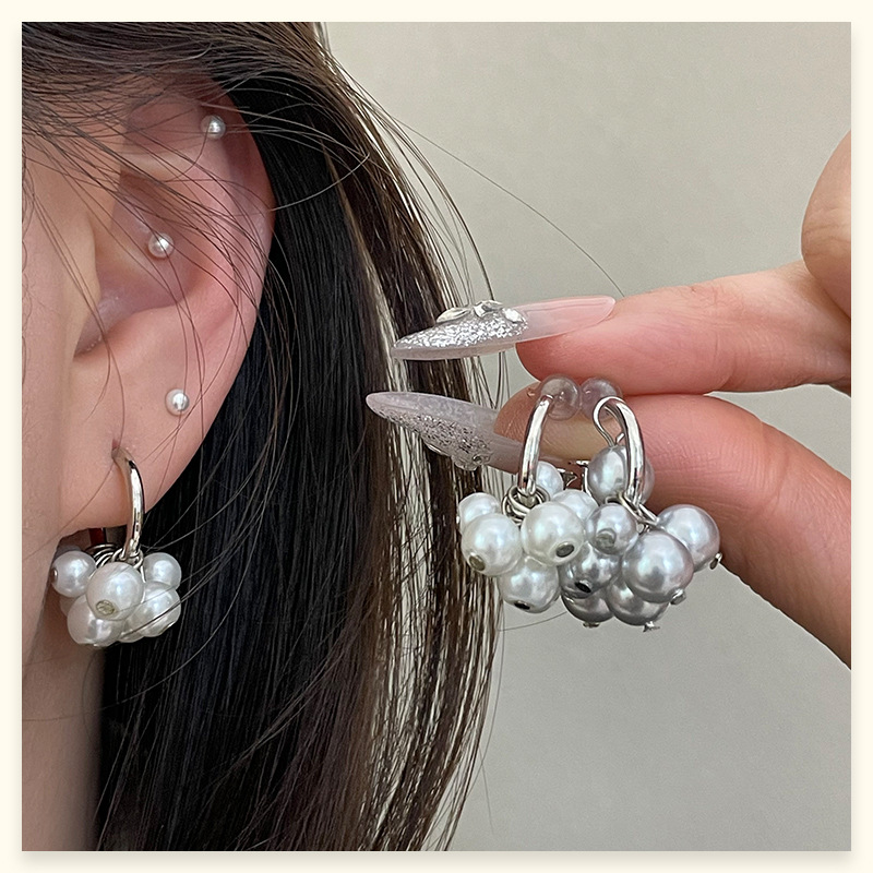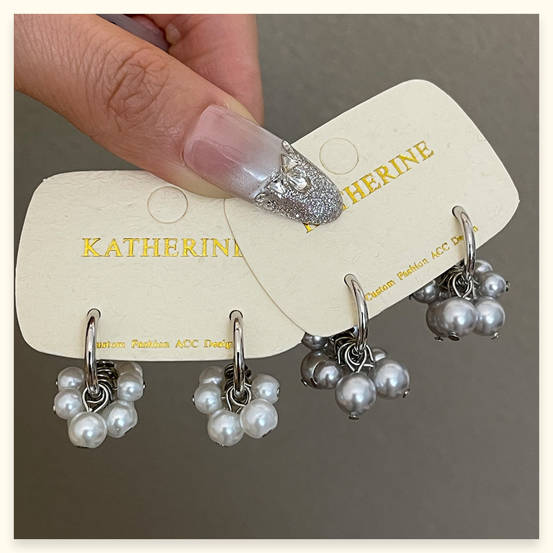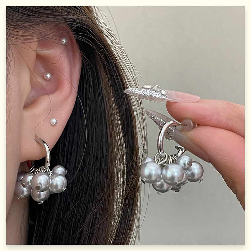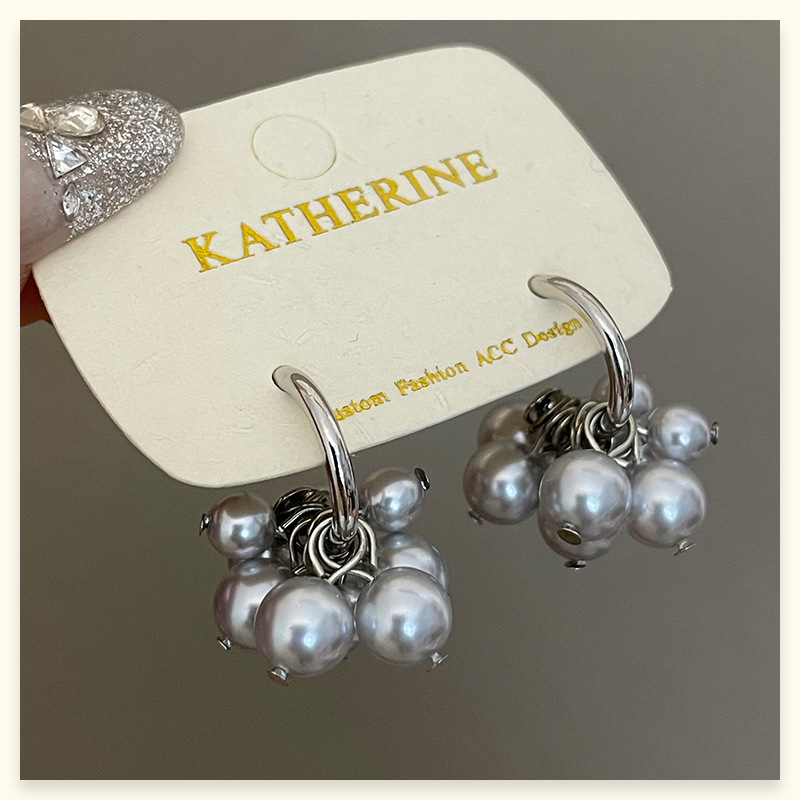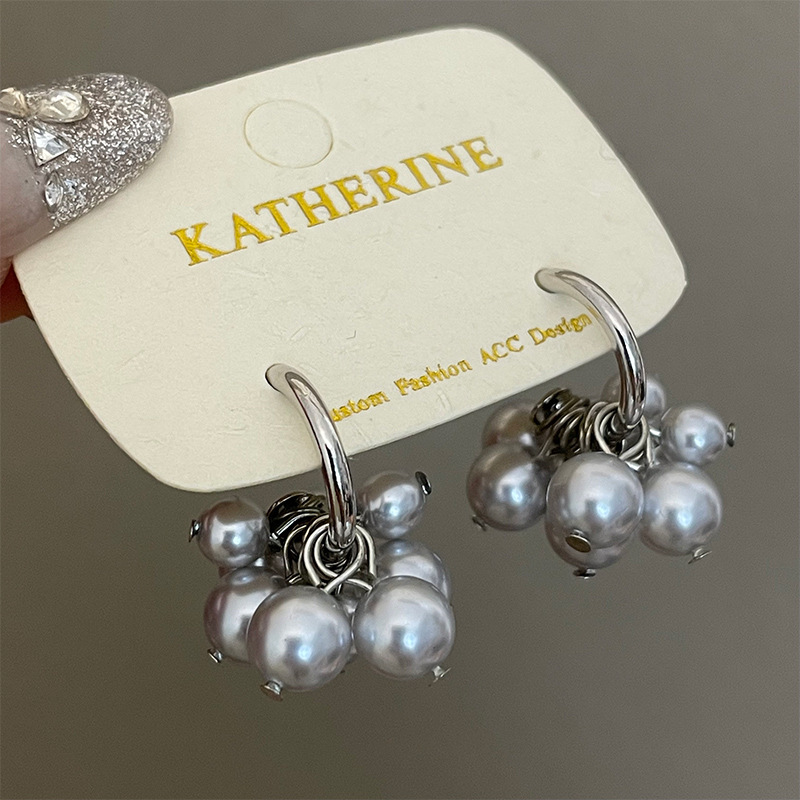 4177 gray pearl stud earrings