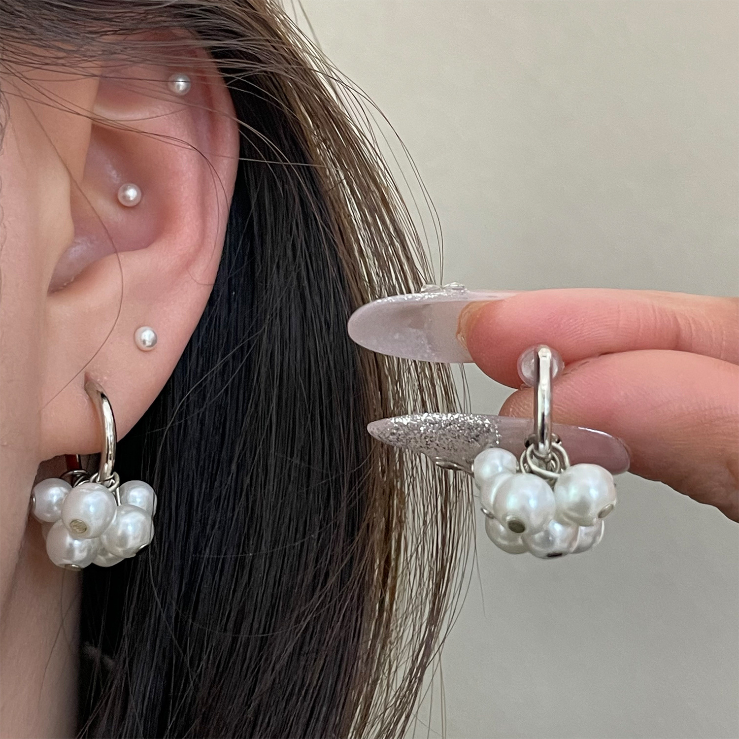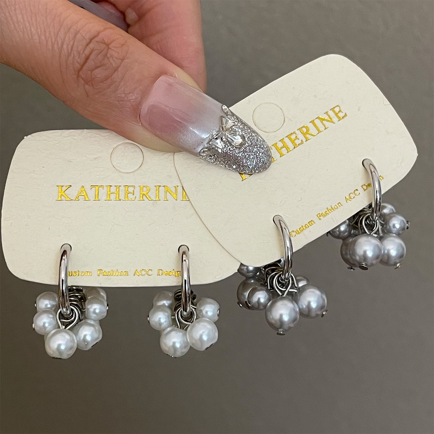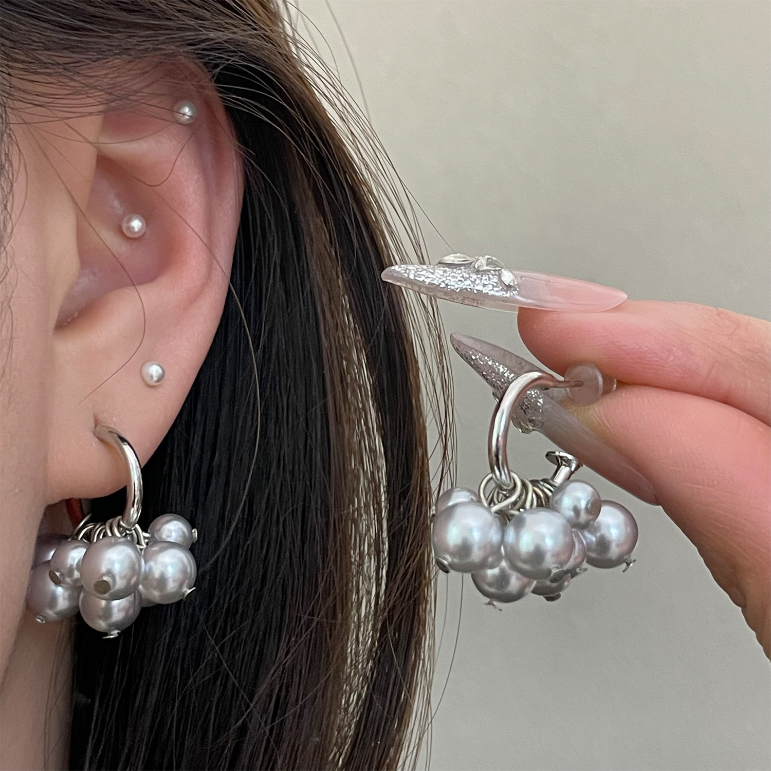 4177 gray pearl stud earrings
