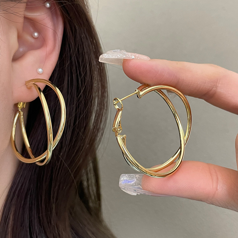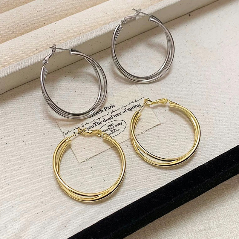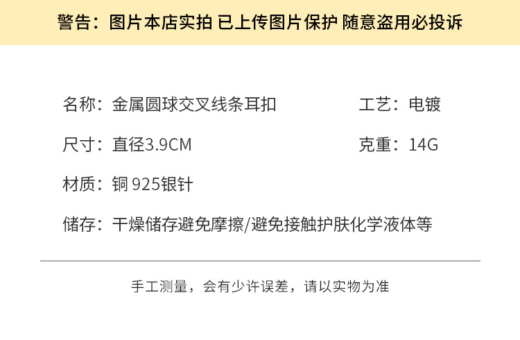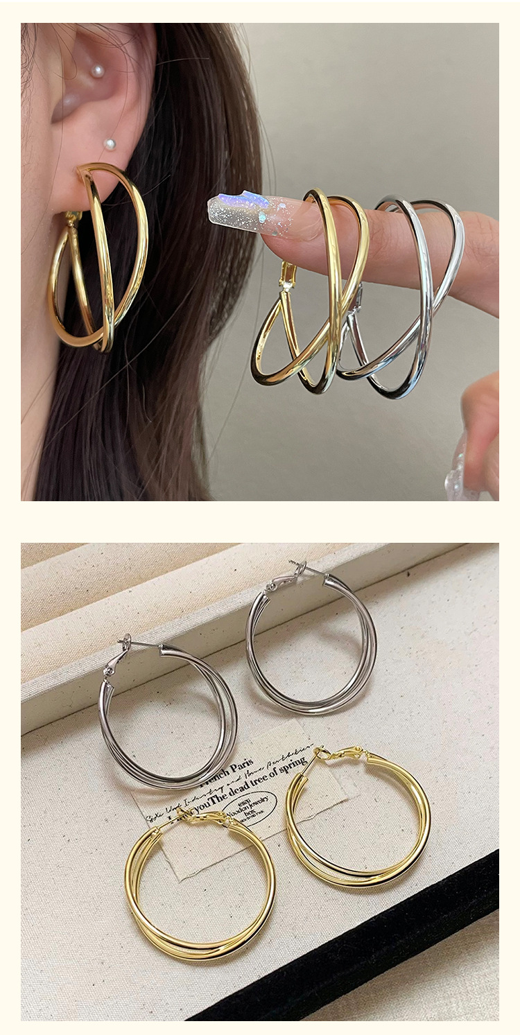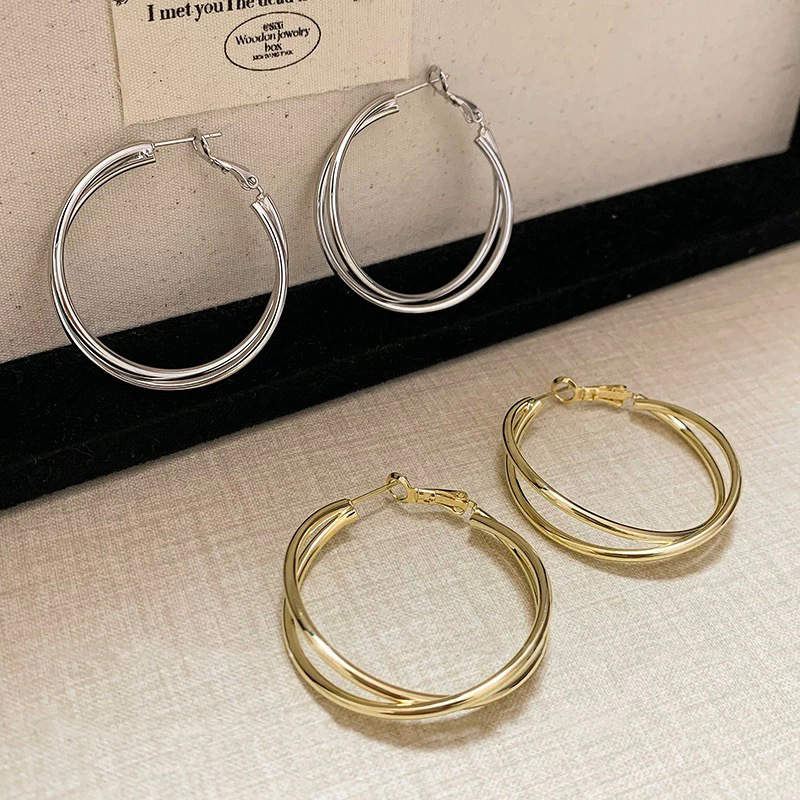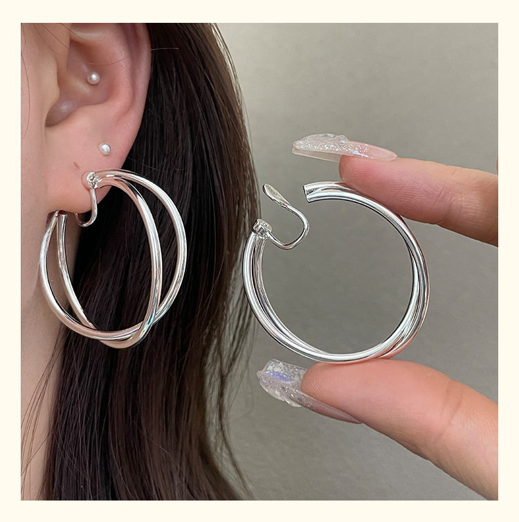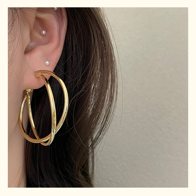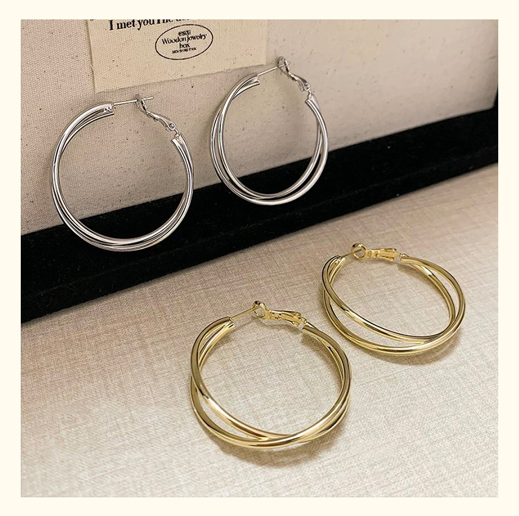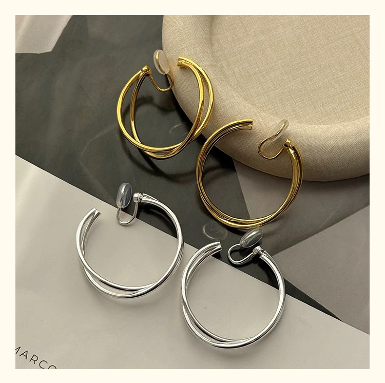 3126 golden cross line 925 silver needle ear clip