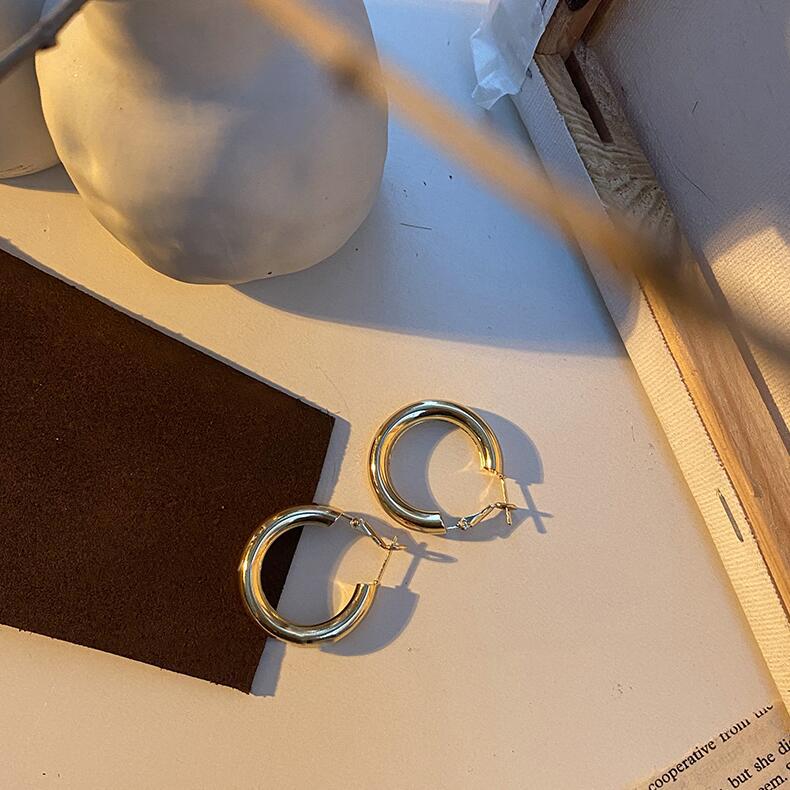 0581 large gold hollow tube 925 silver needle