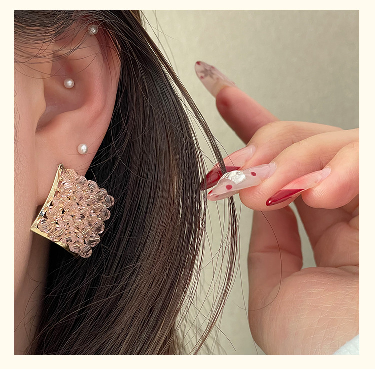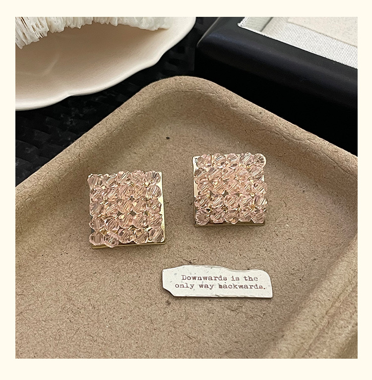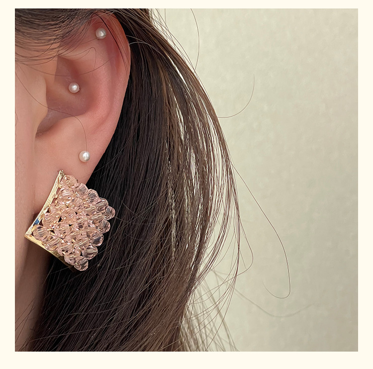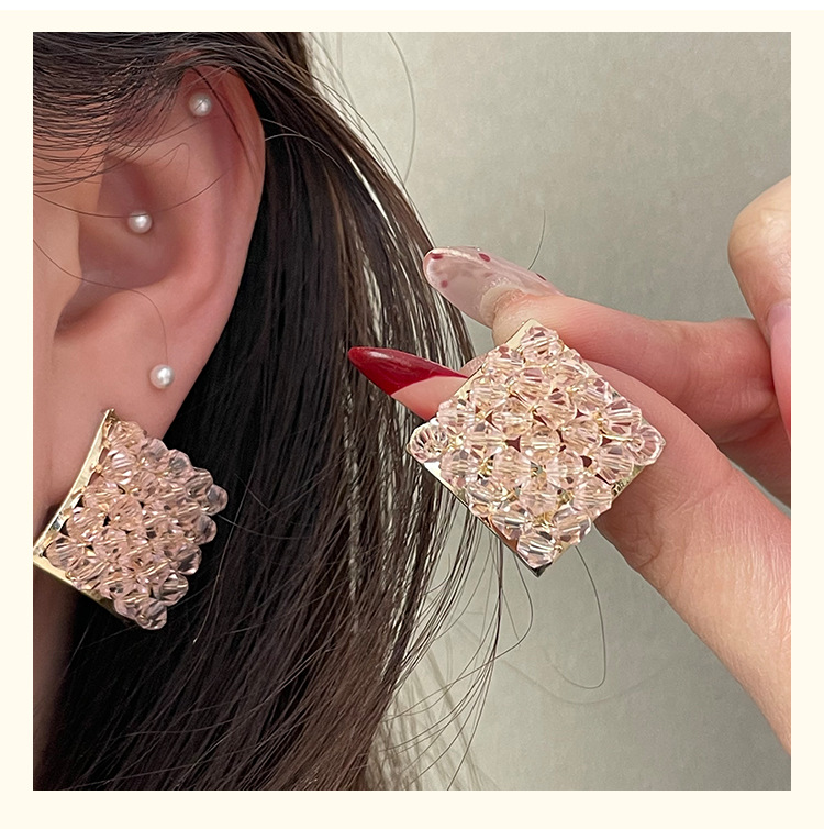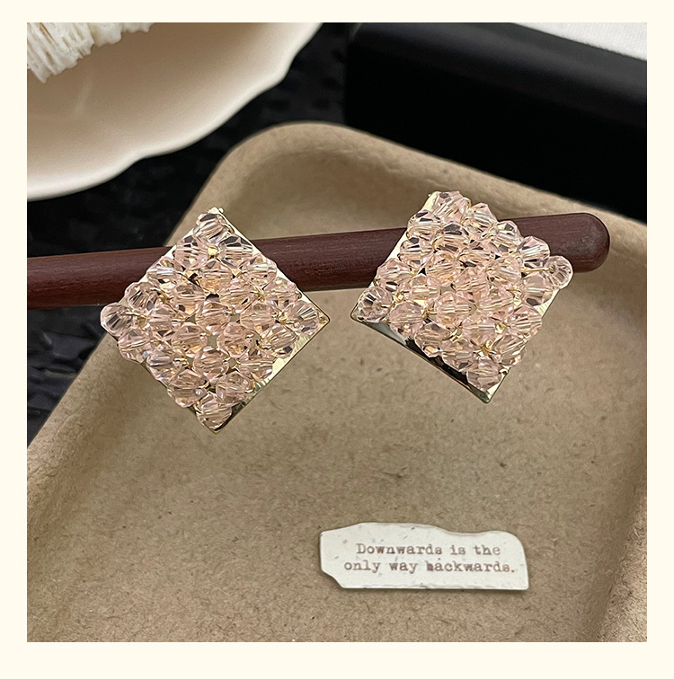 color: 4222 pink crystal rhombic ear studs