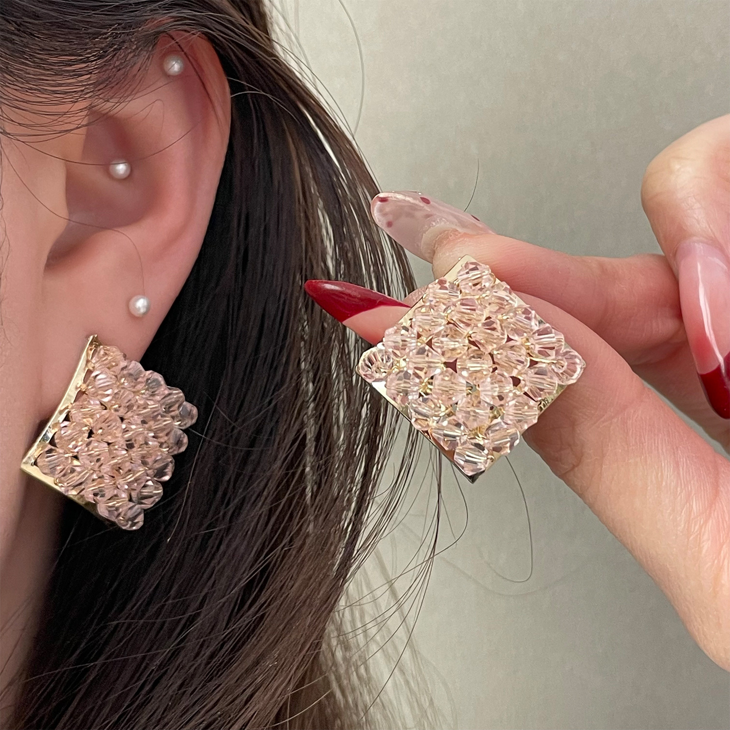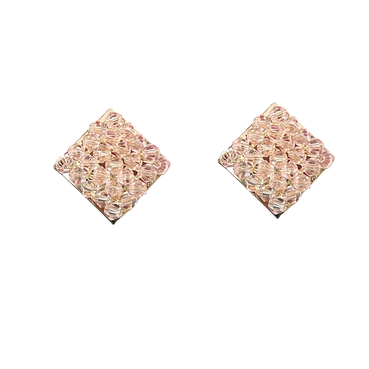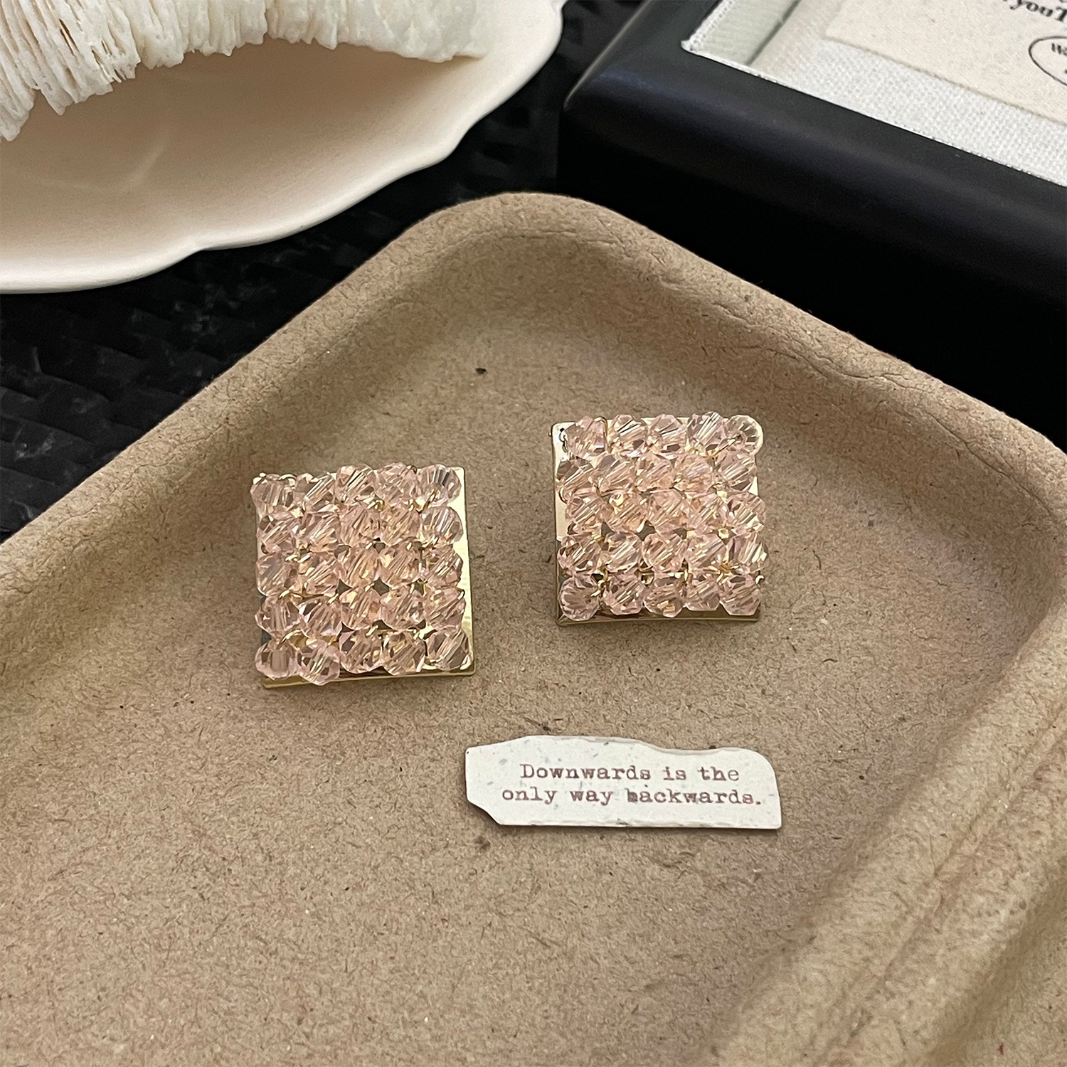 color: 4222 pink crystal rhombic ear studs