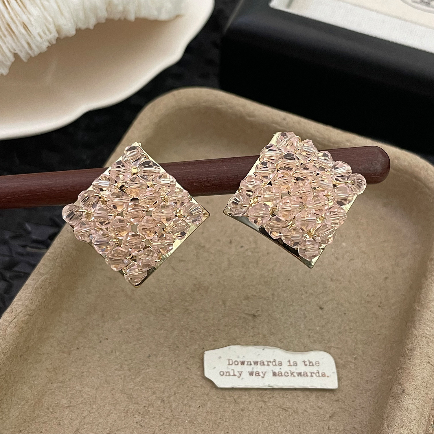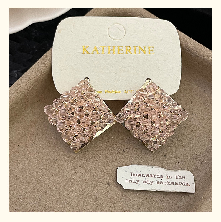 4222 pink crystal rhombic ear studs