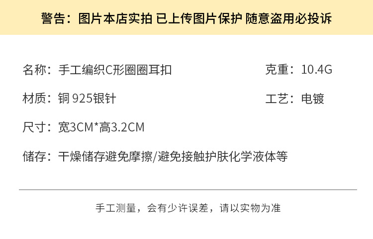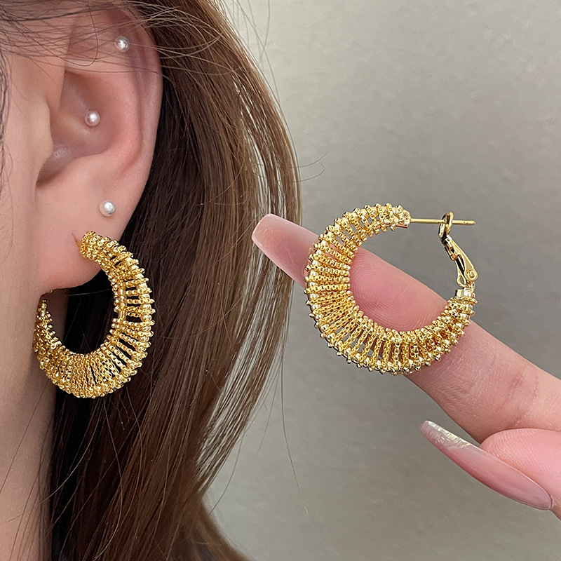 3590 gold woven c- shaped circle ear clip