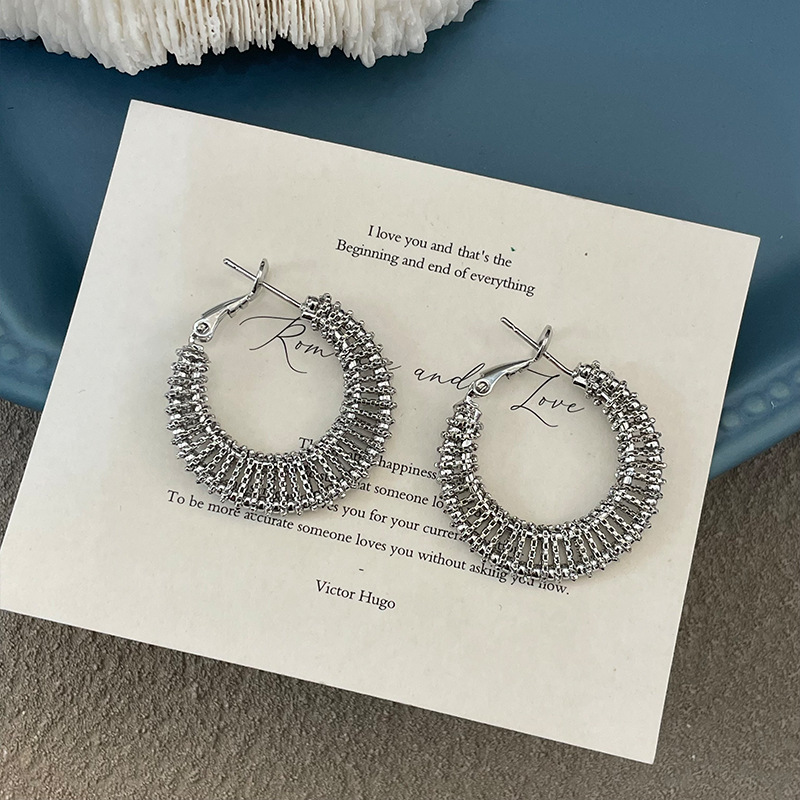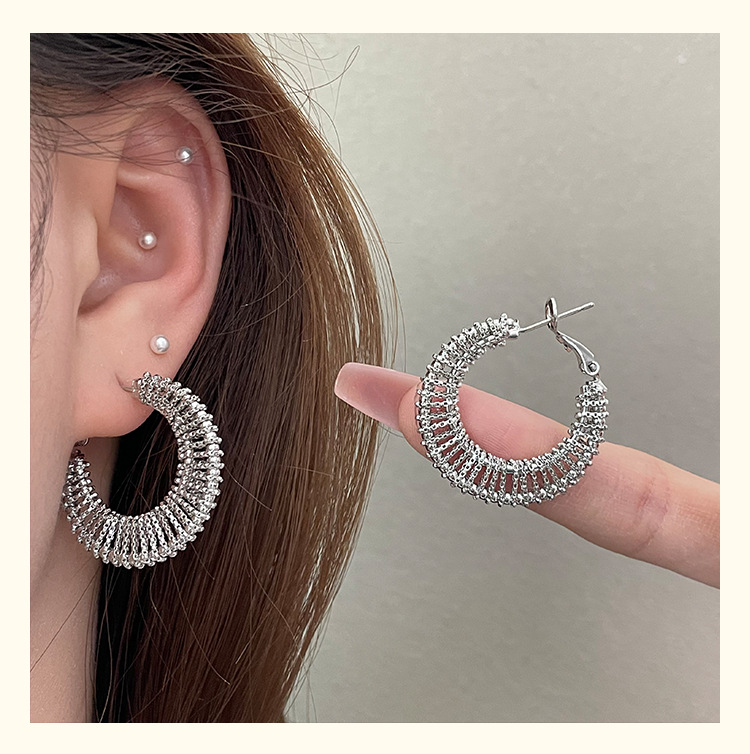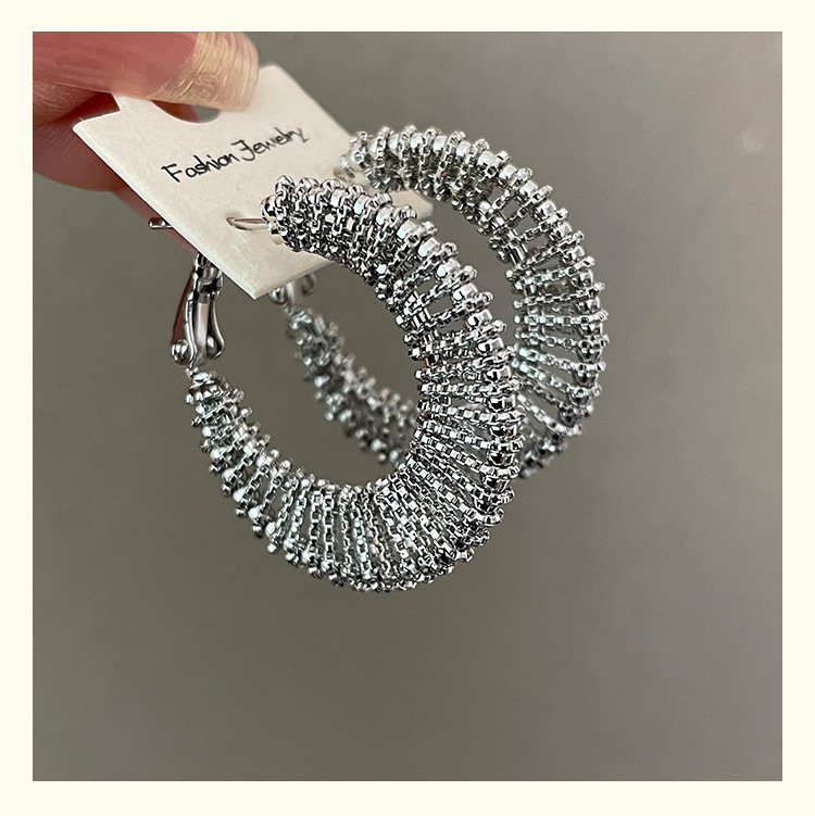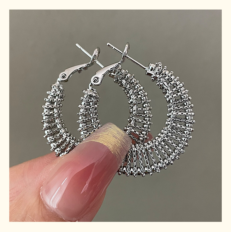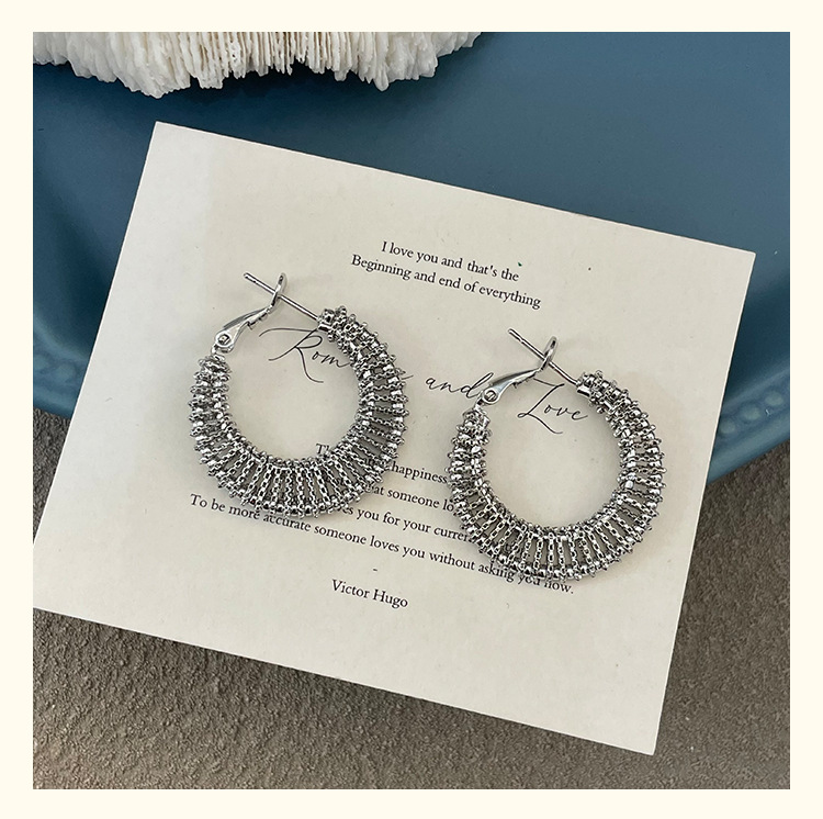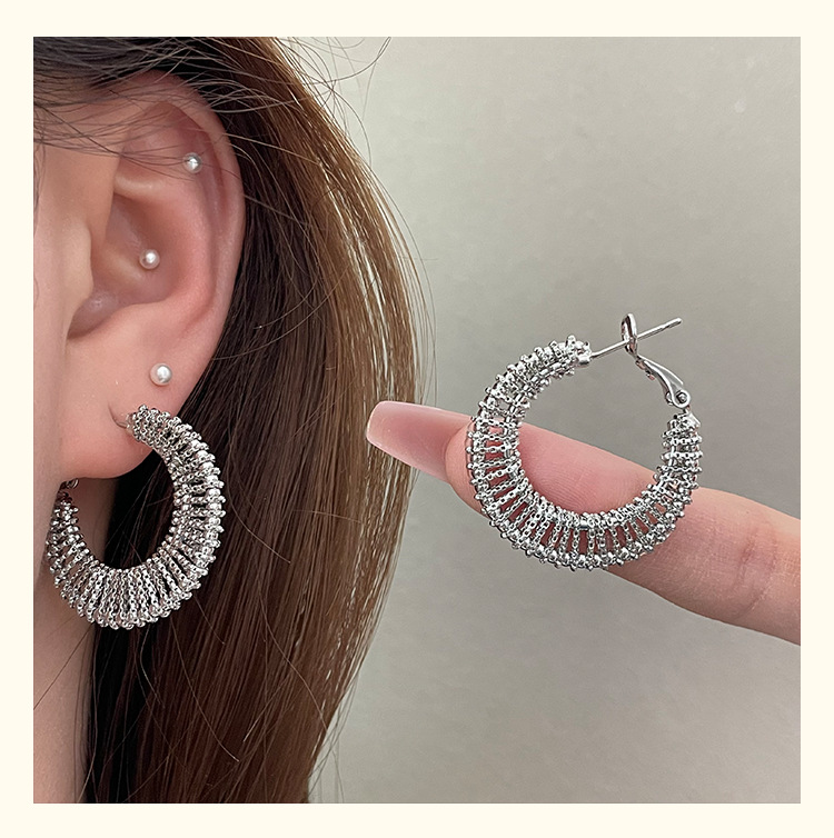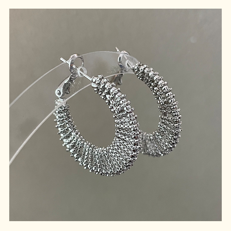 3590 silver woven c- shaped circle ear clip