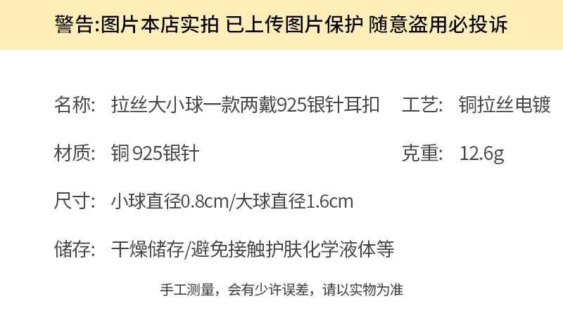1525 gold brushed size ball a dual-wear 925 silver needle