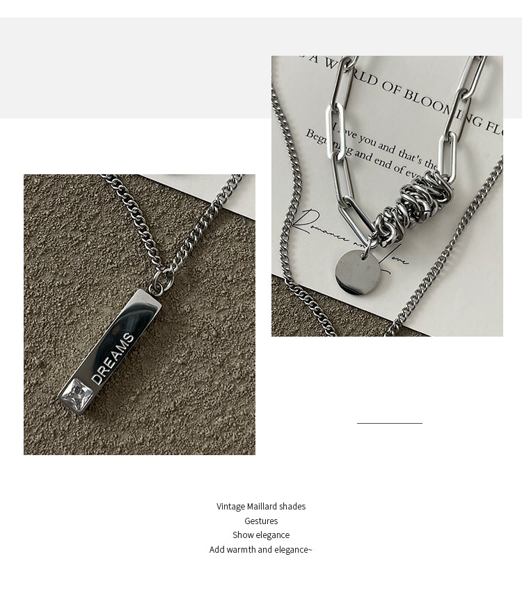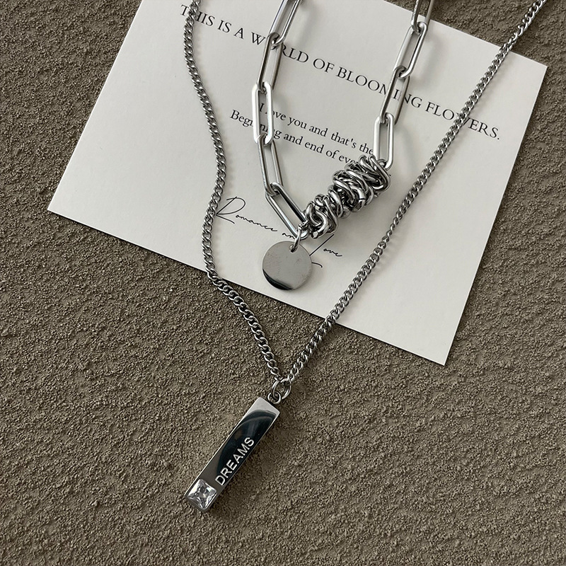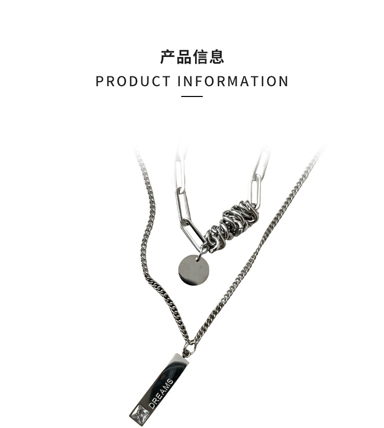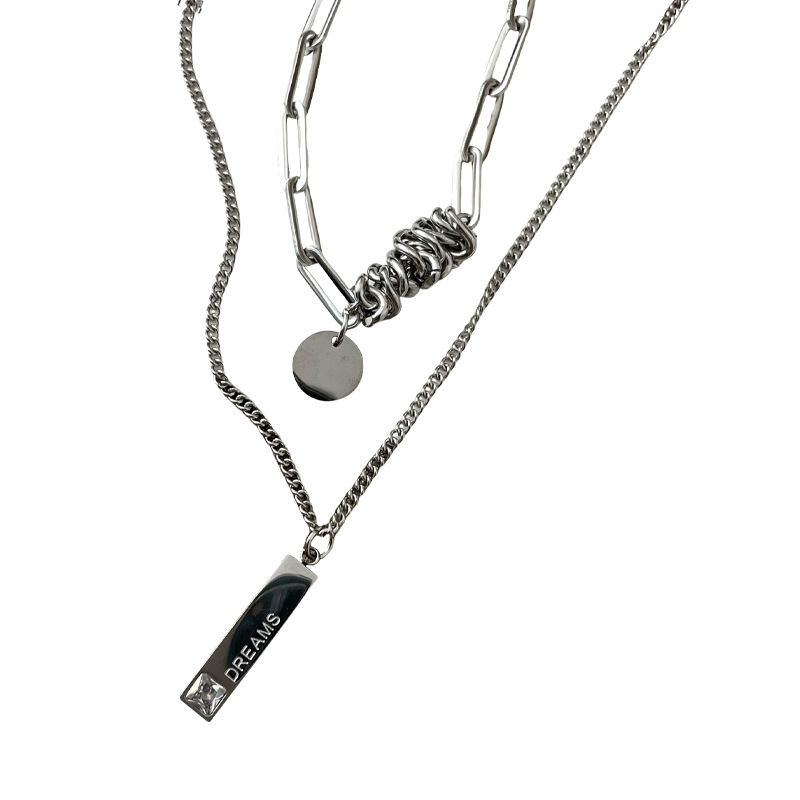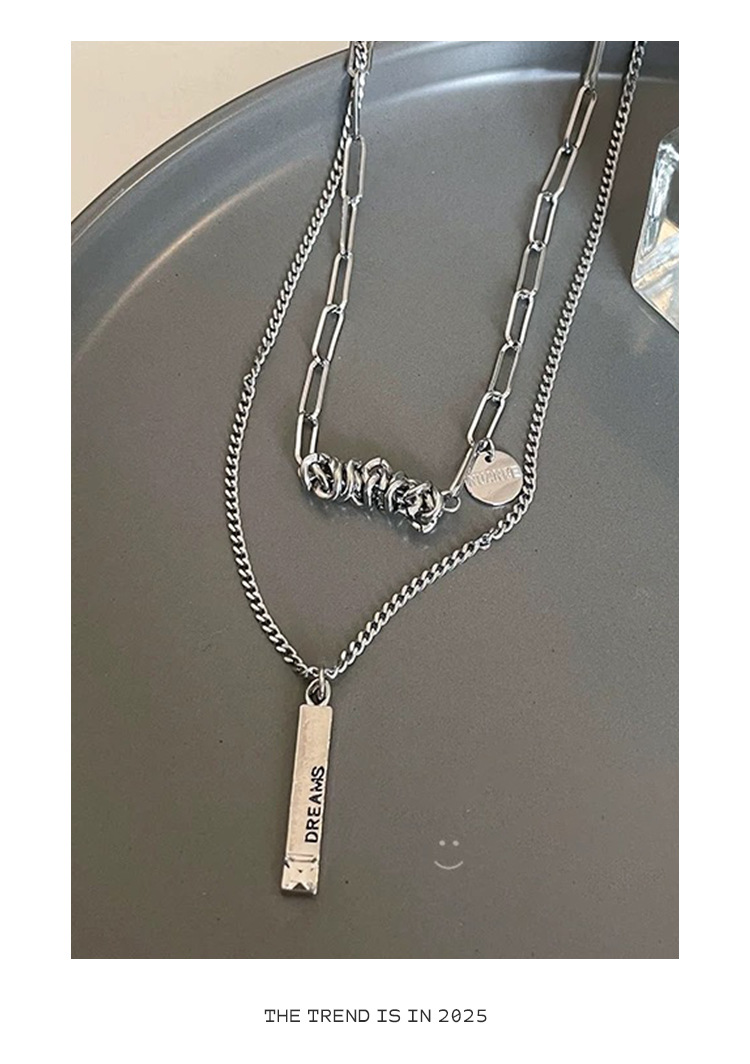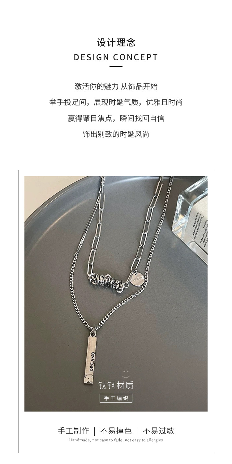 color: 3030 whole body titanium steel double layer twin winding word plate necklace