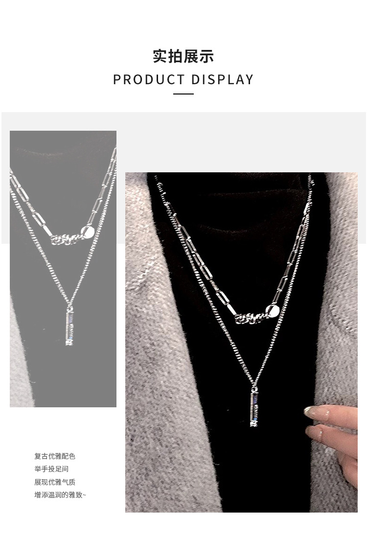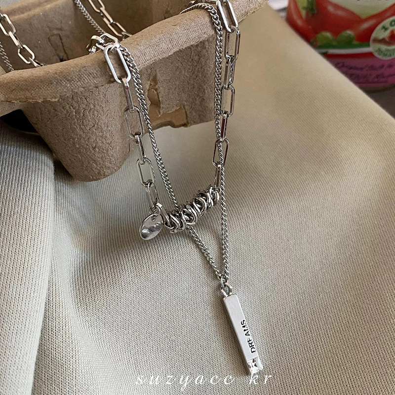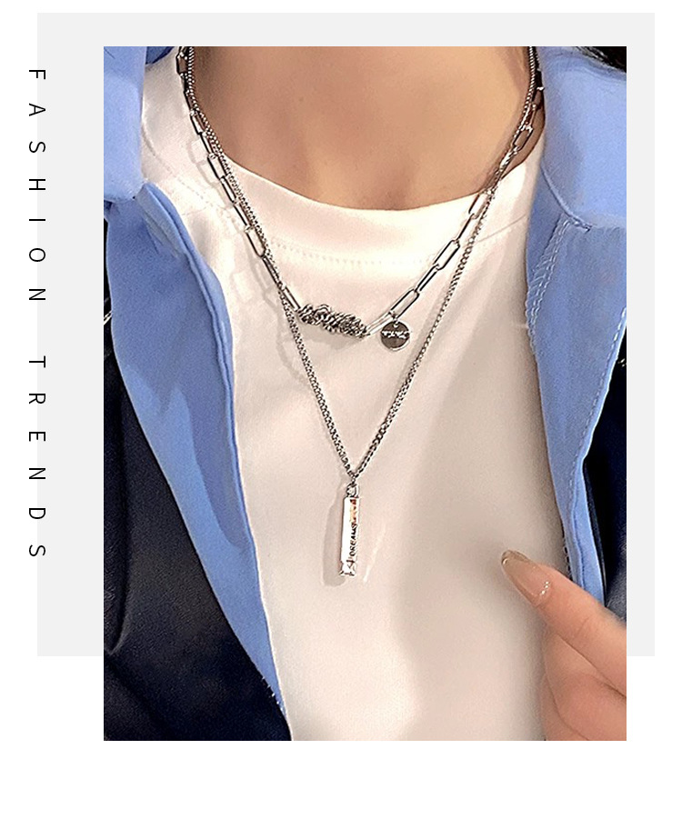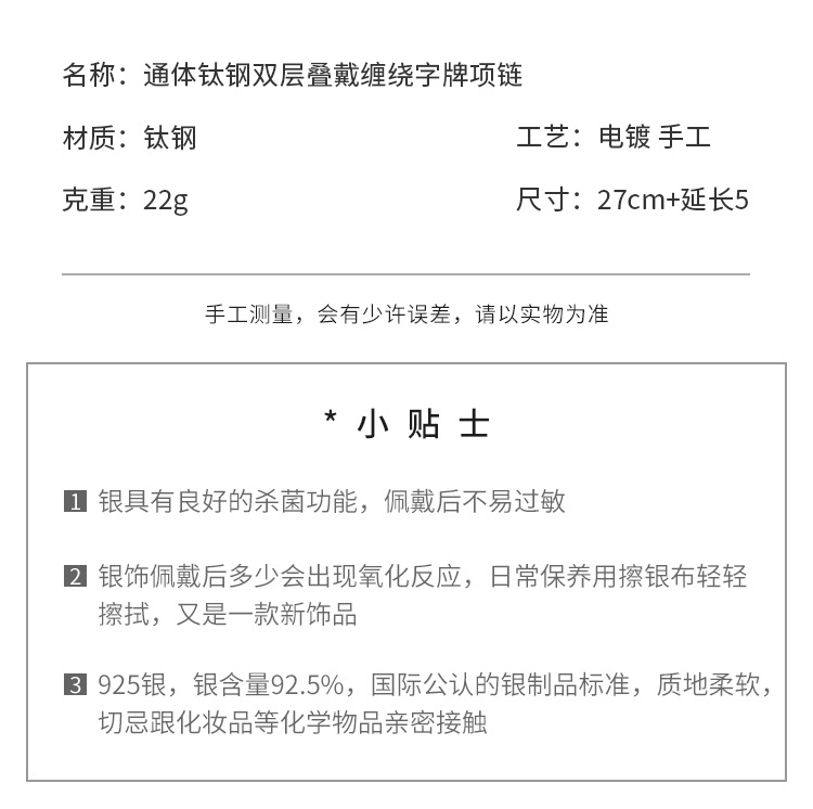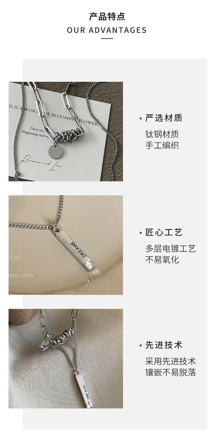 color: 3030 whole body titanium steel double layer twin winding word plate necklace