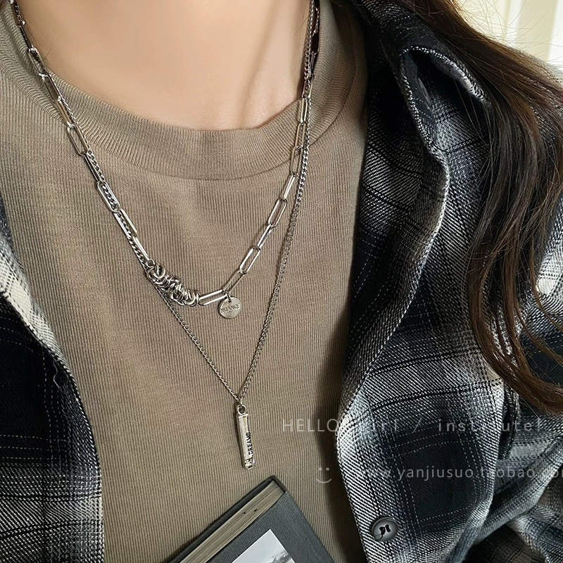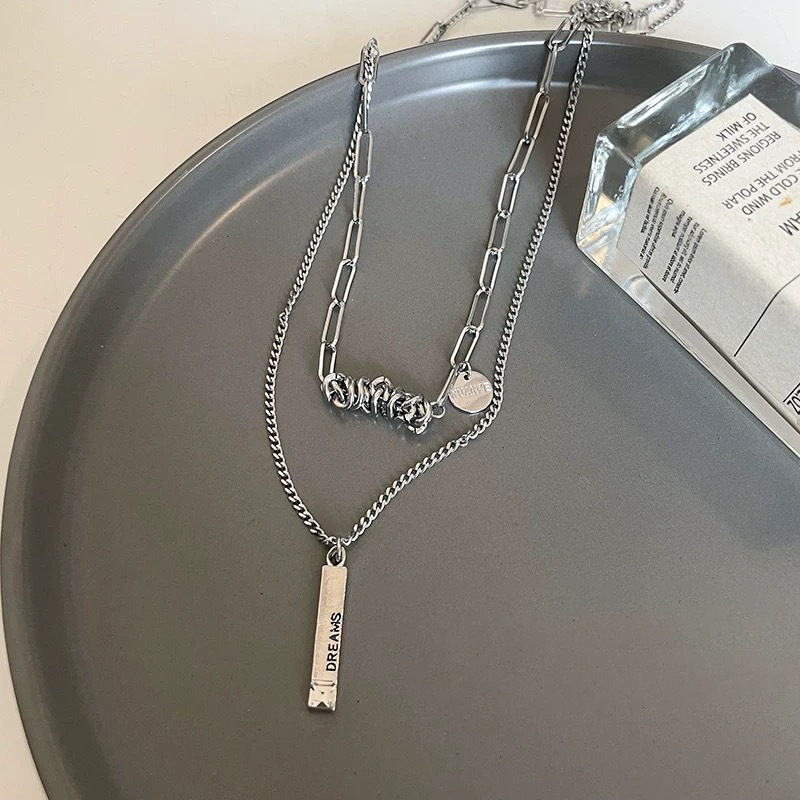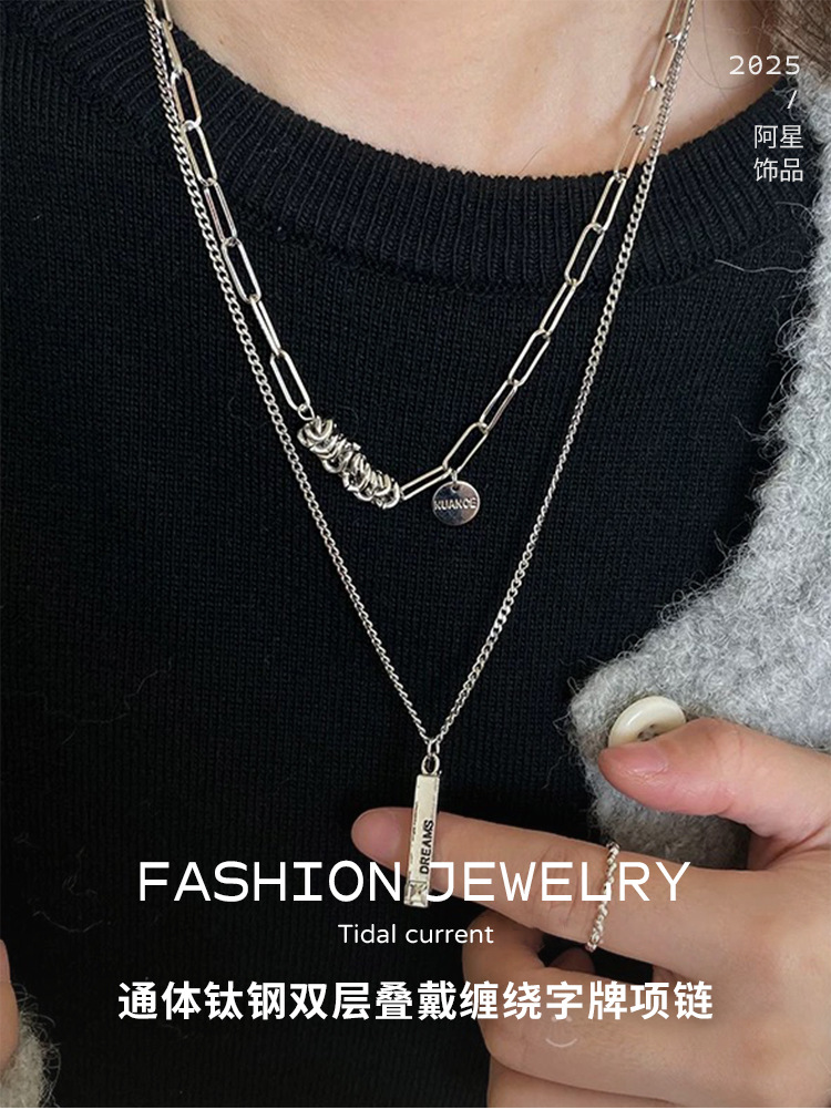 3030 whole body titanium steel double layer twin winding word plate necklace