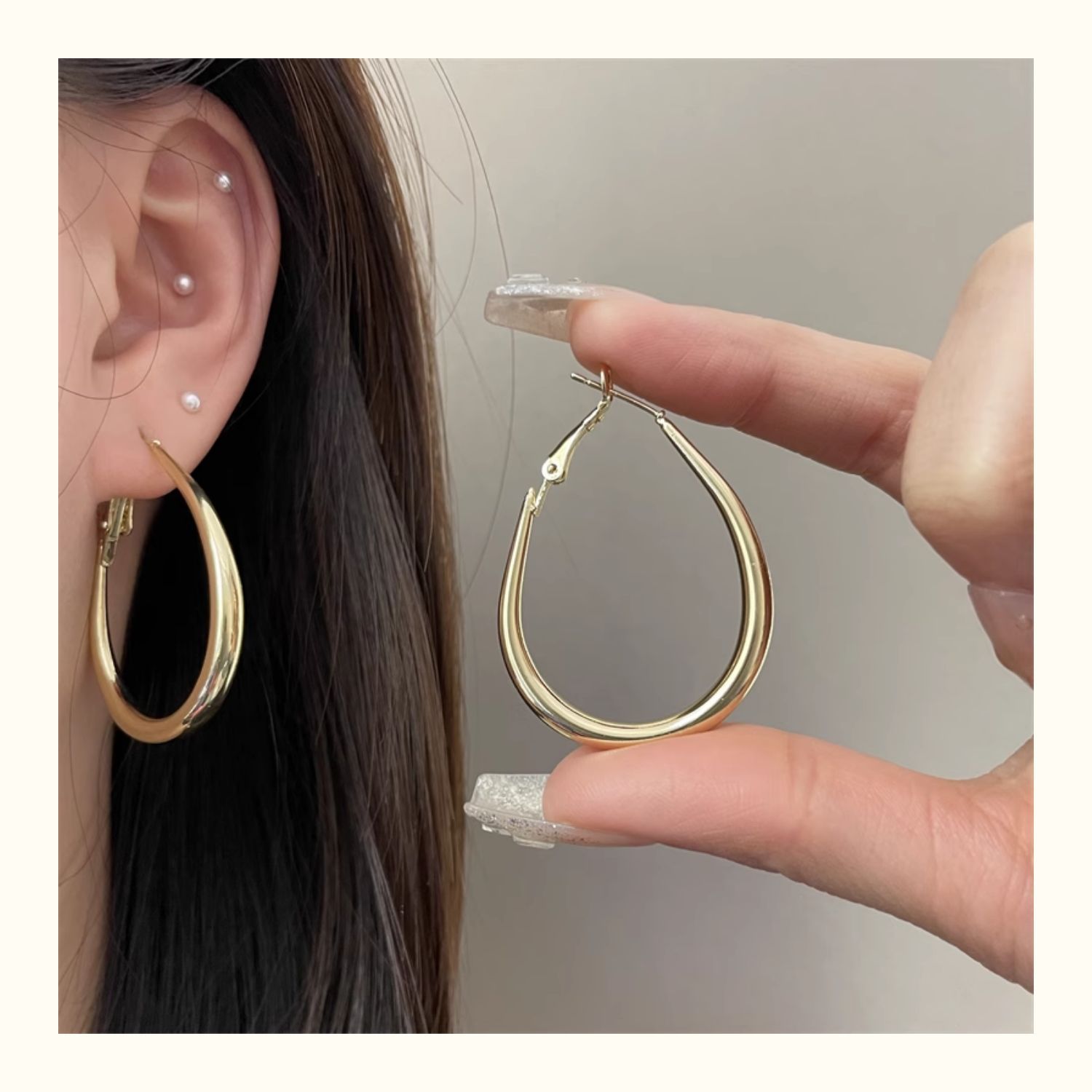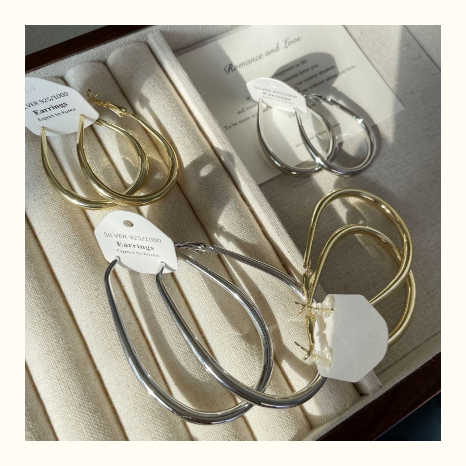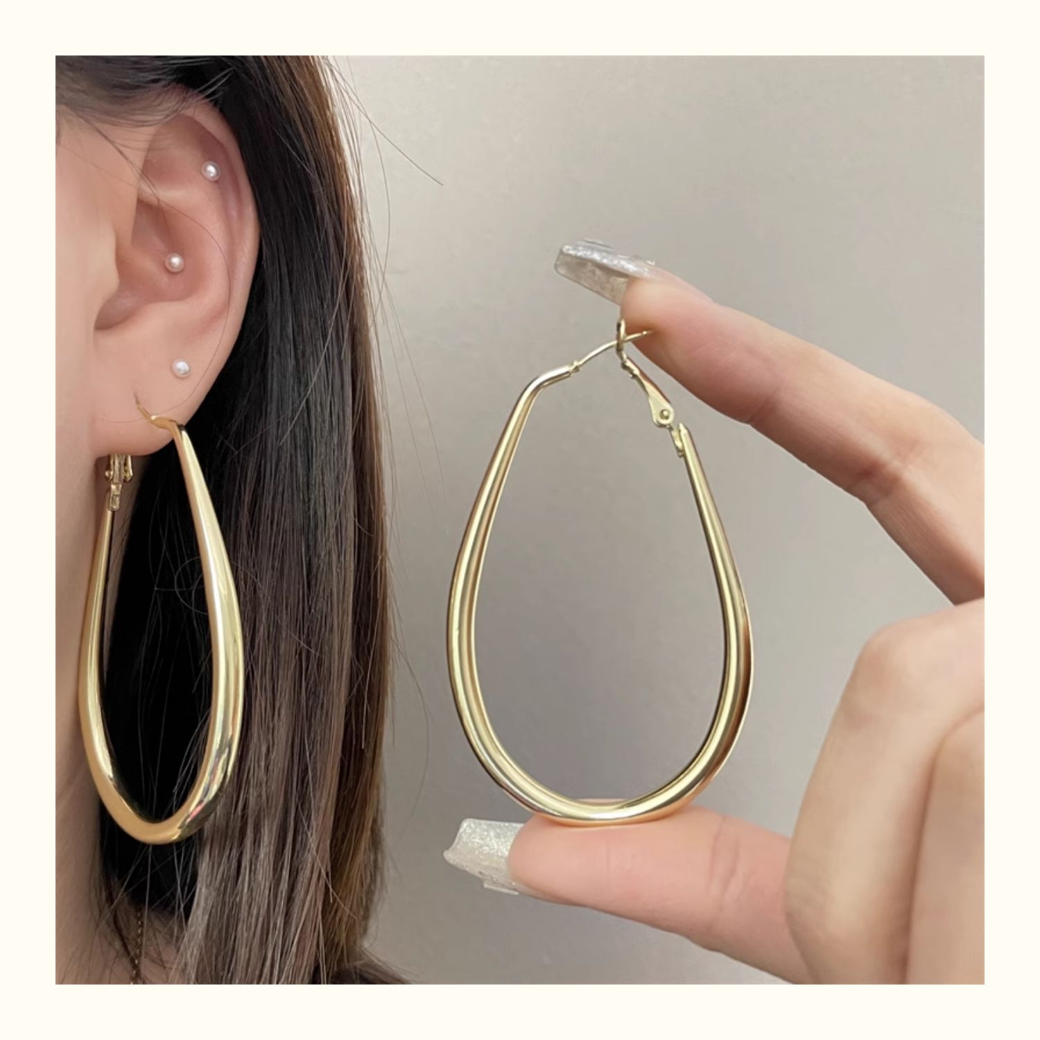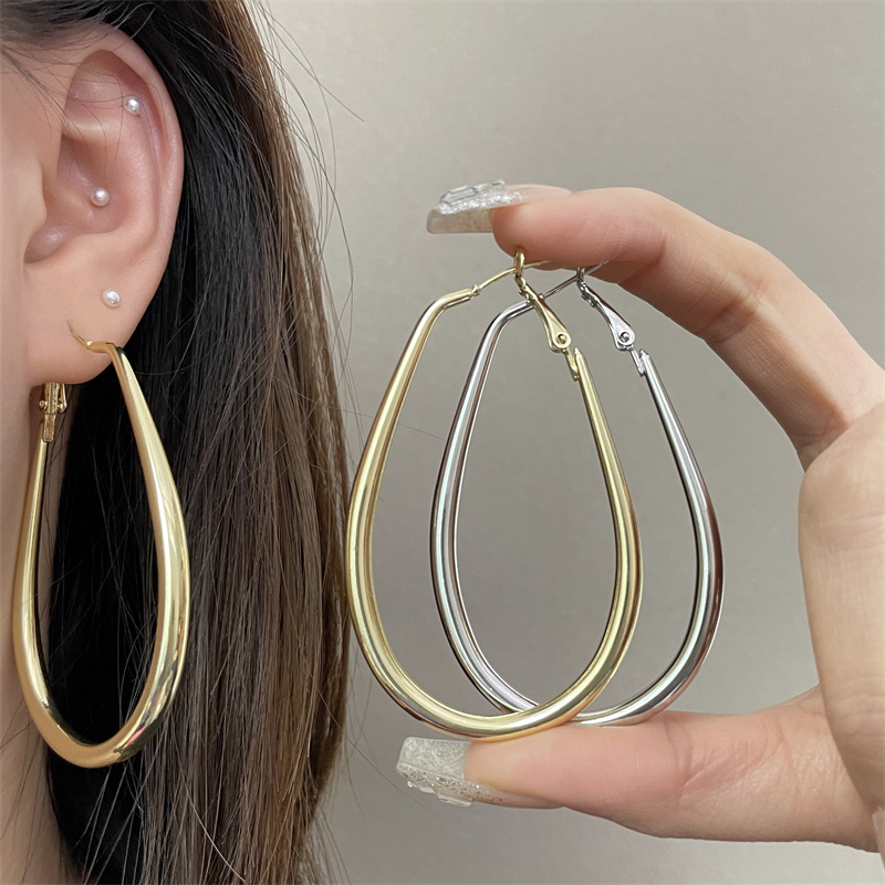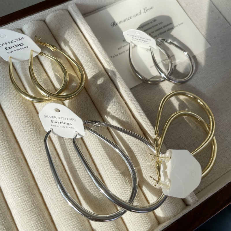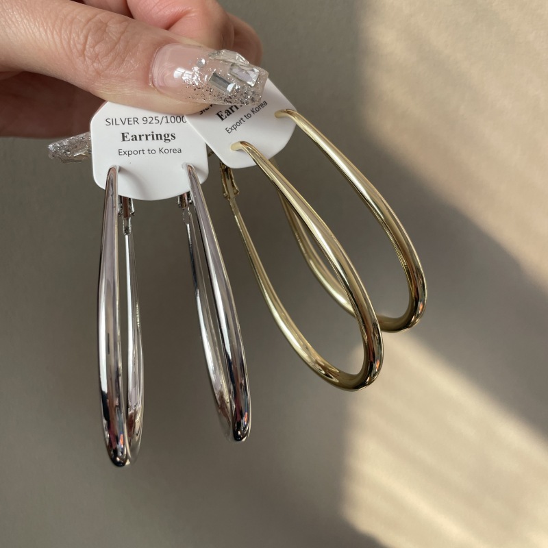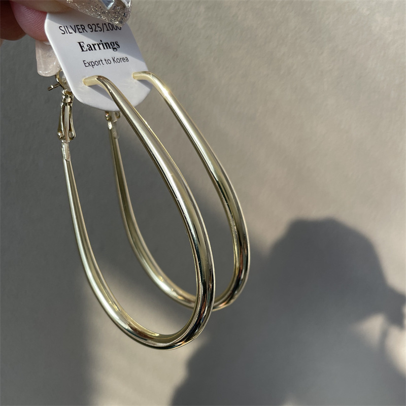 2206 large gold water drop ear ring 925 silver needle about 7cm