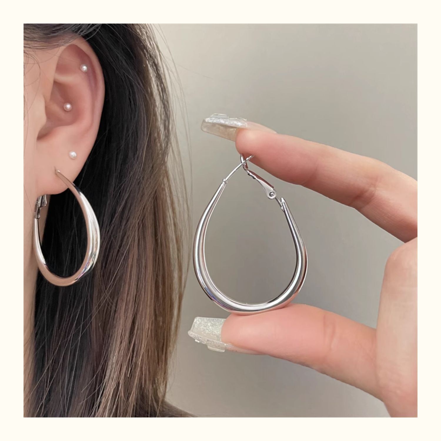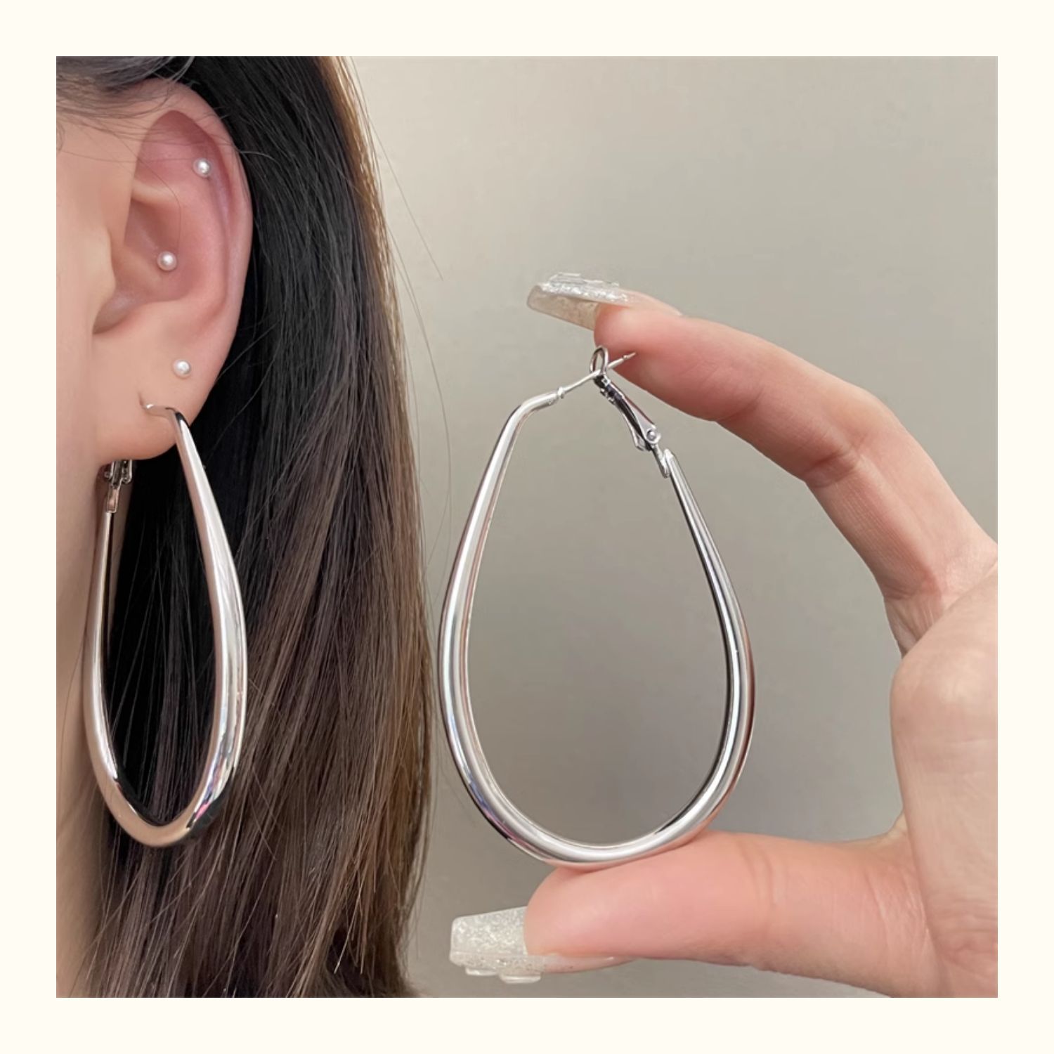 2206 large silver water drop ear ring 925 silver needle about 7cm