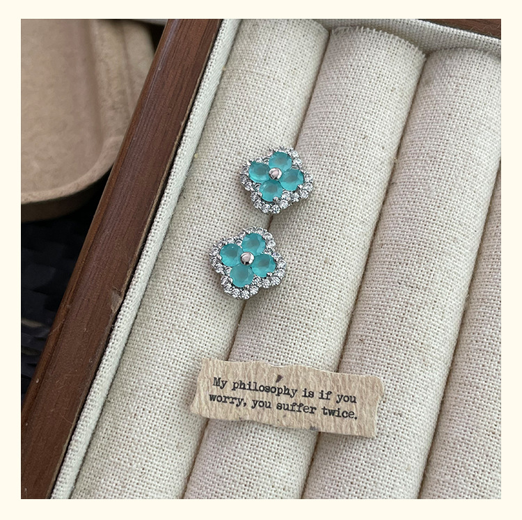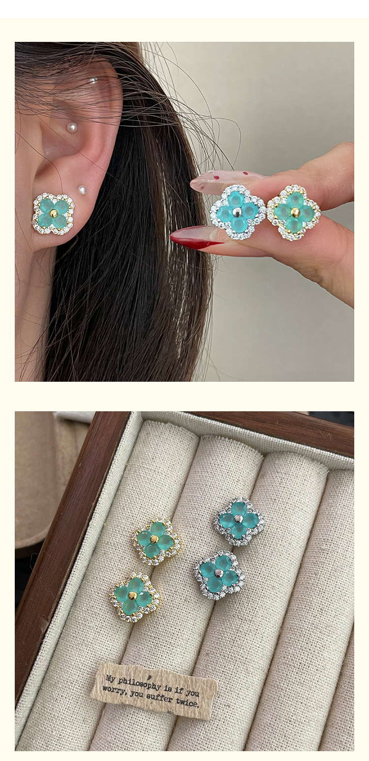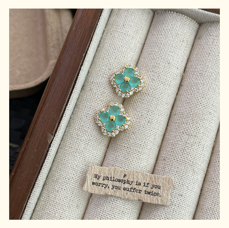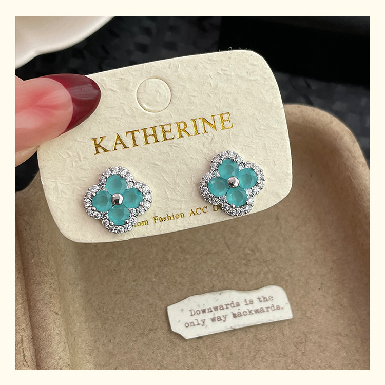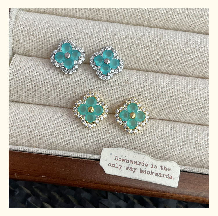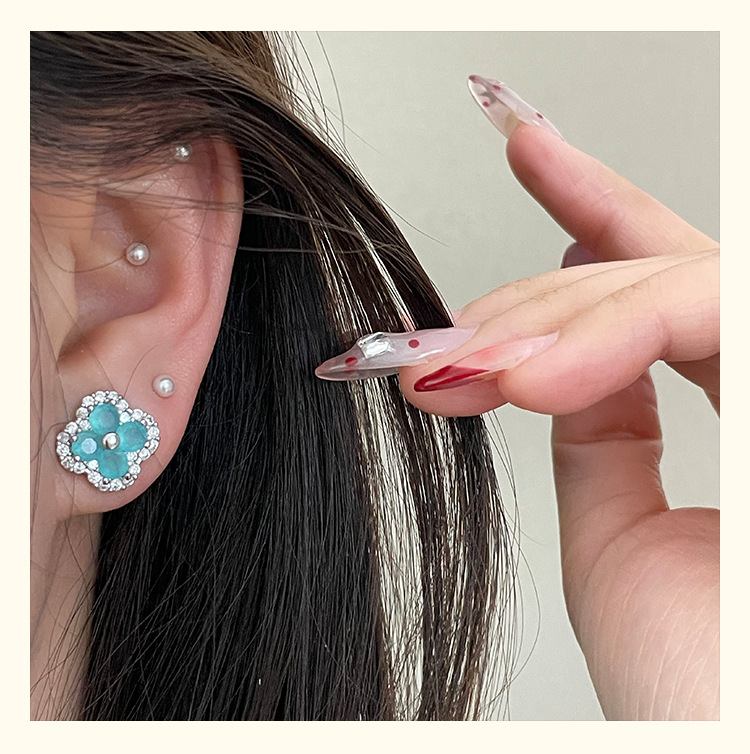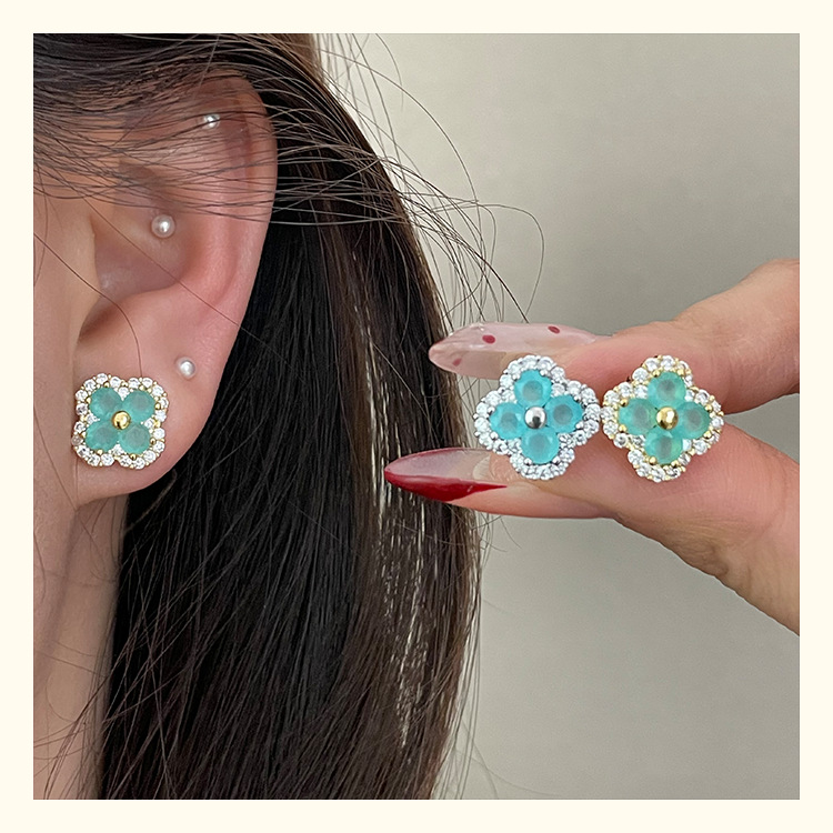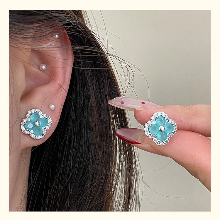 4210 silver four leaf clover ear stud