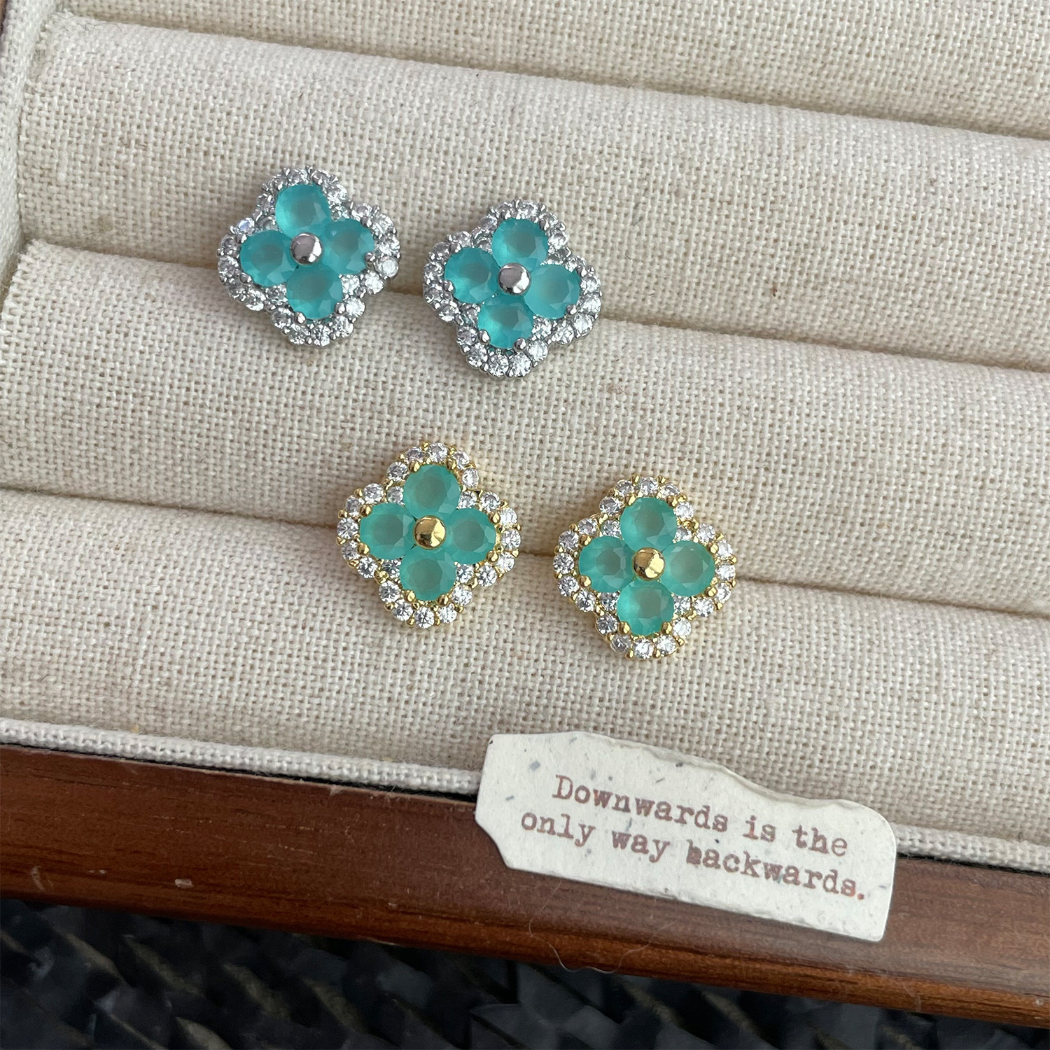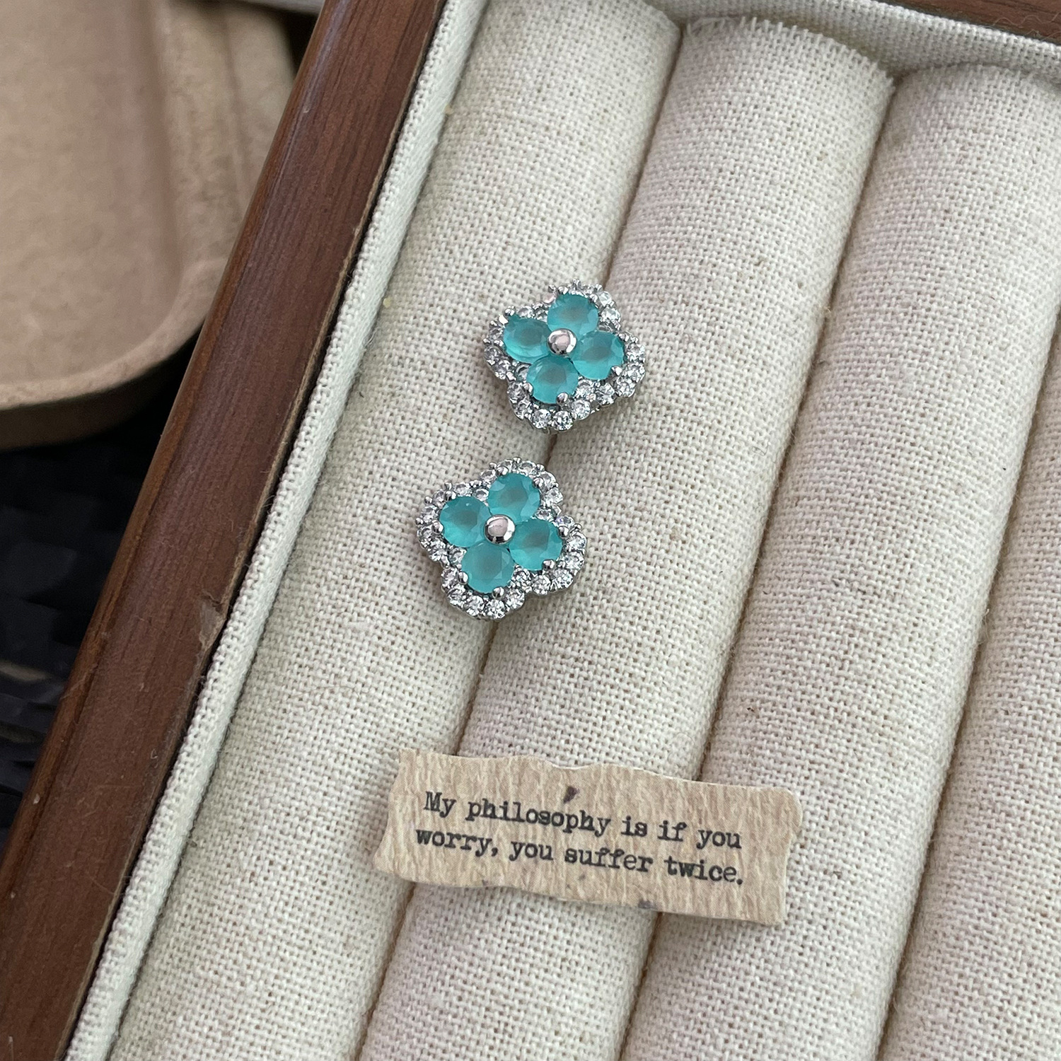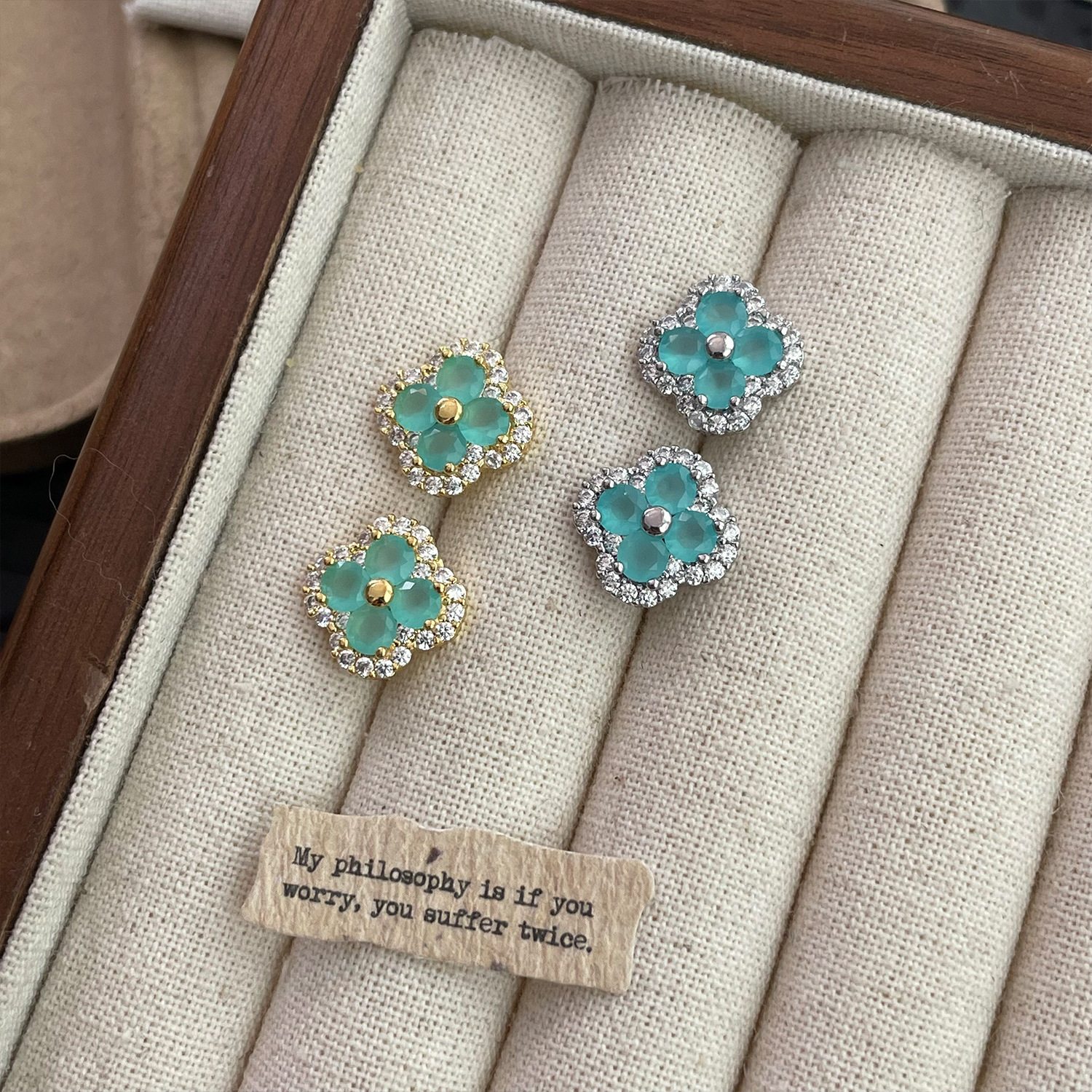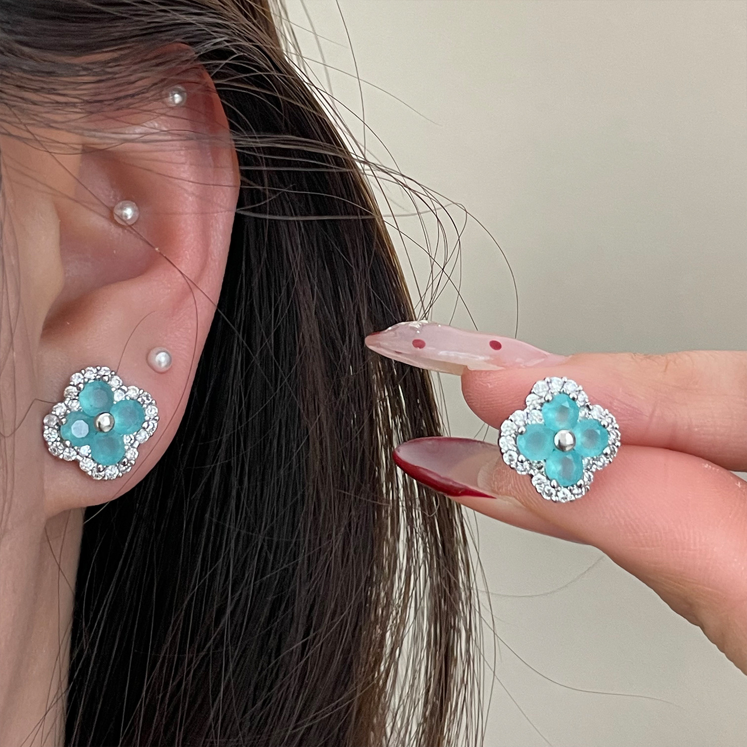 4210 silver four leaf clover ear stud