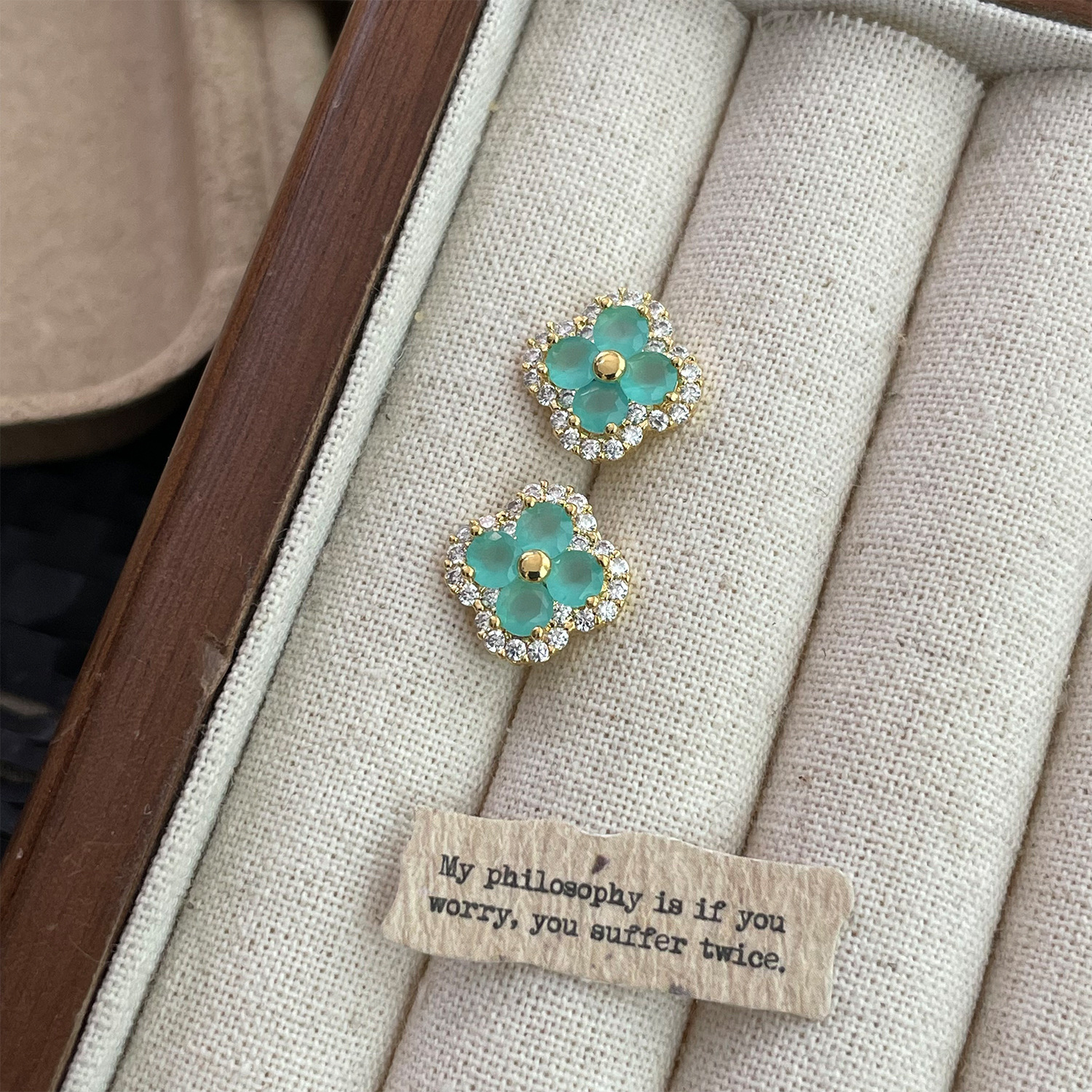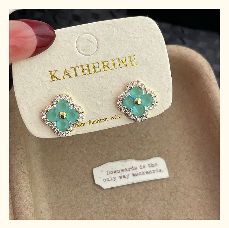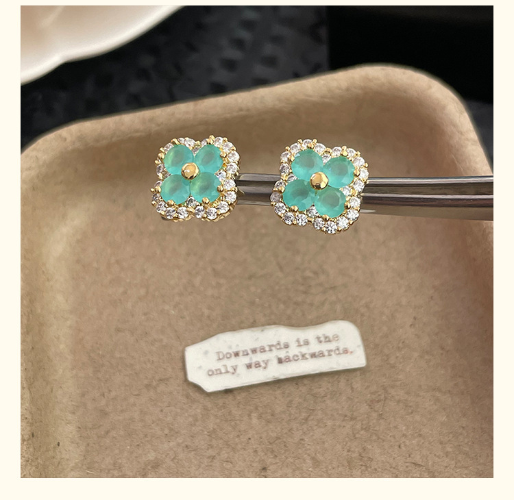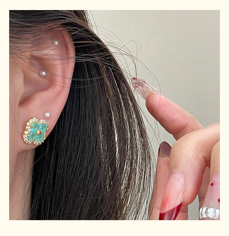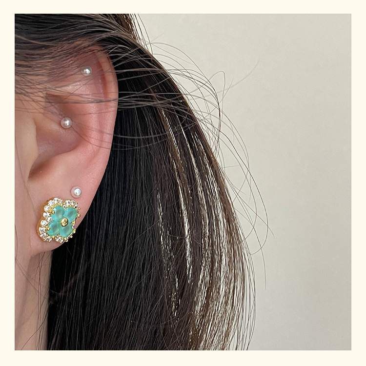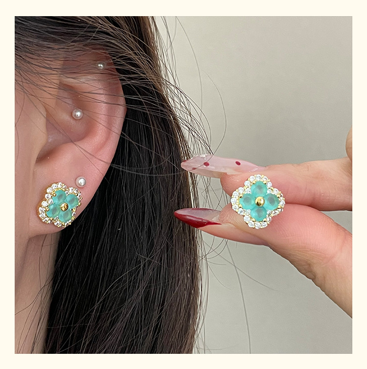 4210 gold four leaf clover ear stud