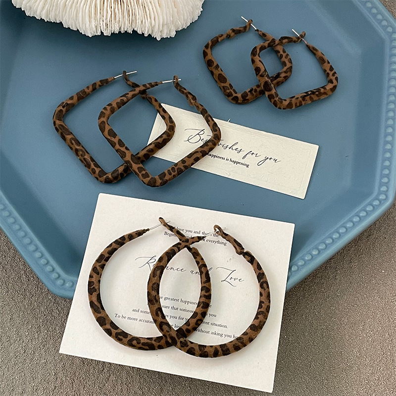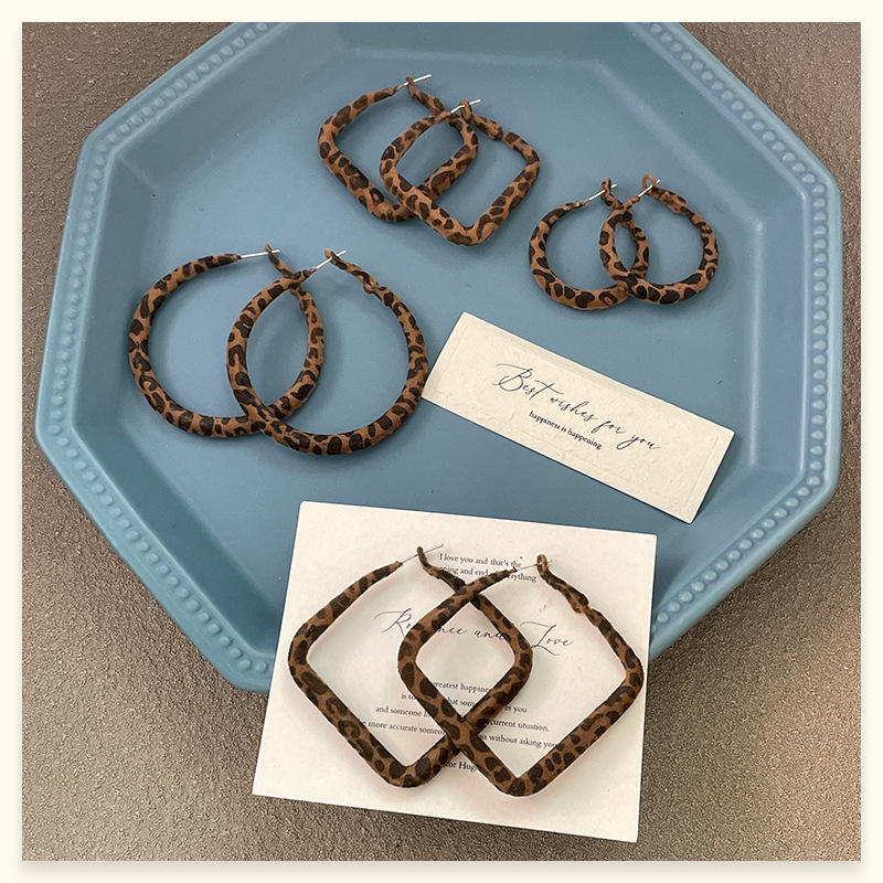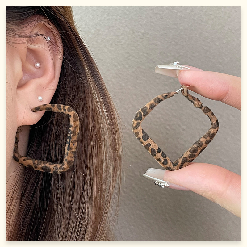3812 square leopard flocking [4.5cm]925 silver needle