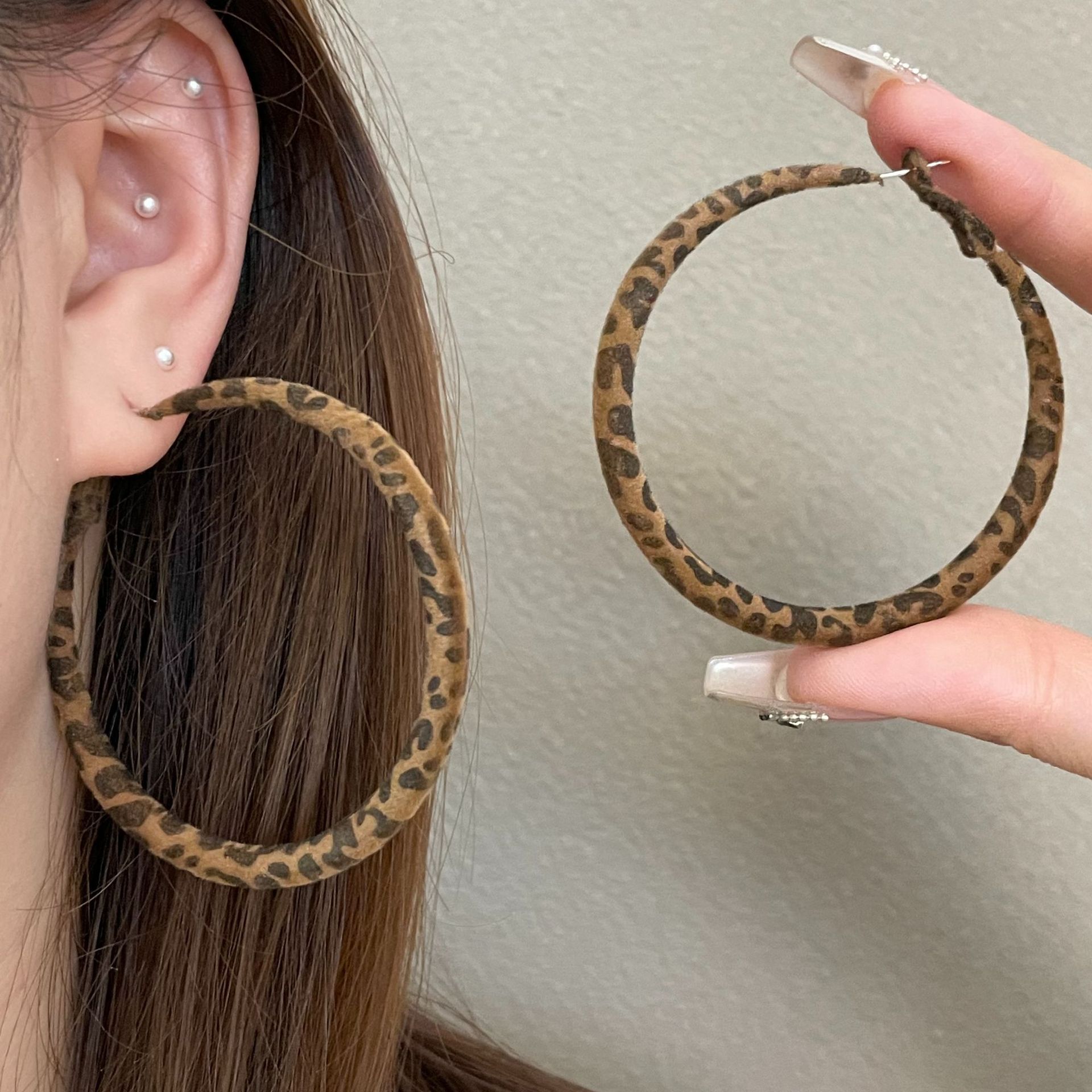3812 round leopard flocking [5cm]925 silver needle
