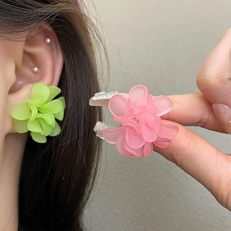 3107 green flower ear clip