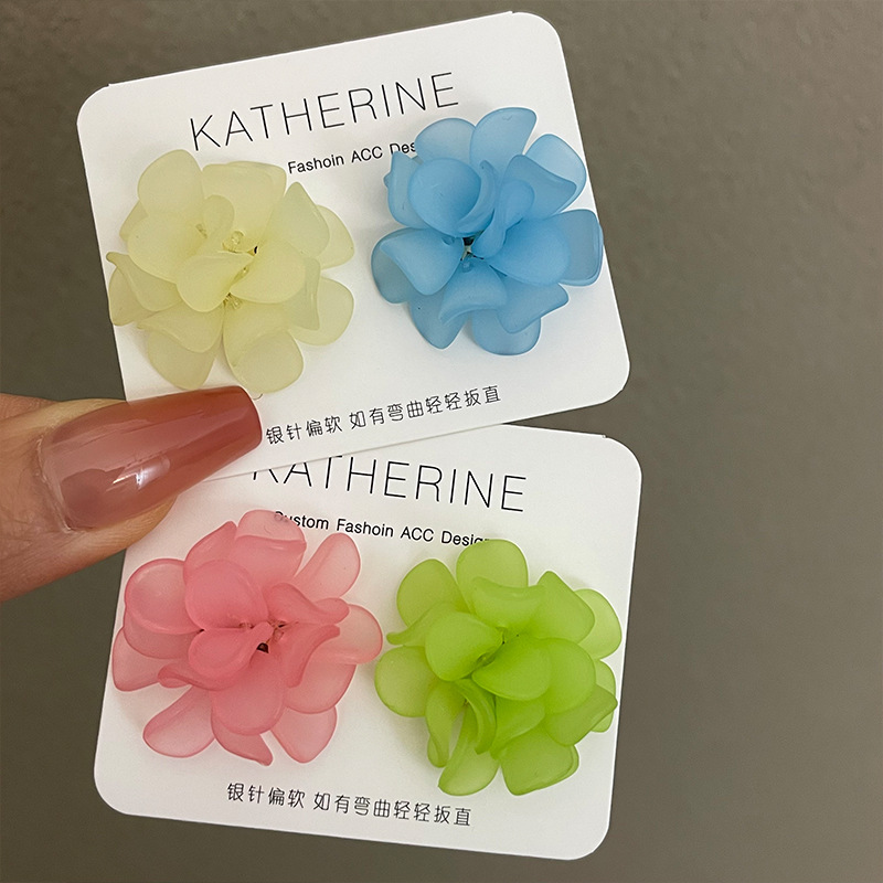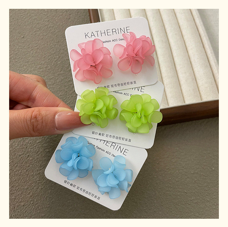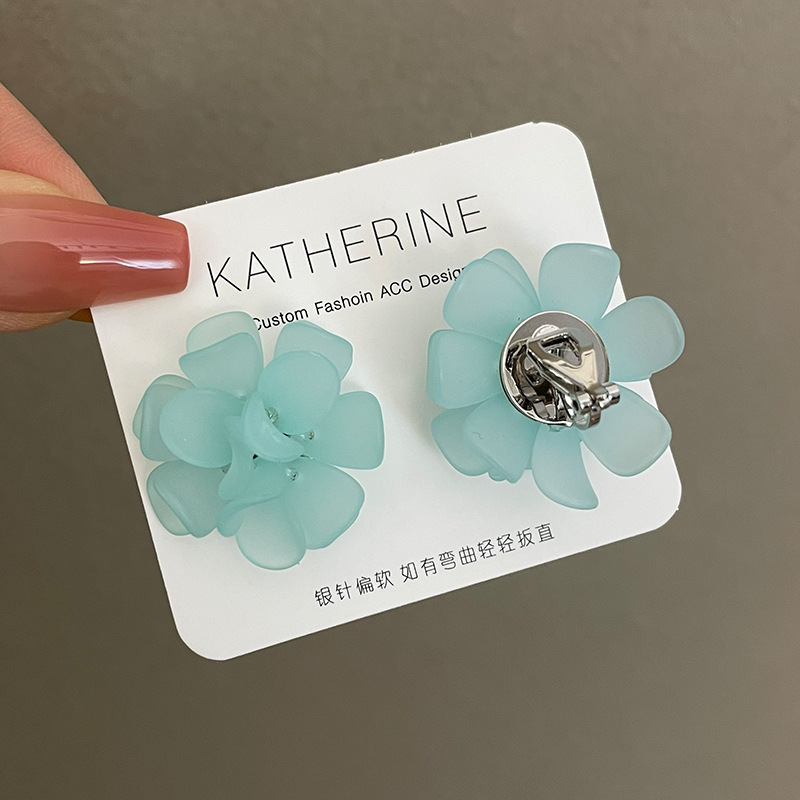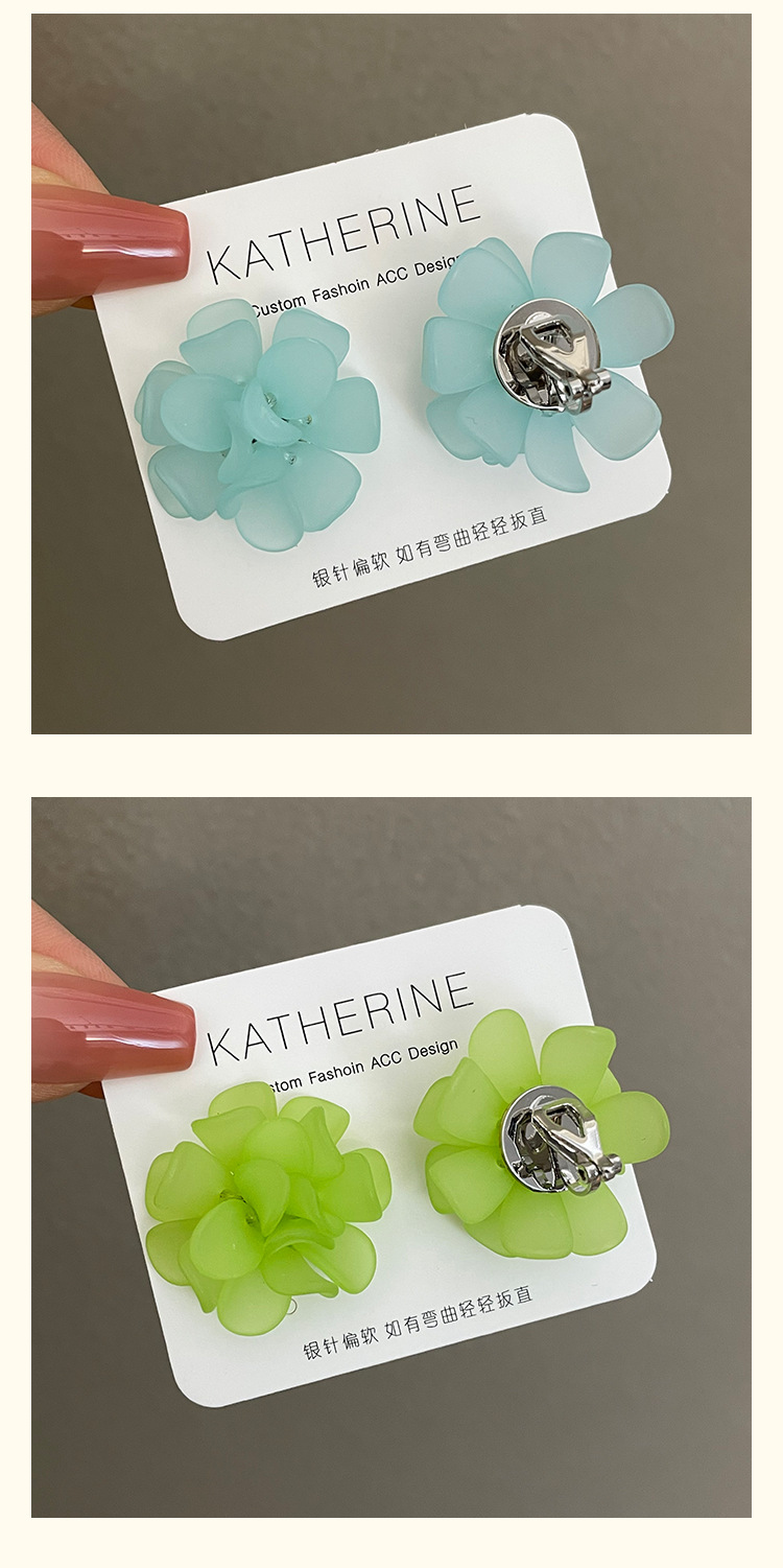 3107 lake green flower ear clip