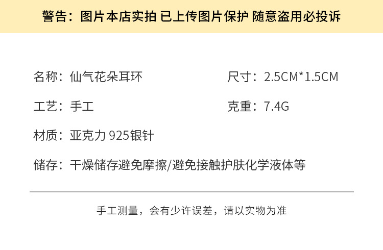 3107 light yellow flower ear clip