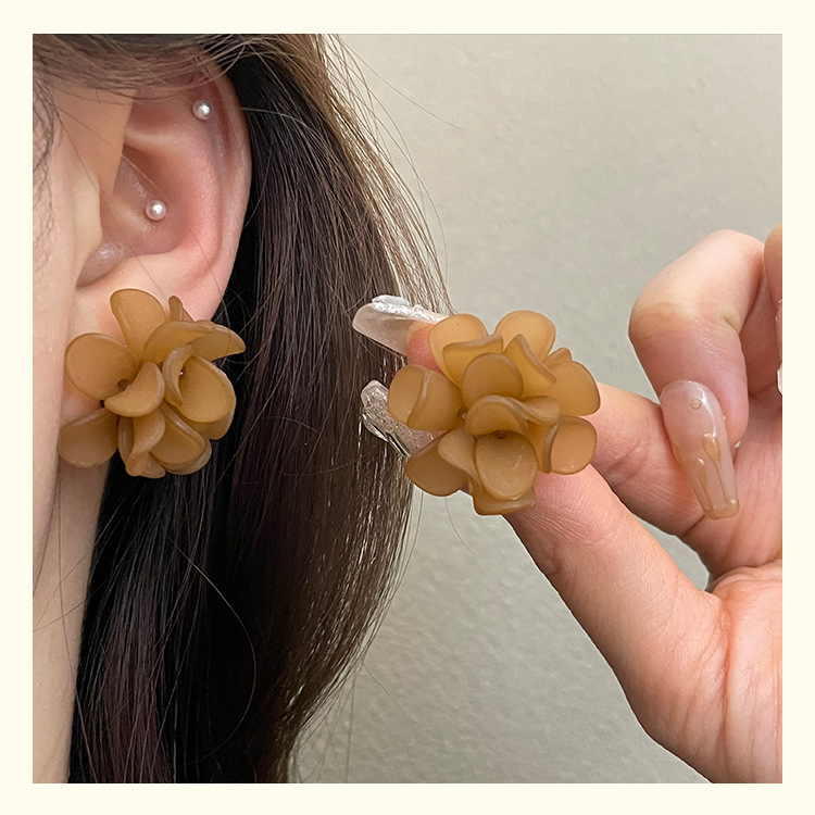 3107 brown flower ear clip