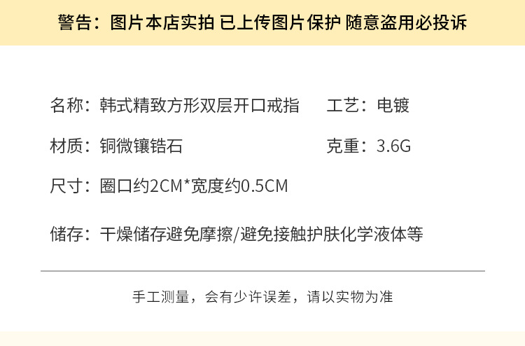 3112 korean niche exquisite square dual layer open-end ring