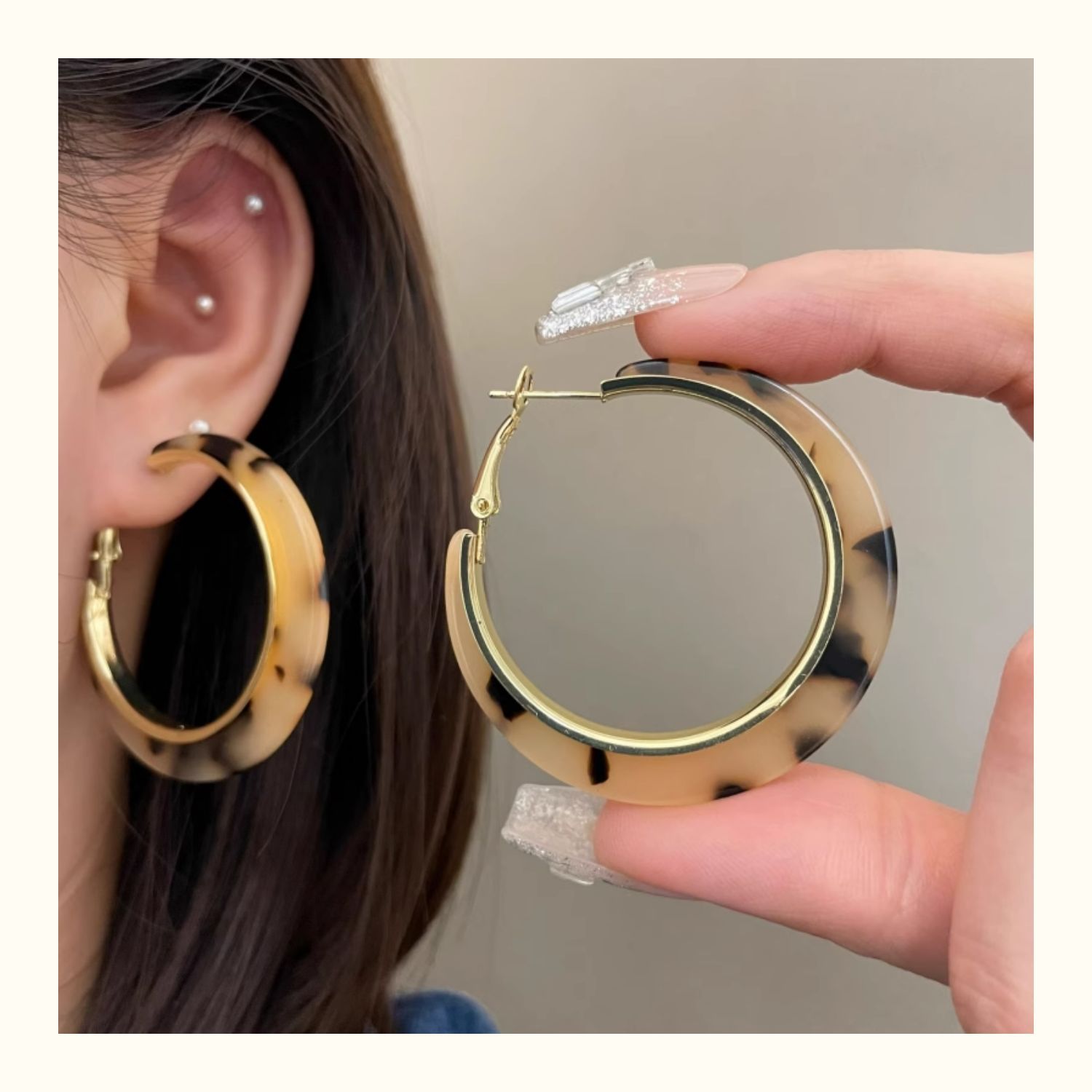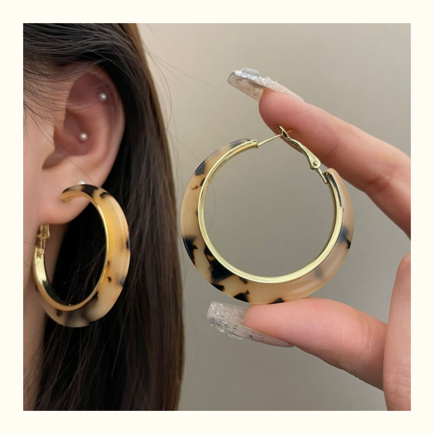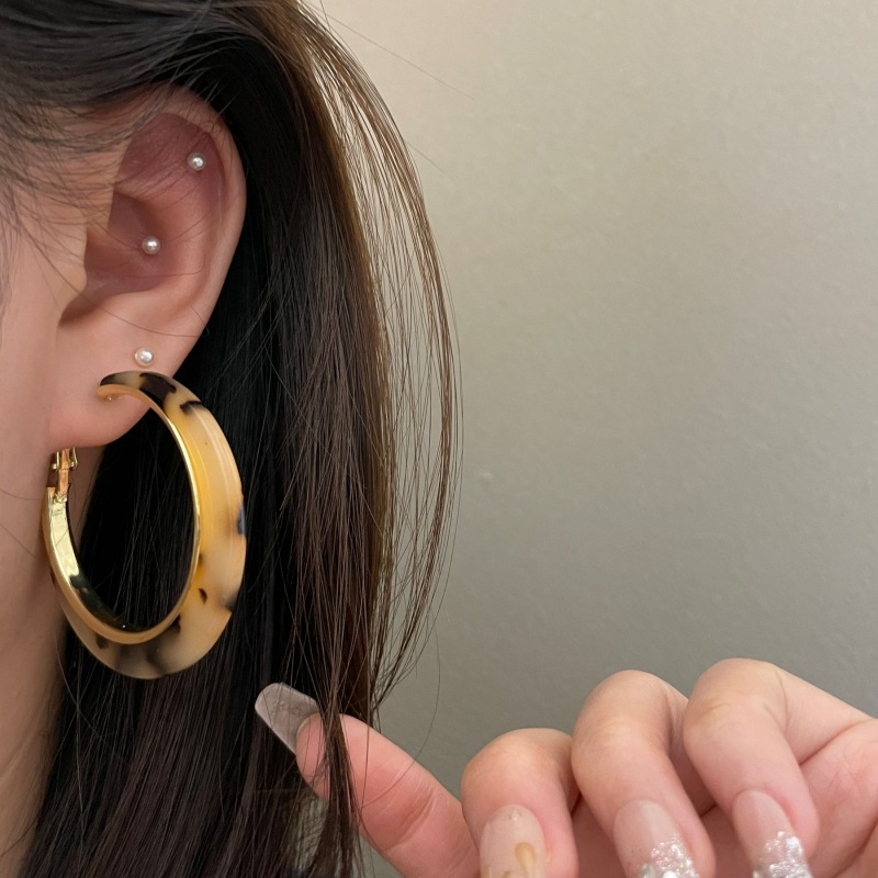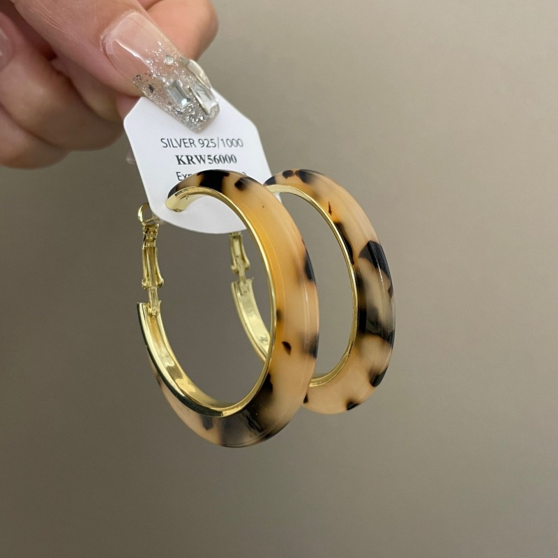 2061 acrylic amber leopard print earrings 925 silver needle