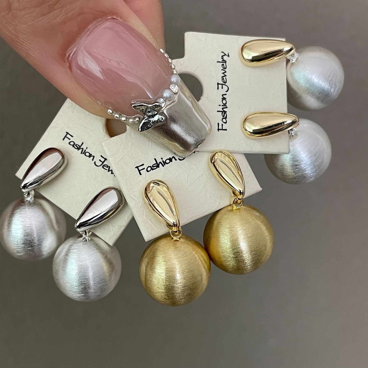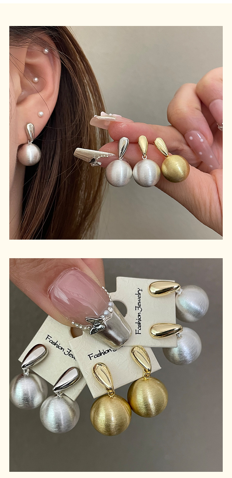 1914 gold and silver water drop wire drawing ball ball 925 silver needle