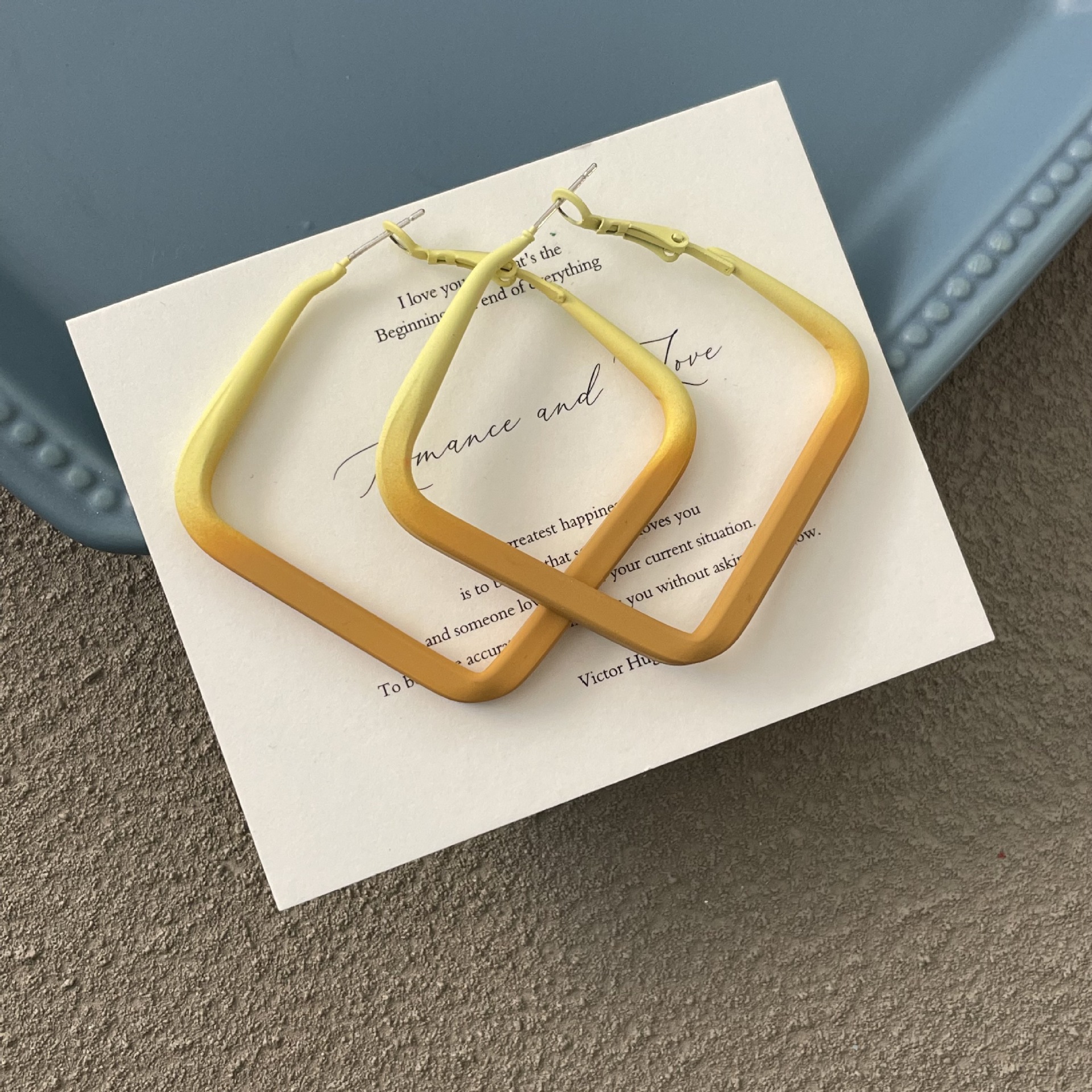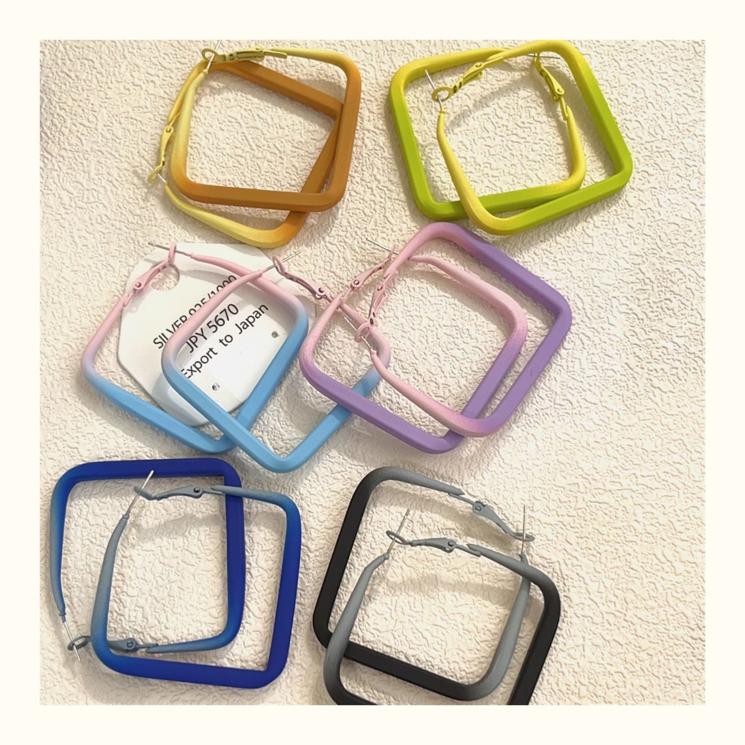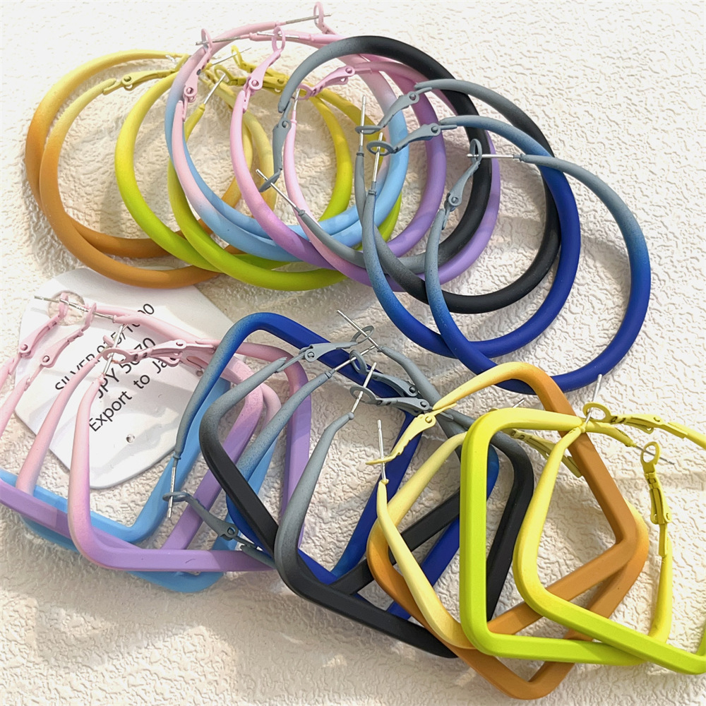 0696 khaki gradient paint frame ear ring 925 silver needle
