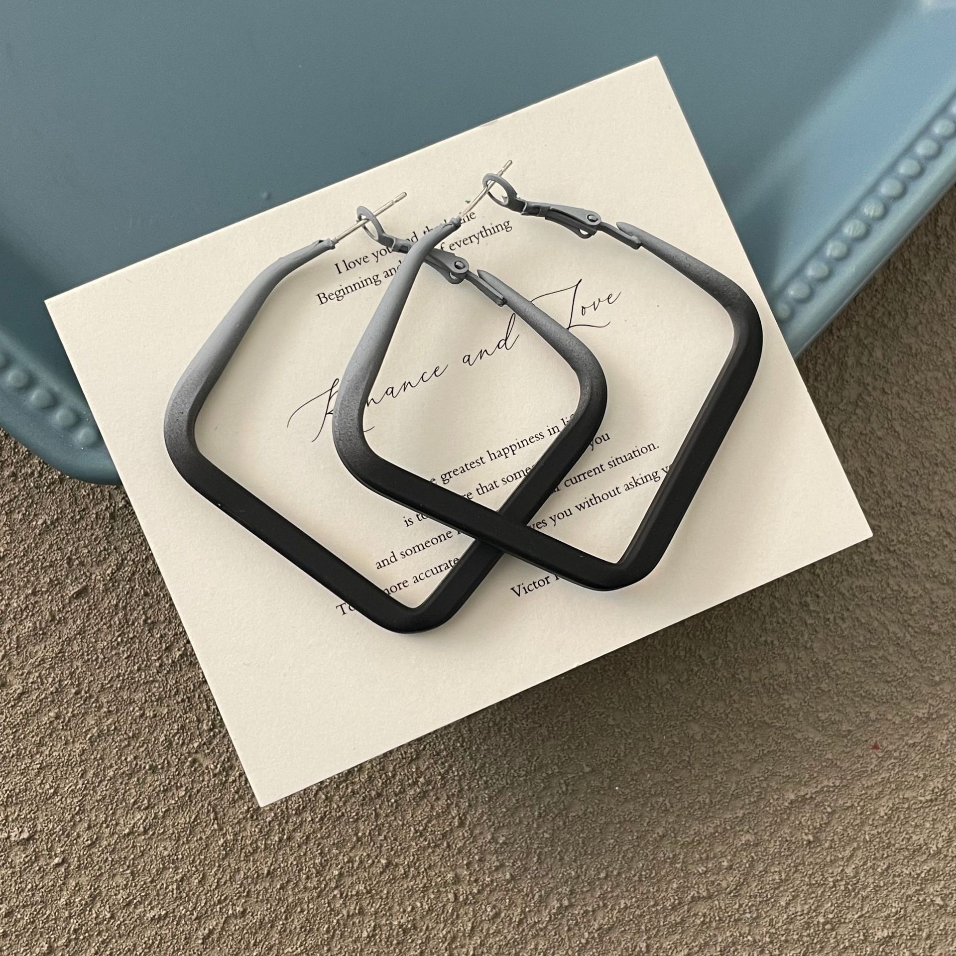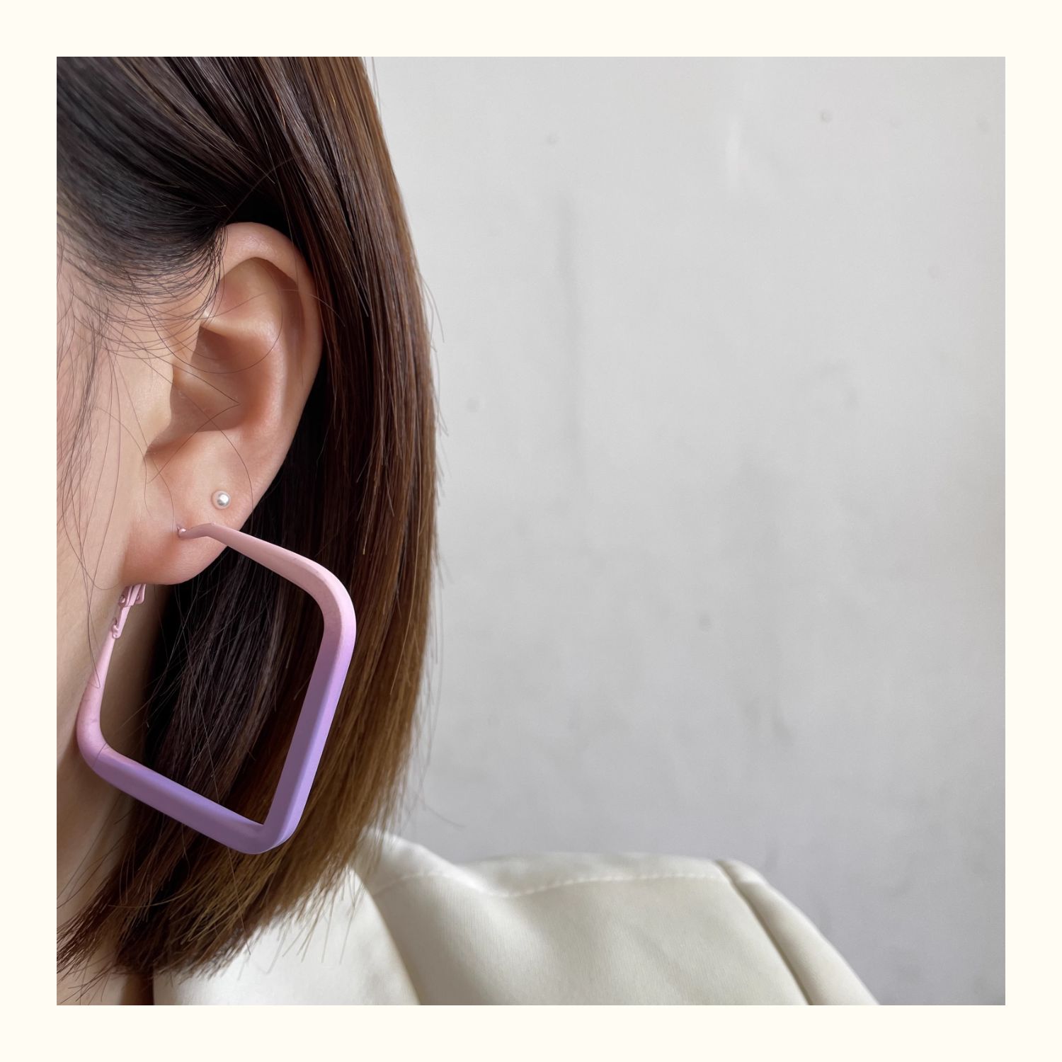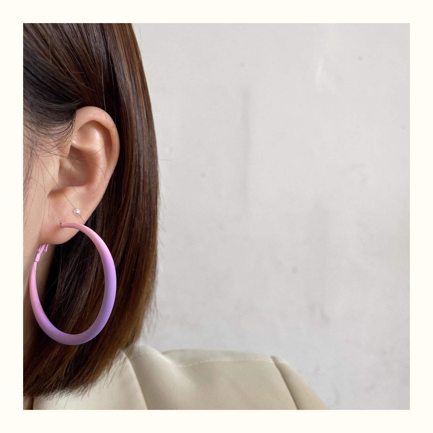 0696 khaki gradient paint frame ear ring 925 silver needle