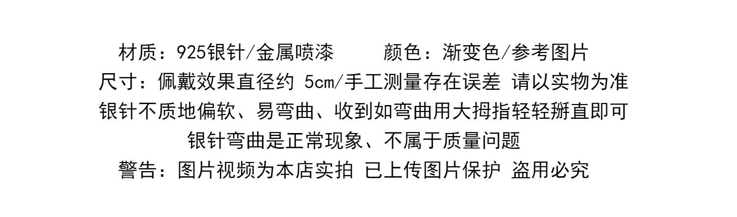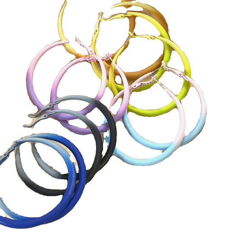 0607 gradient pink purple spray paint round earrings 925 silver needle