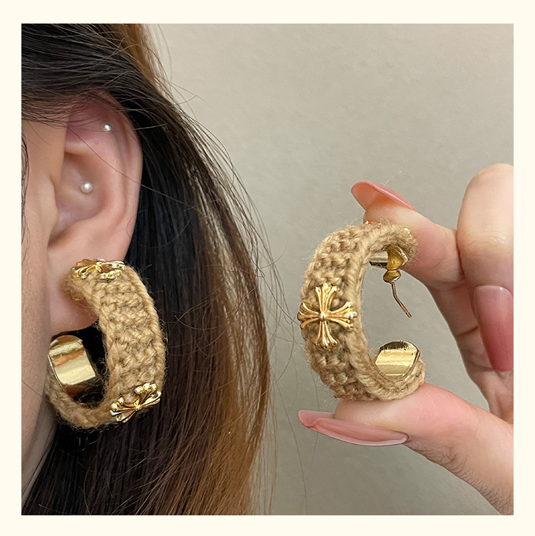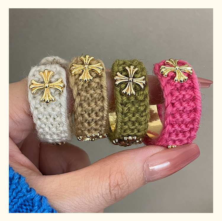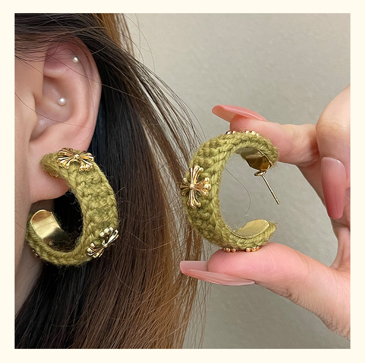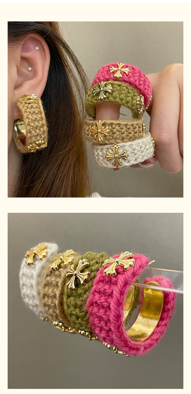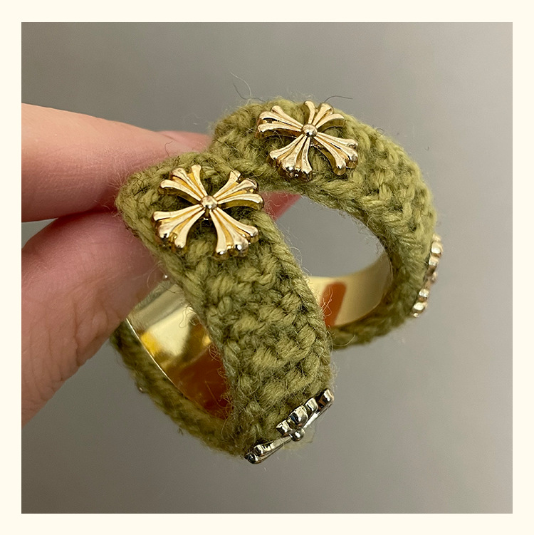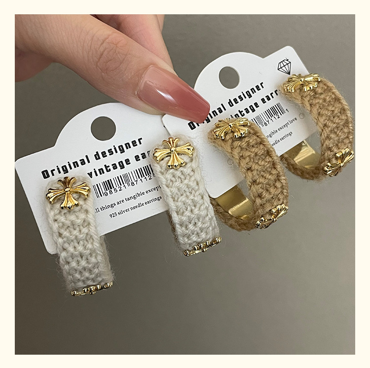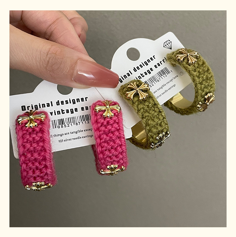 3915 khaki wool cross 925 silver needle