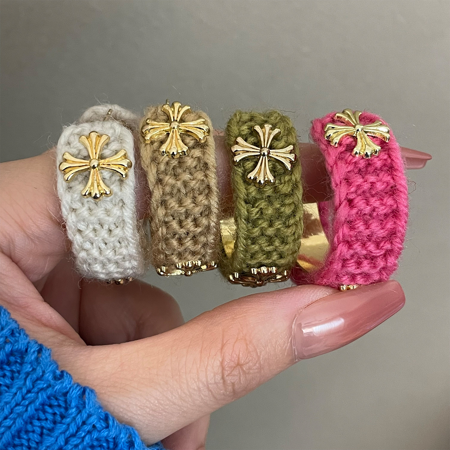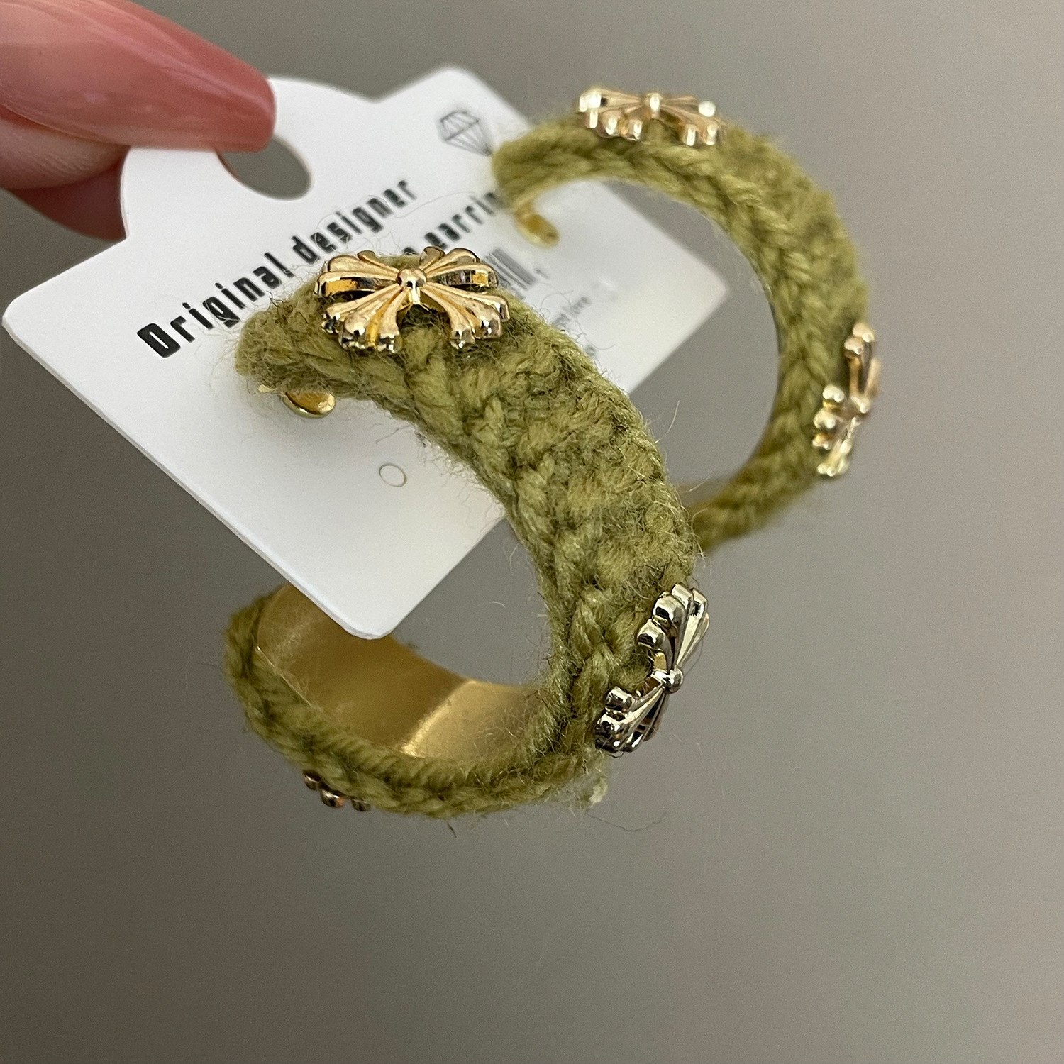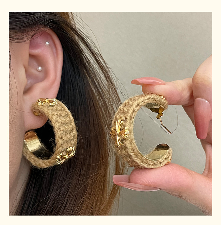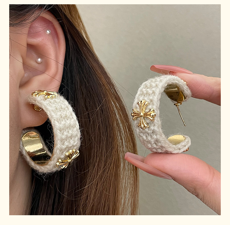 3915 khaki wool cross 925 silver needle