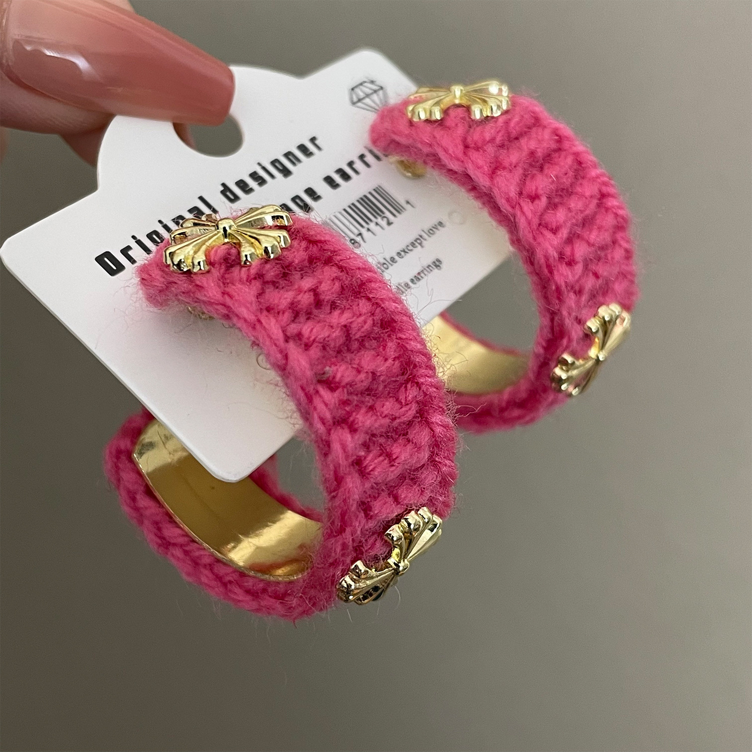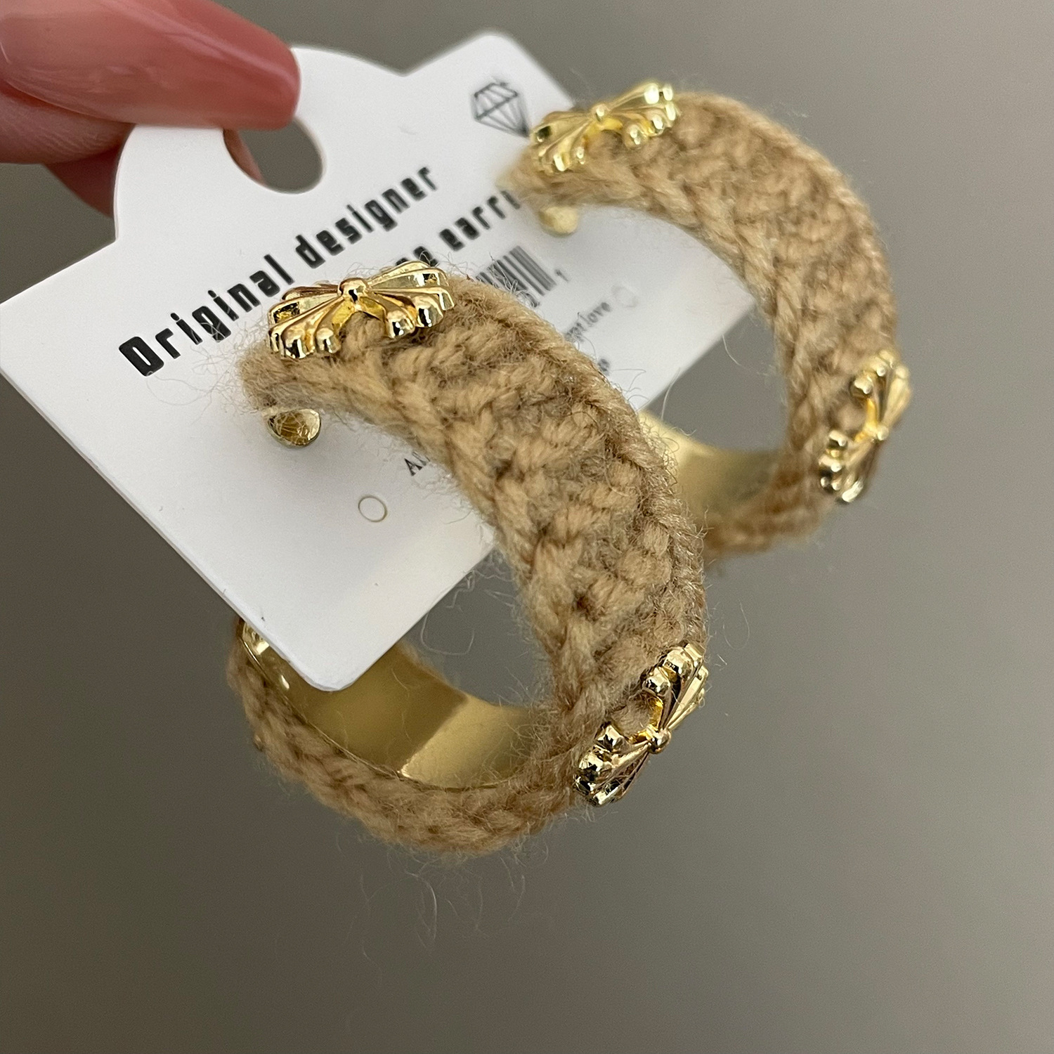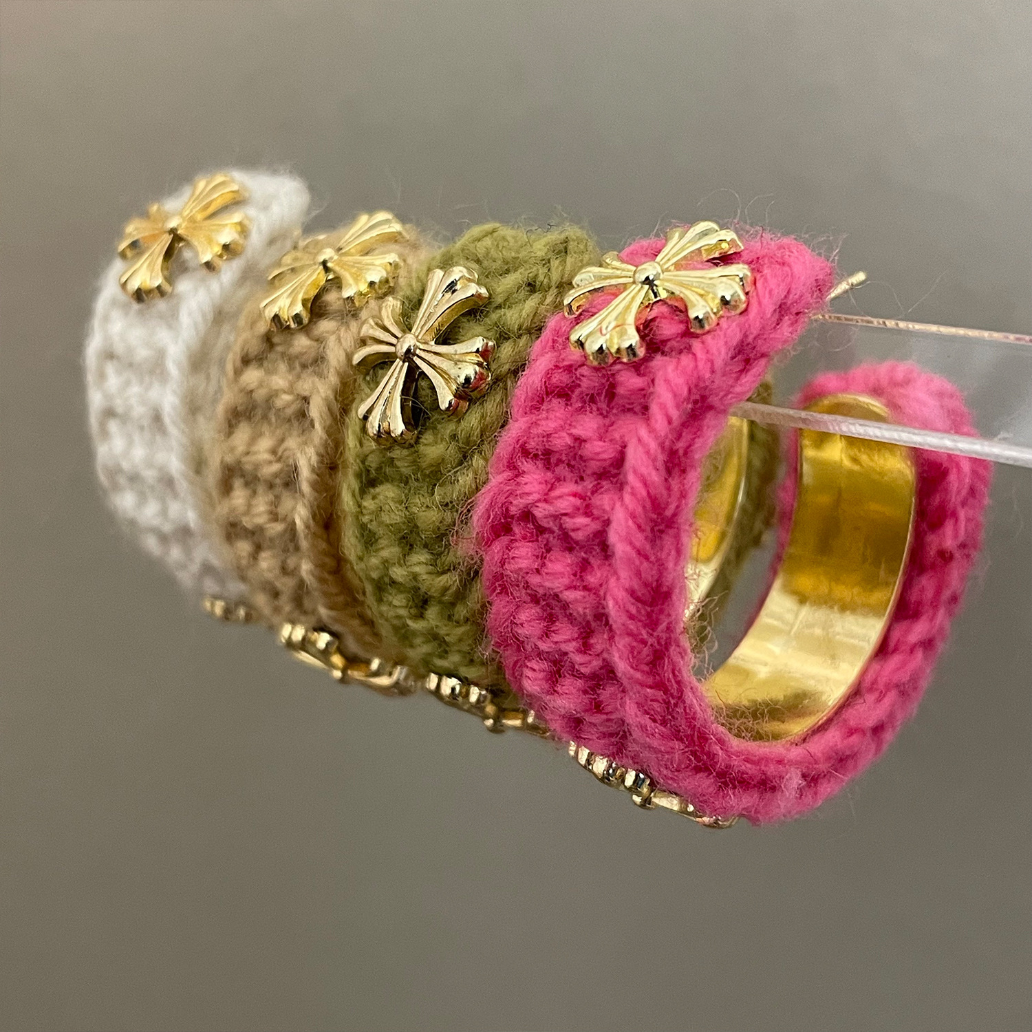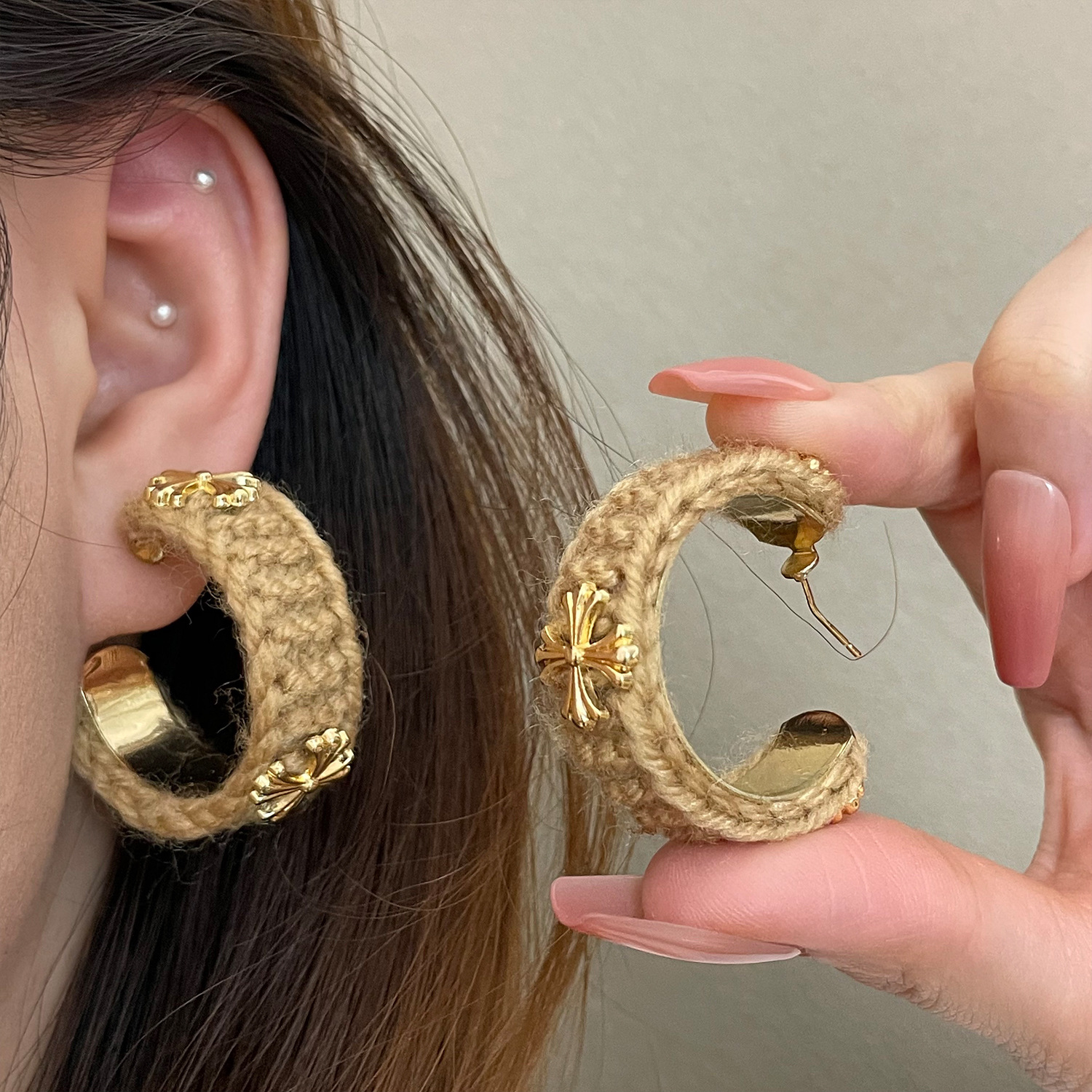 3915 khaki wool cross 925 silver needle