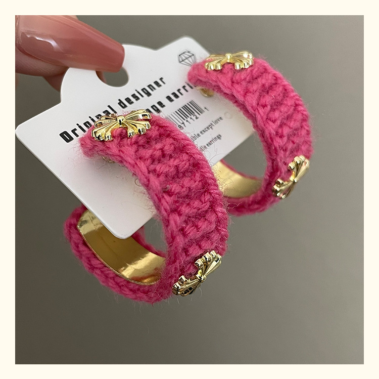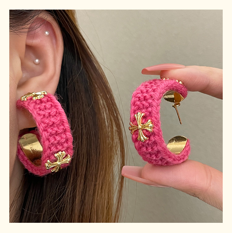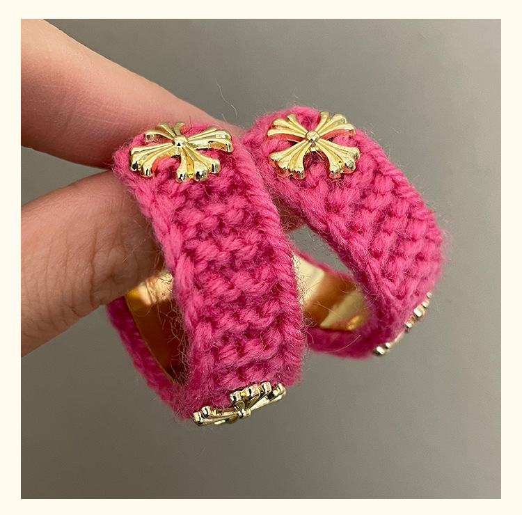 3915 rose red wool cross 925 silver needle