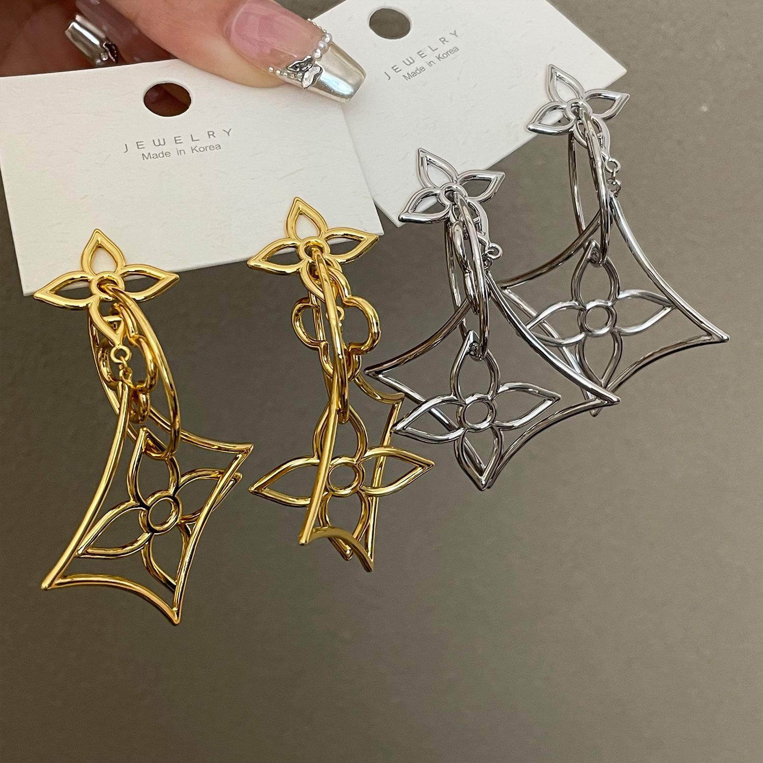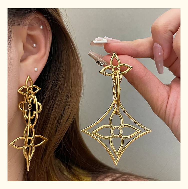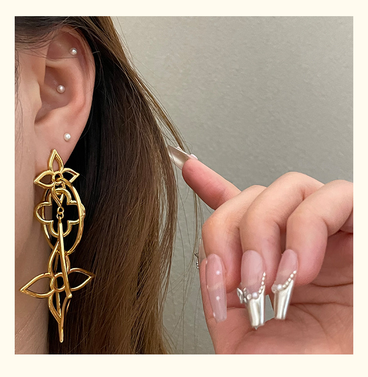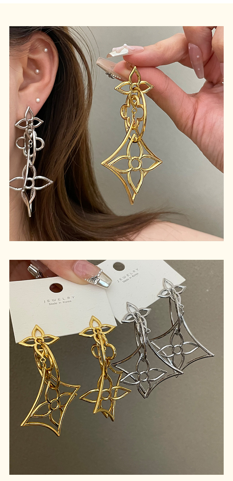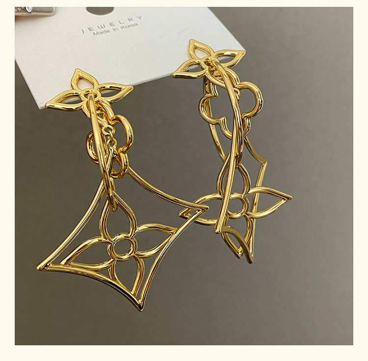 3784 golden hollow copper wire flower 925 silver needle