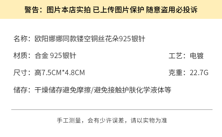 3784 silver hollow copper wire flower 925 silver needle