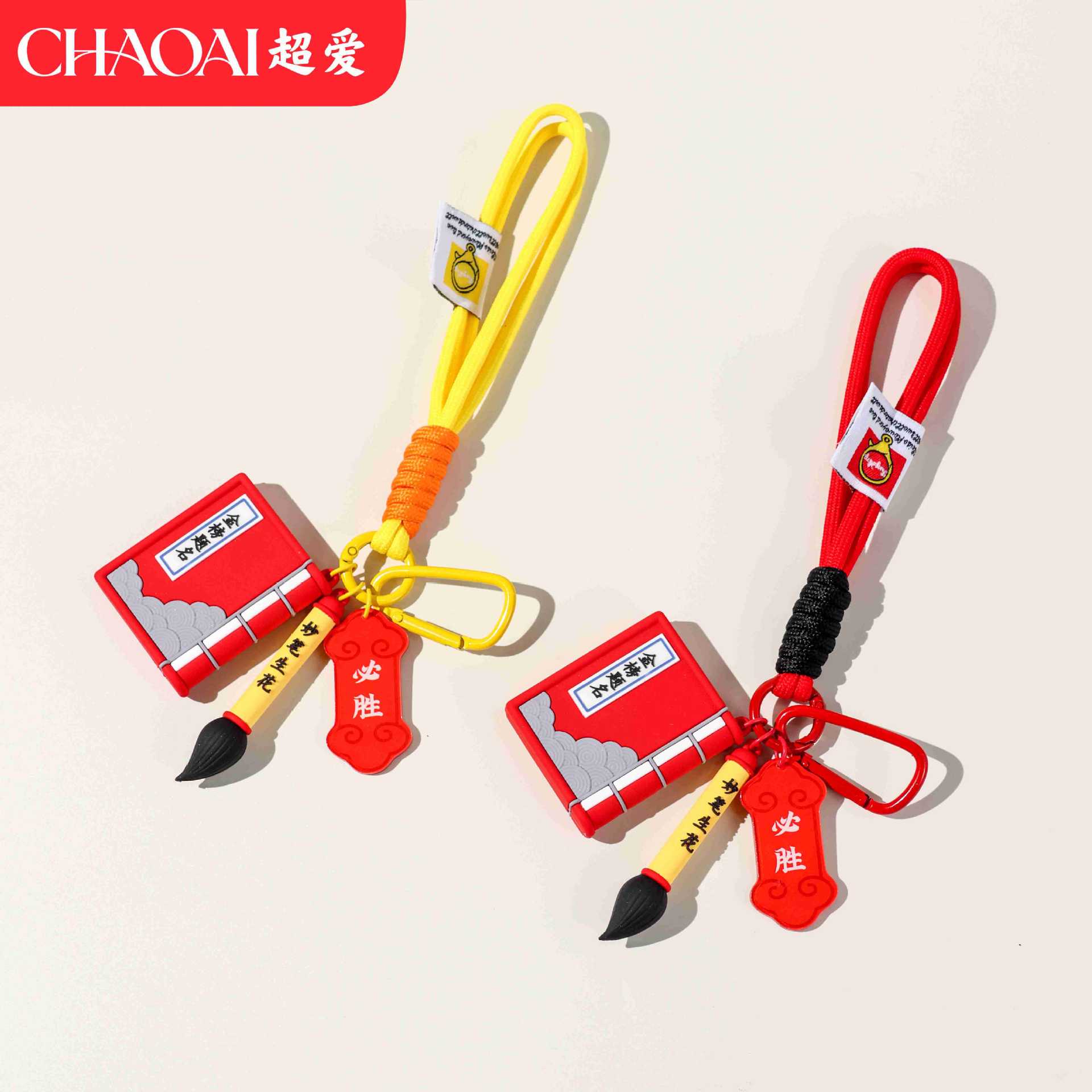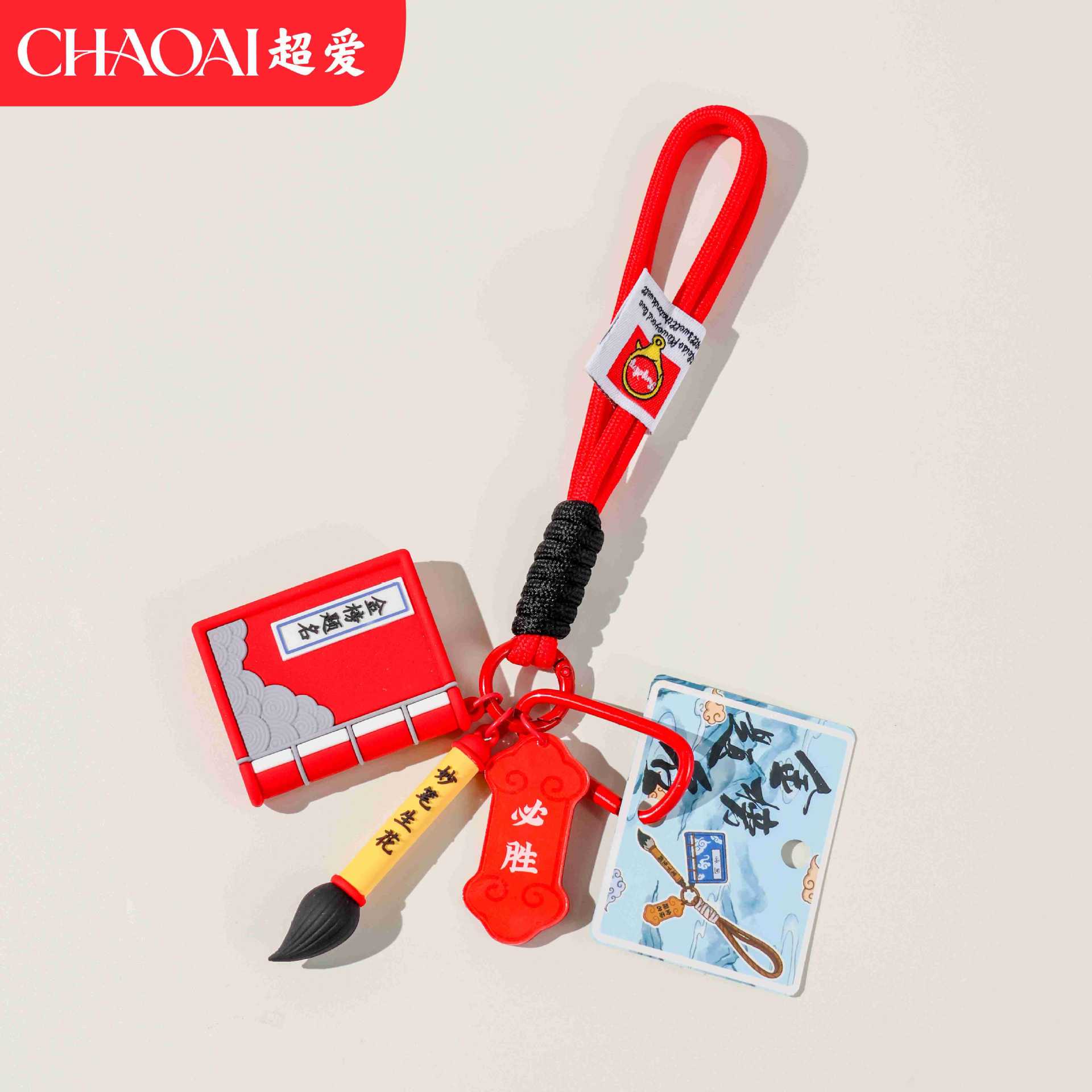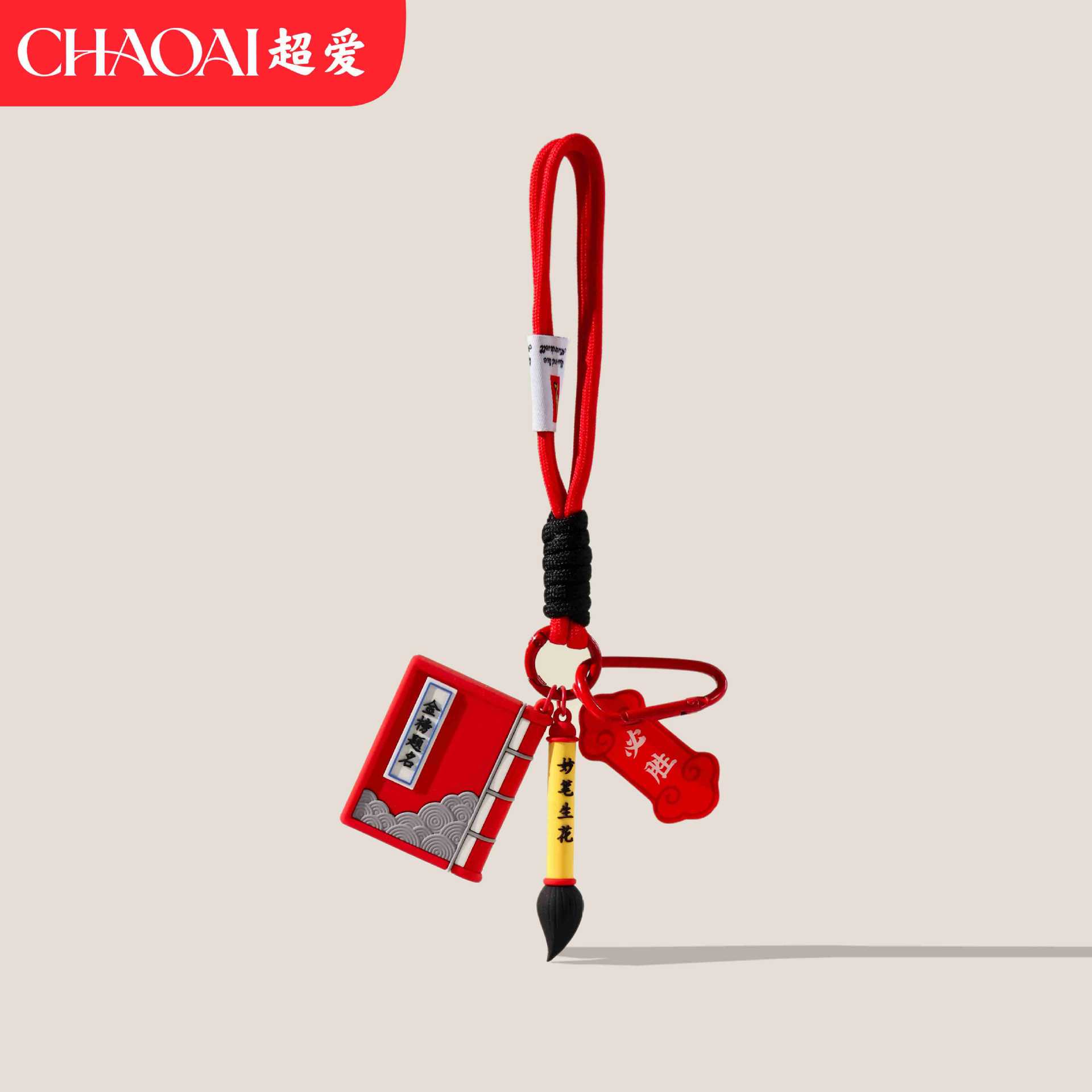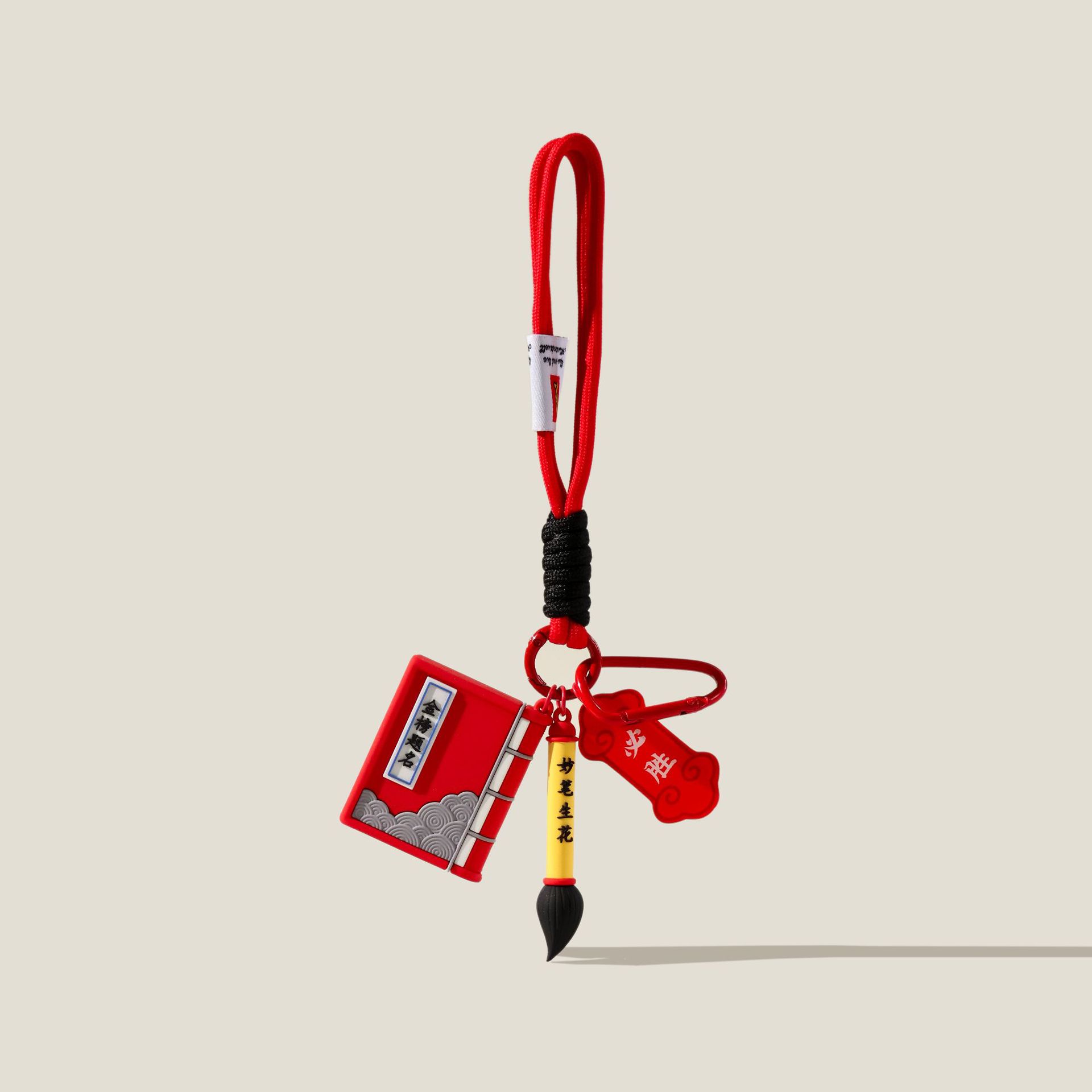 original book and brush double blessings pendant – red double cords