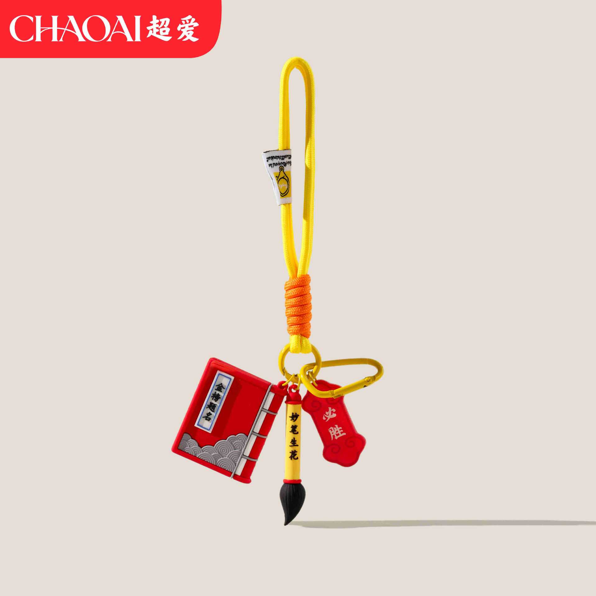 original book and brush double blessings pendant – yellow double cord