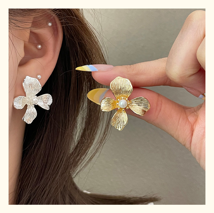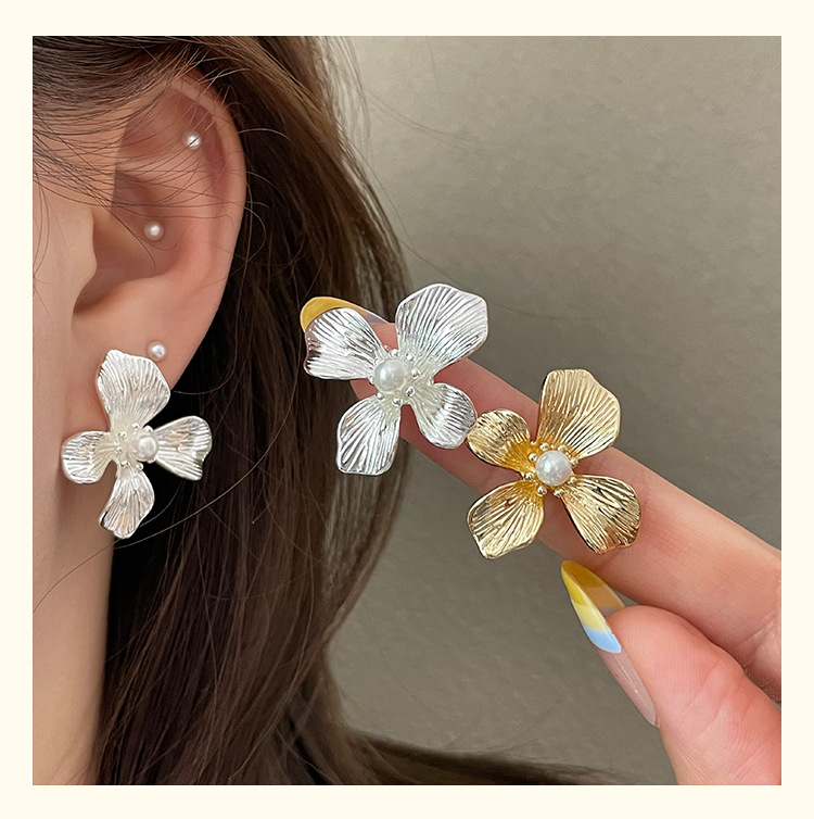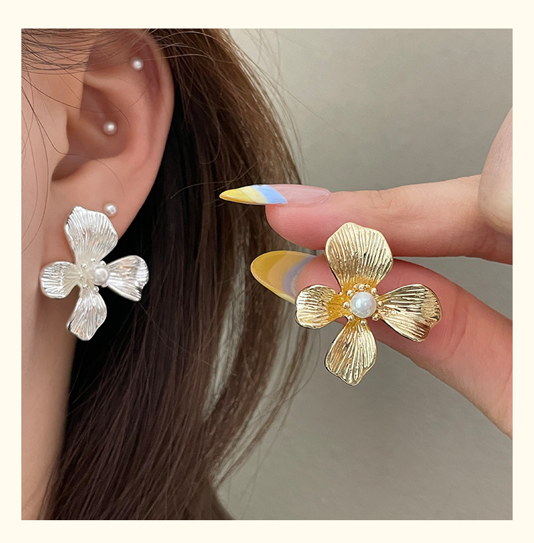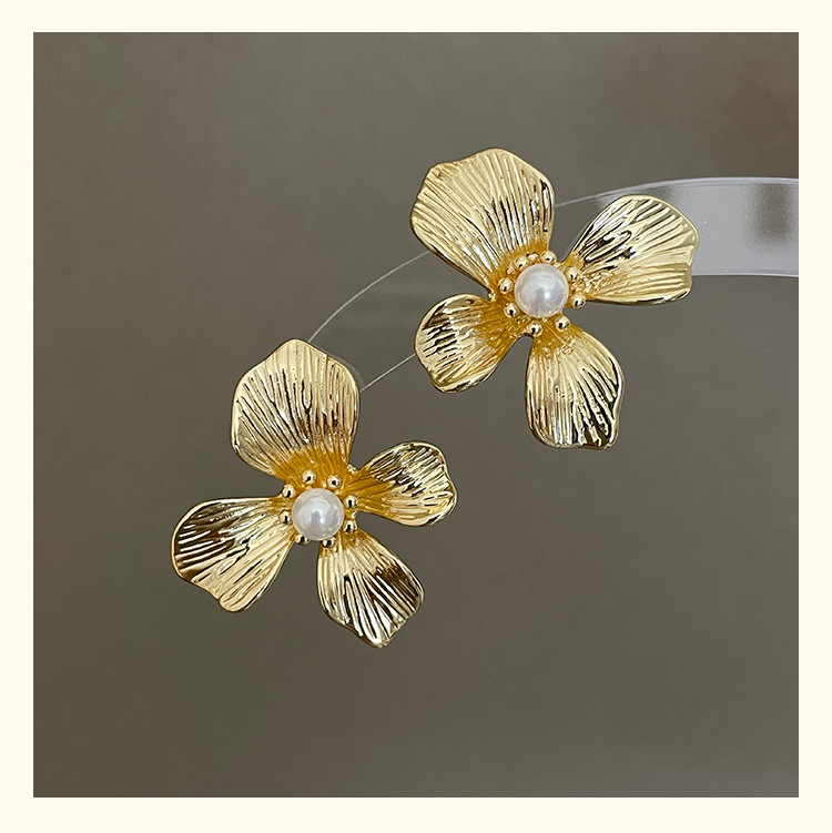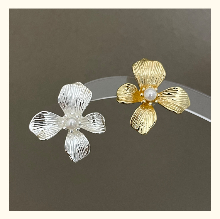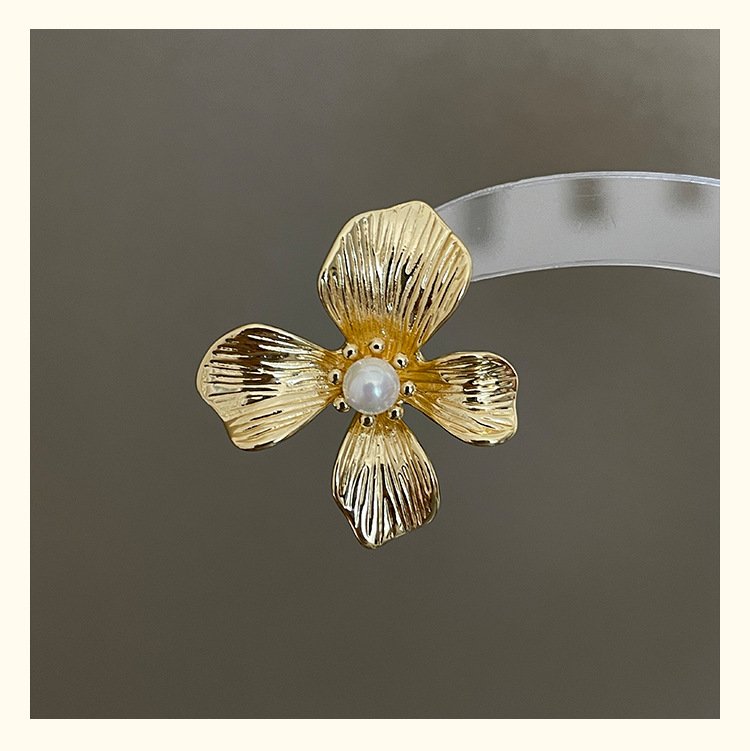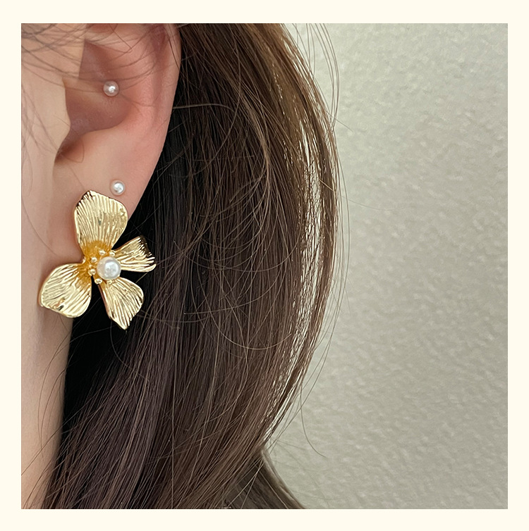 3305 gold-colored metal pearl center 925 silver needle earrings