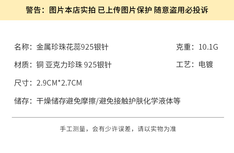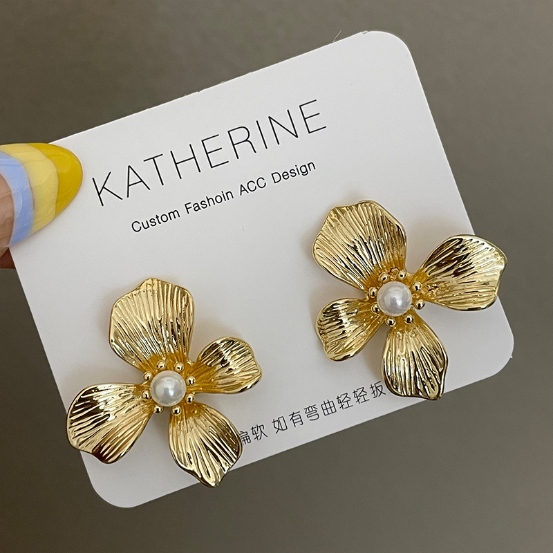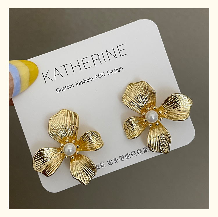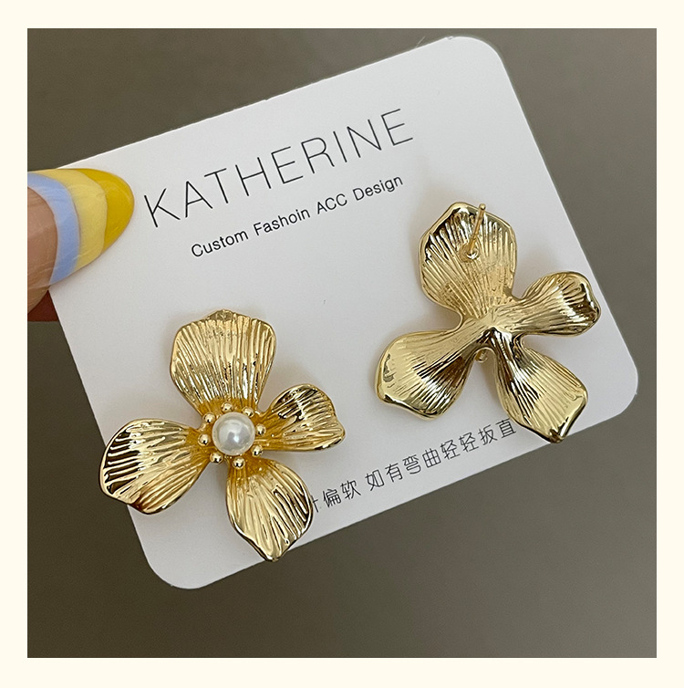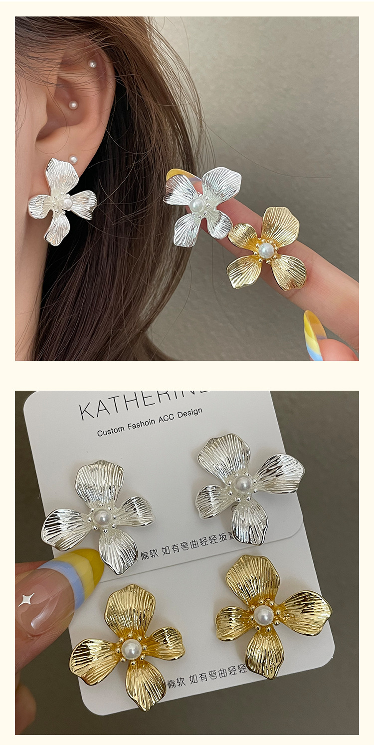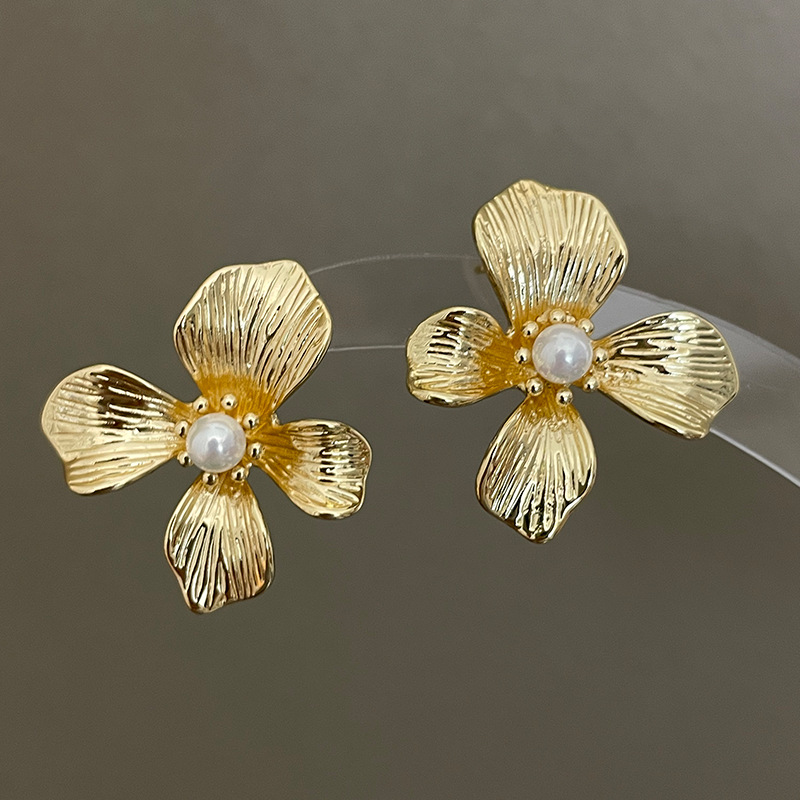 3305 gold-colored metal pearl center 925 silver needle earrings