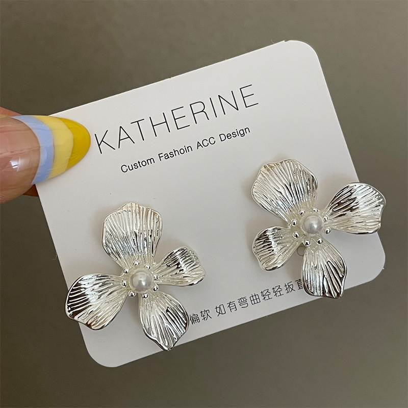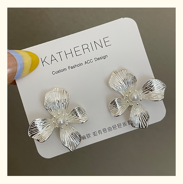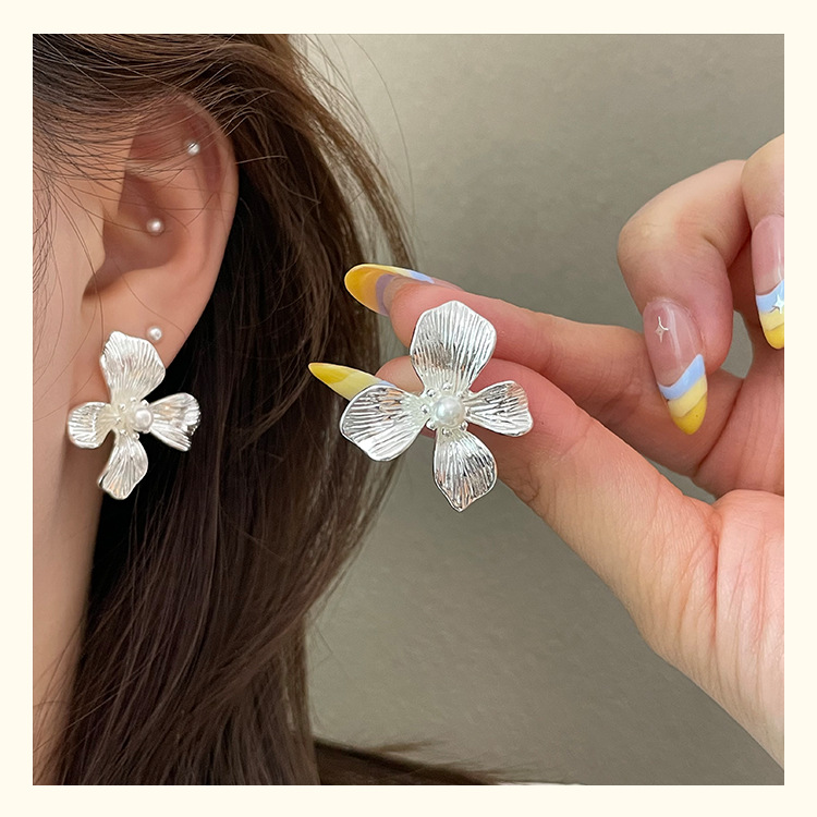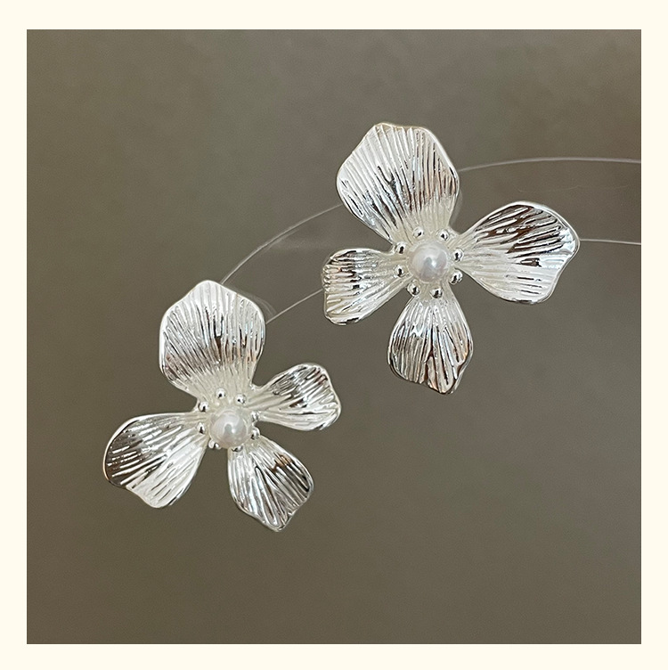 3305 silver metallic pearl center 925 silver needle earrings