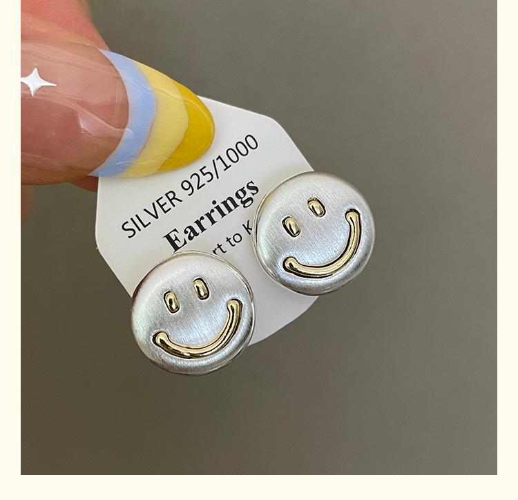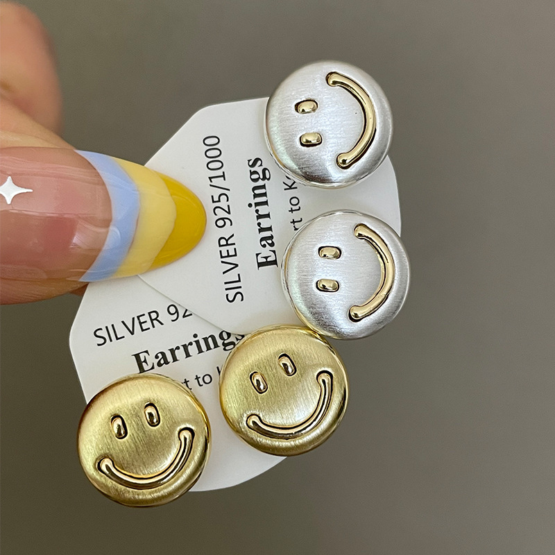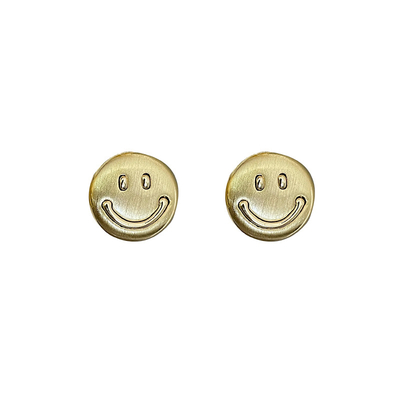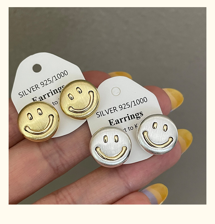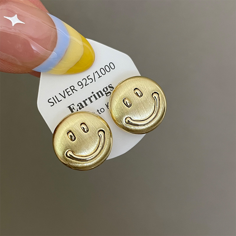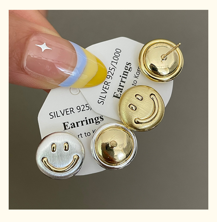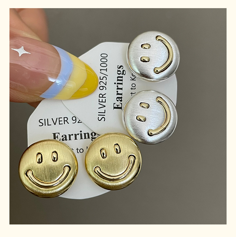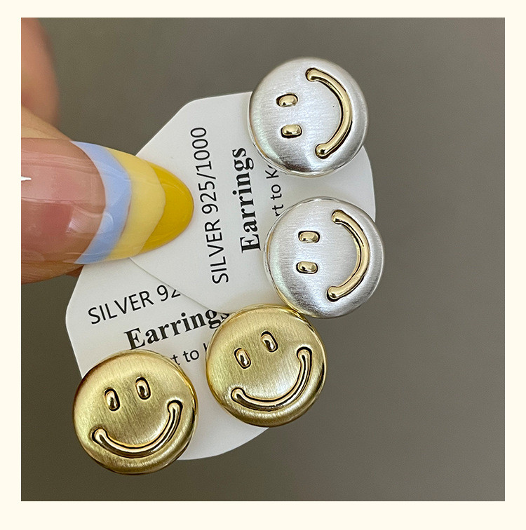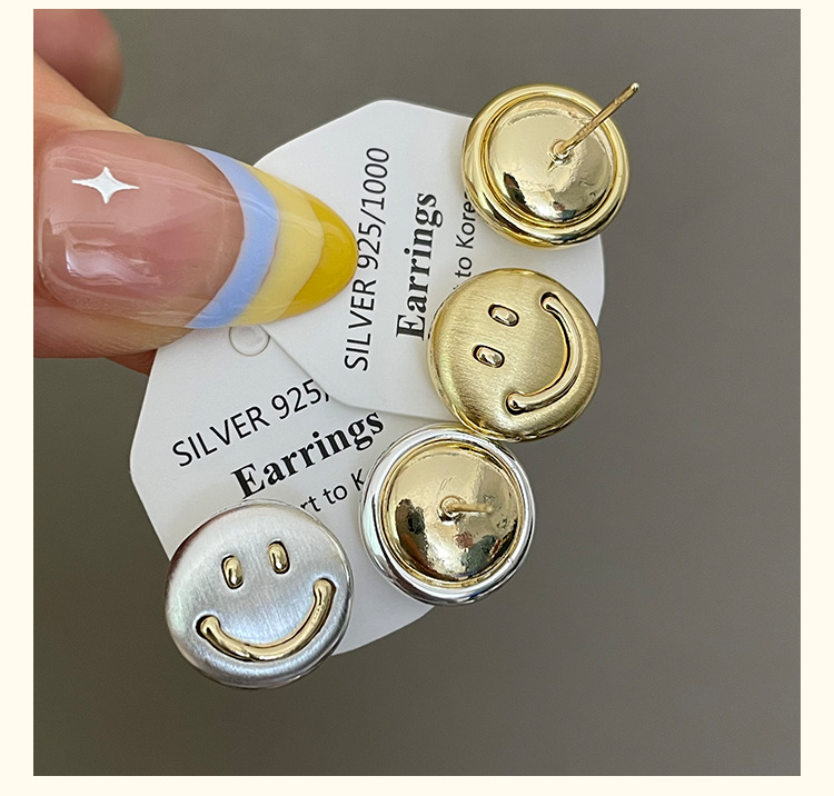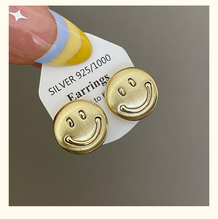 3281 metal brushed smiling face gold 925 silver stud earrings