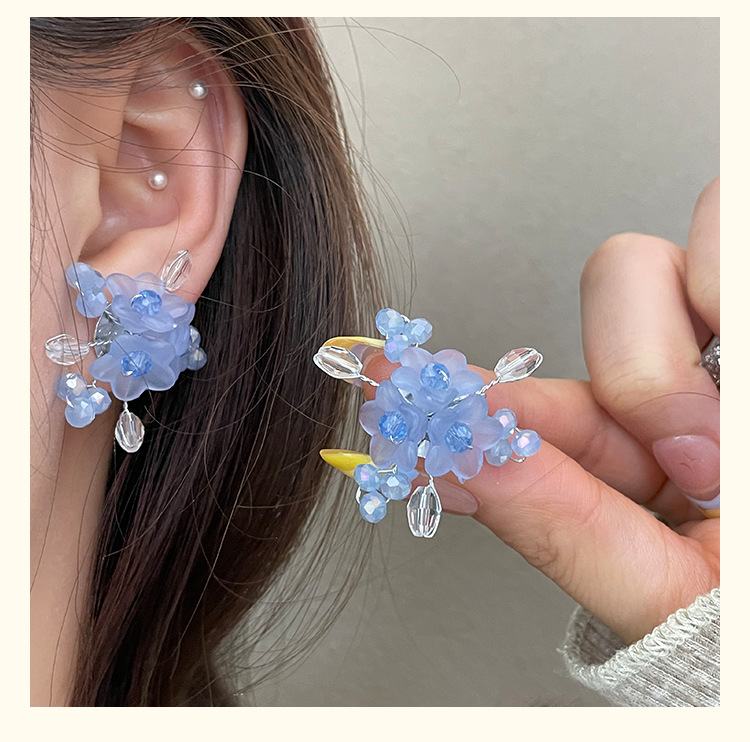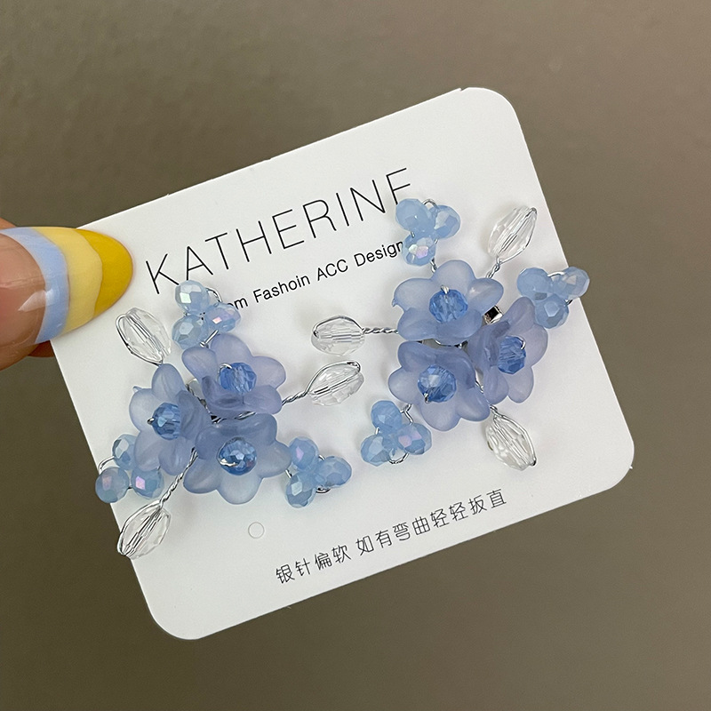 3197 sea salt blue 925 silver needle earrings