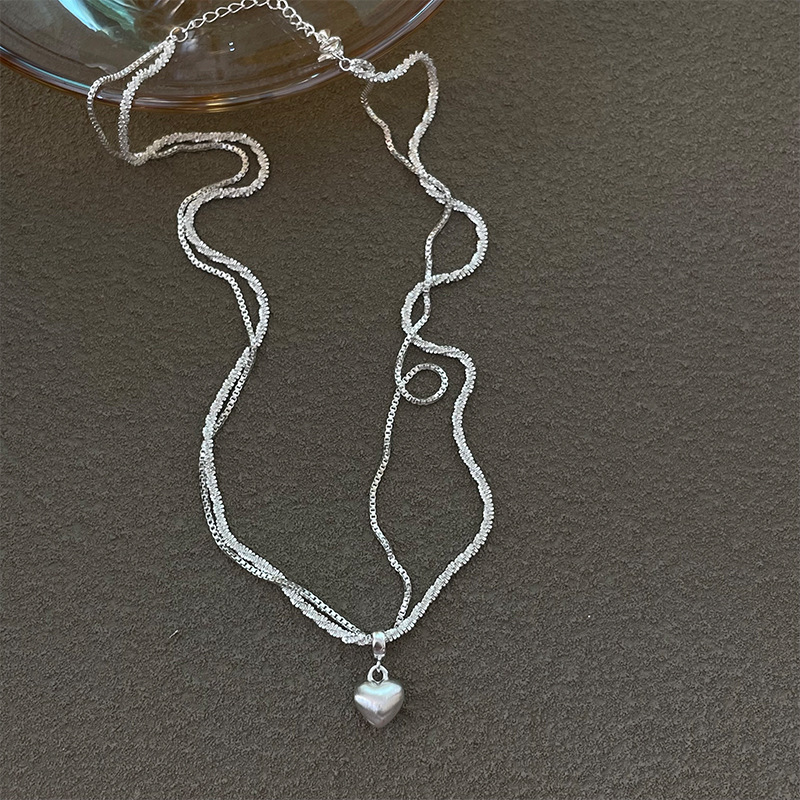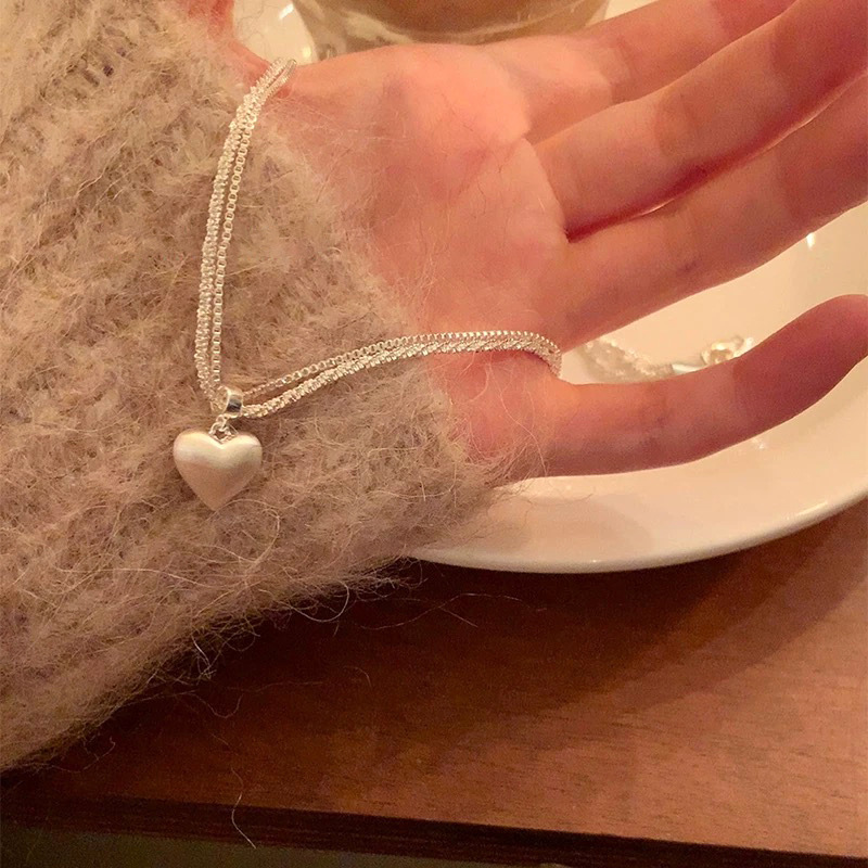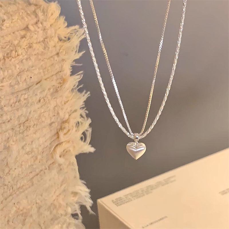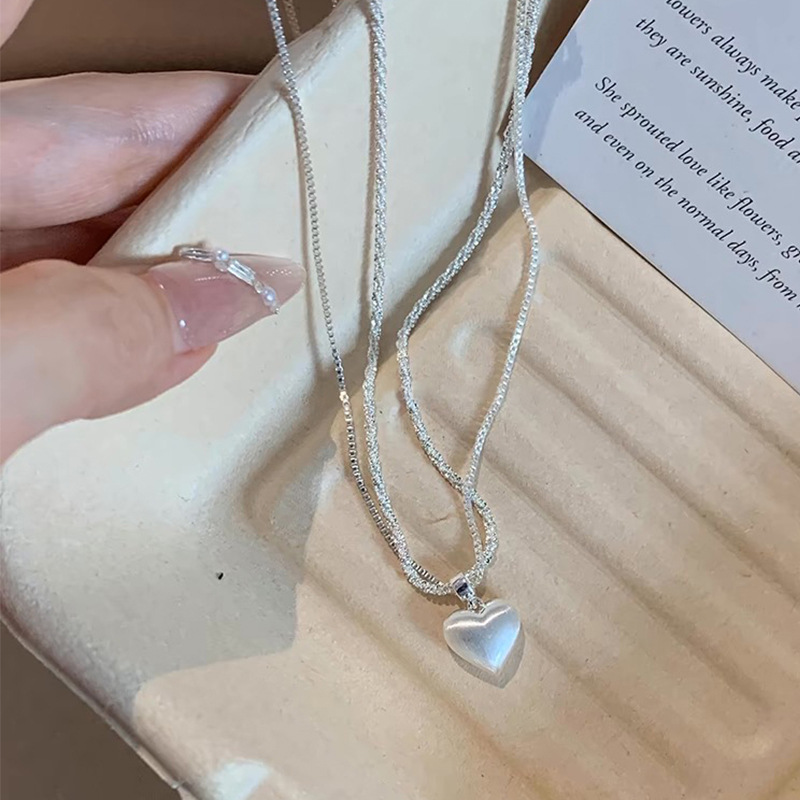 3165 double-layer brushed love pendant clavicle chain