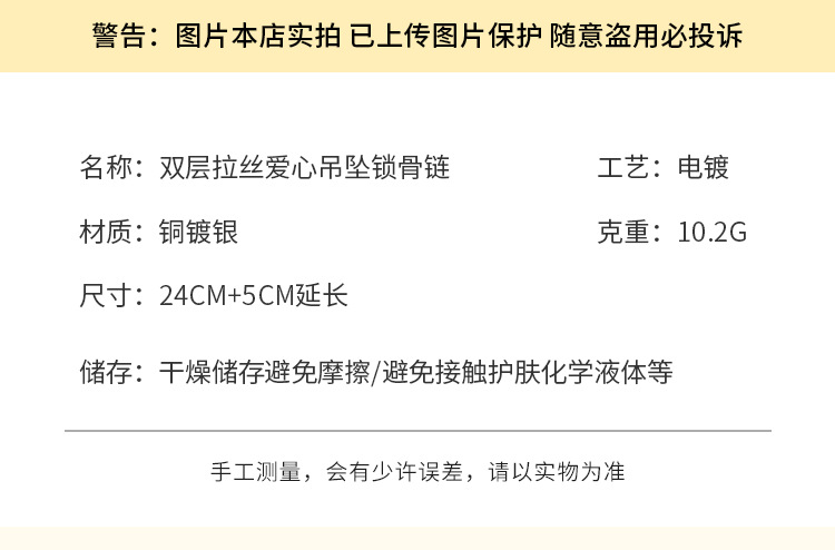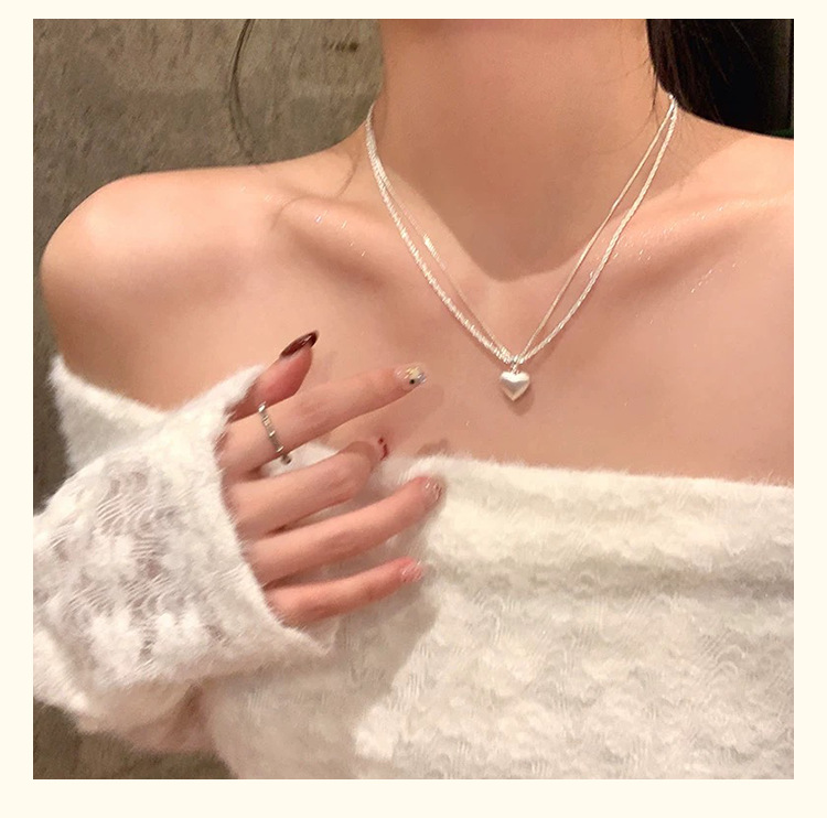 color: 3165 double-layer brushed love pendant clavicle chain