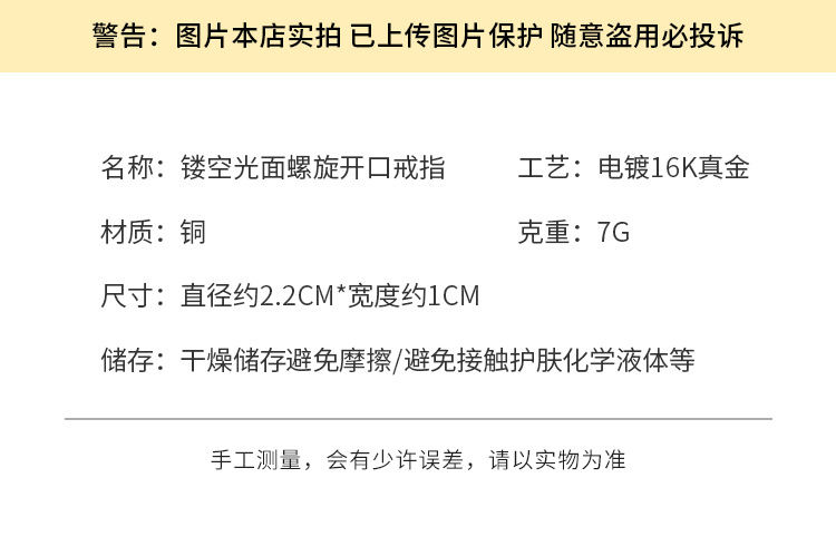 color: 3113 hollow glossy spiral open ring