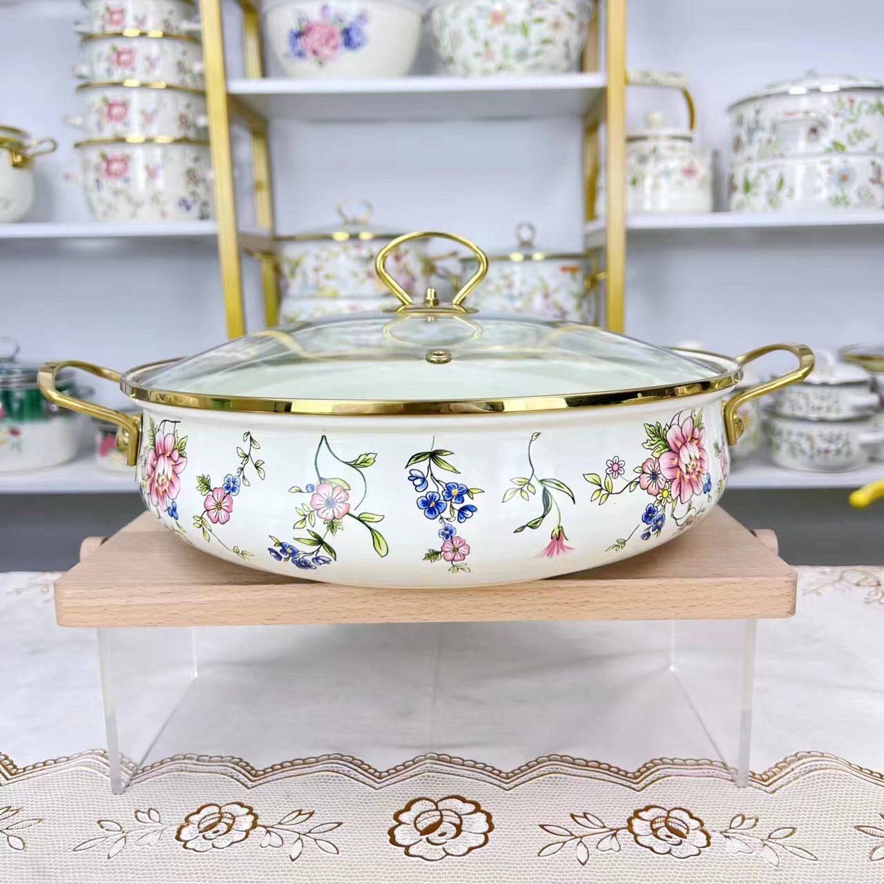 extra-thick gold 30cm birds and flowers seafood pot 5.5l