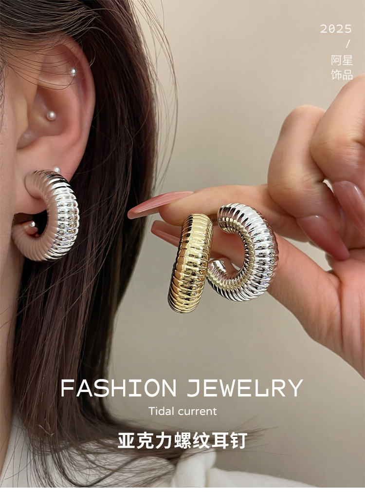 3020 acrylic gold threaded steel pin stud earrings