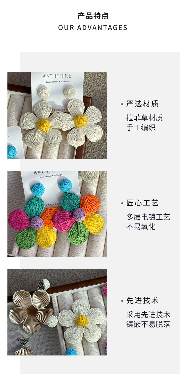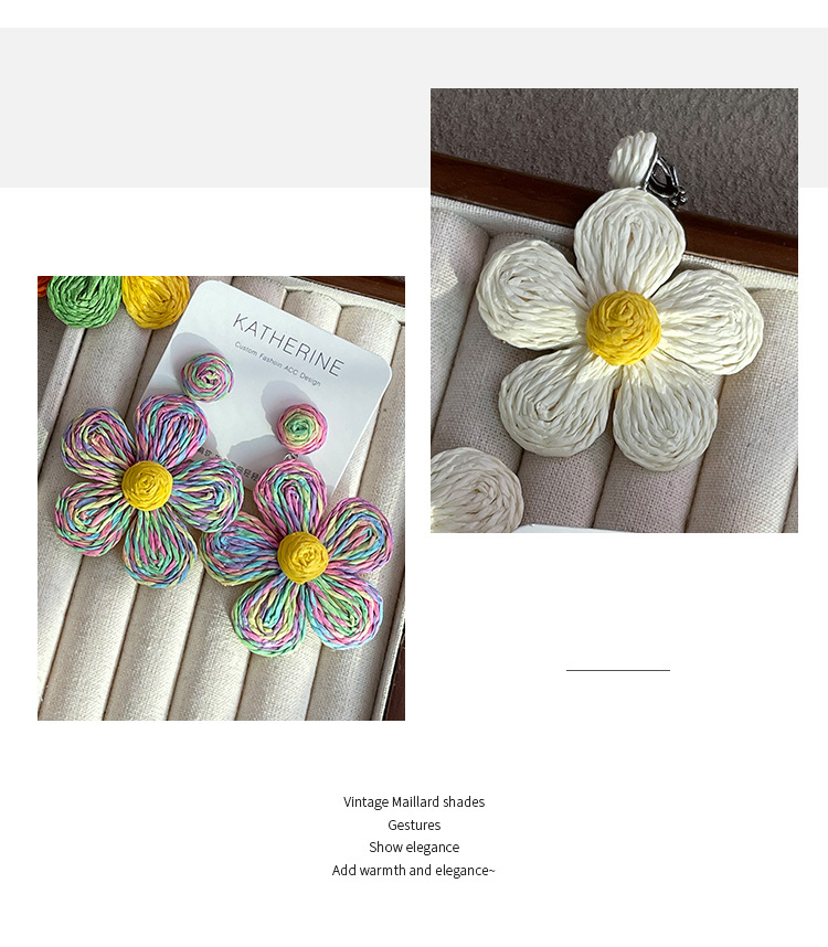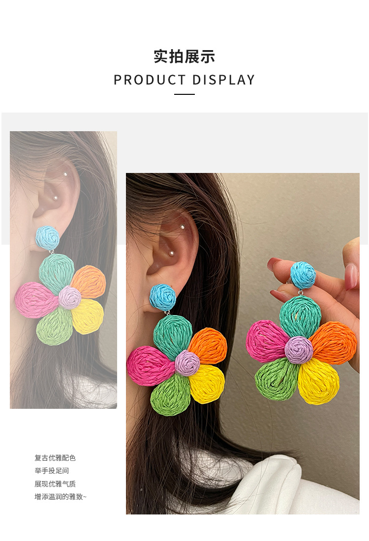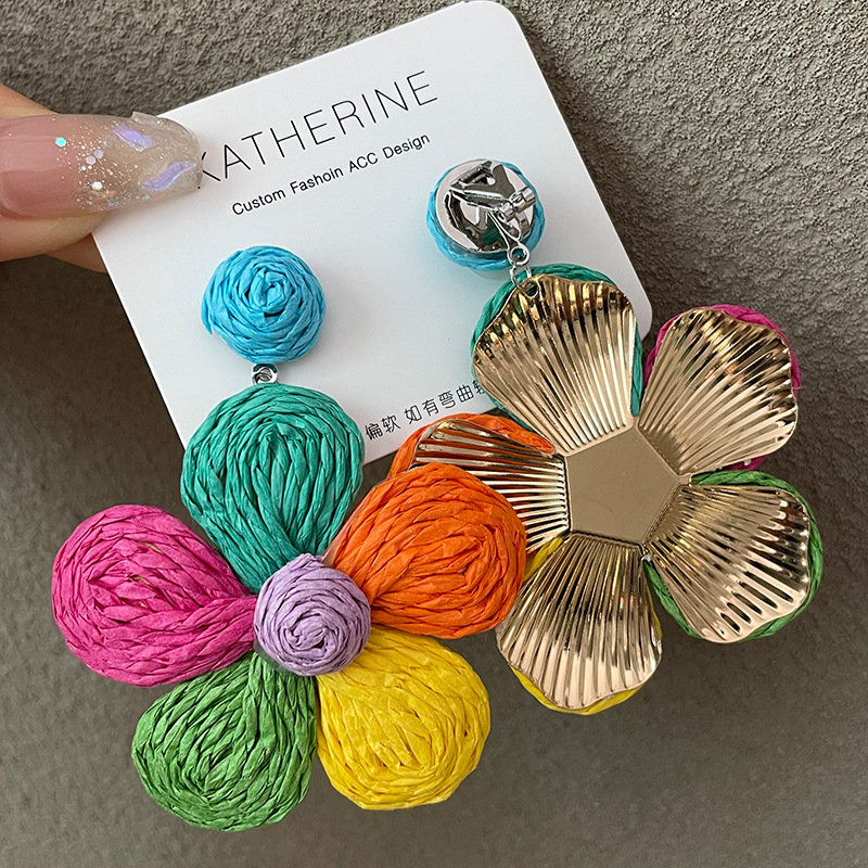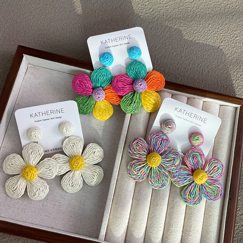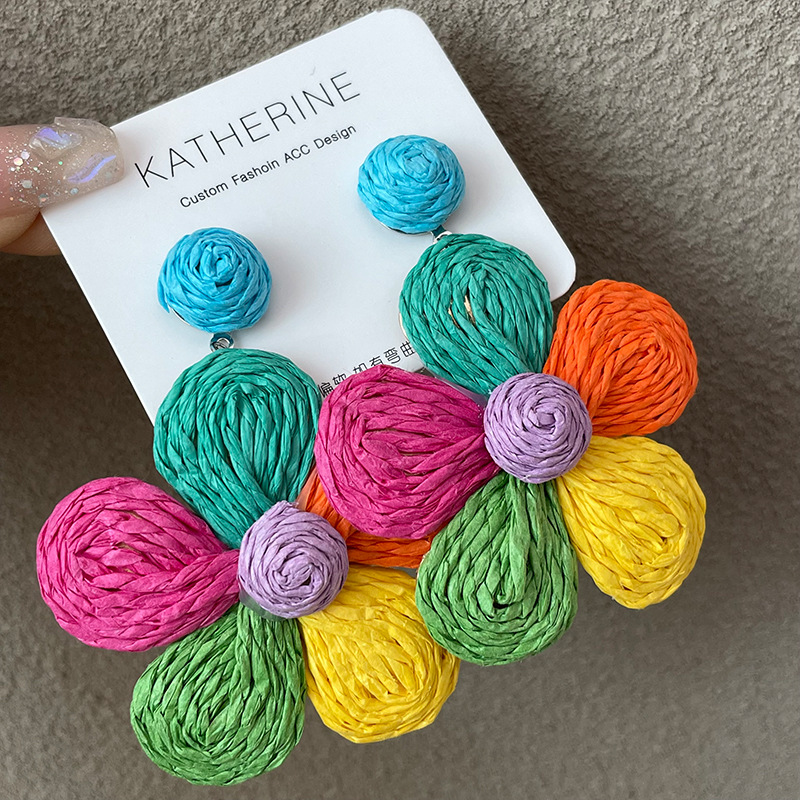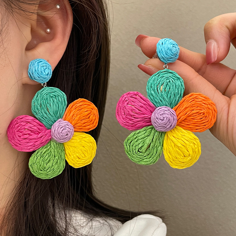 3005 summer dopamine straw flower color earrings 1