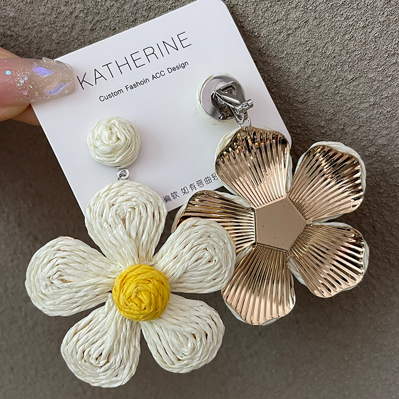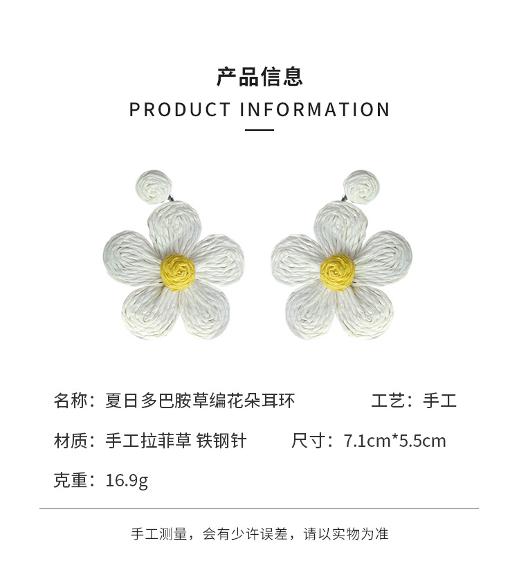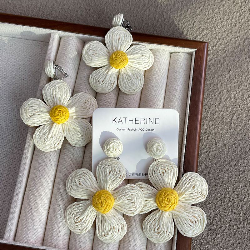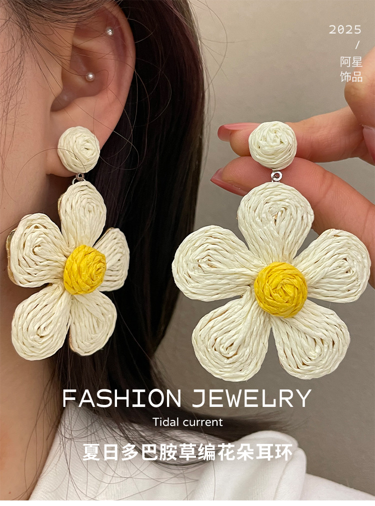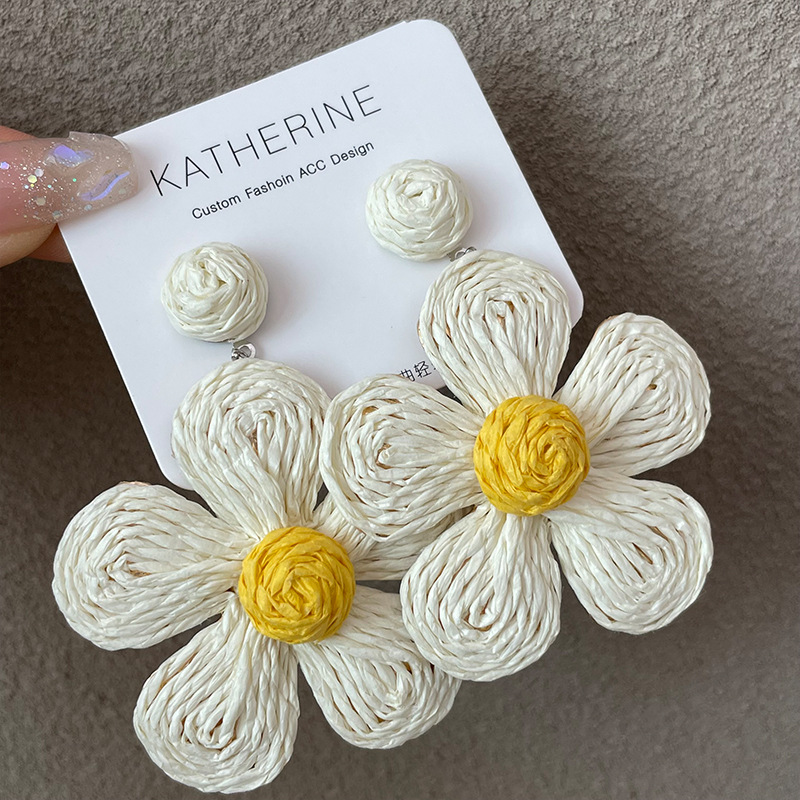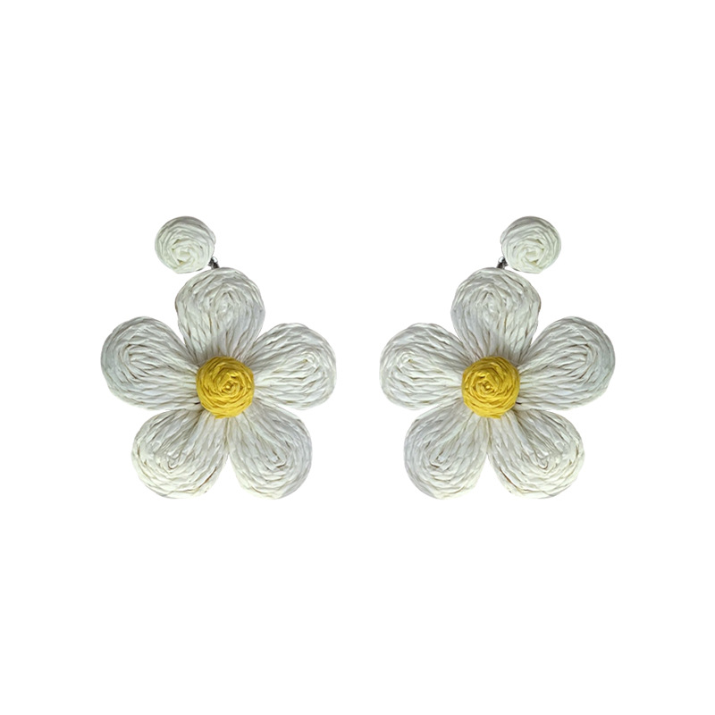 3005 summer dopamine straw white flower earrings